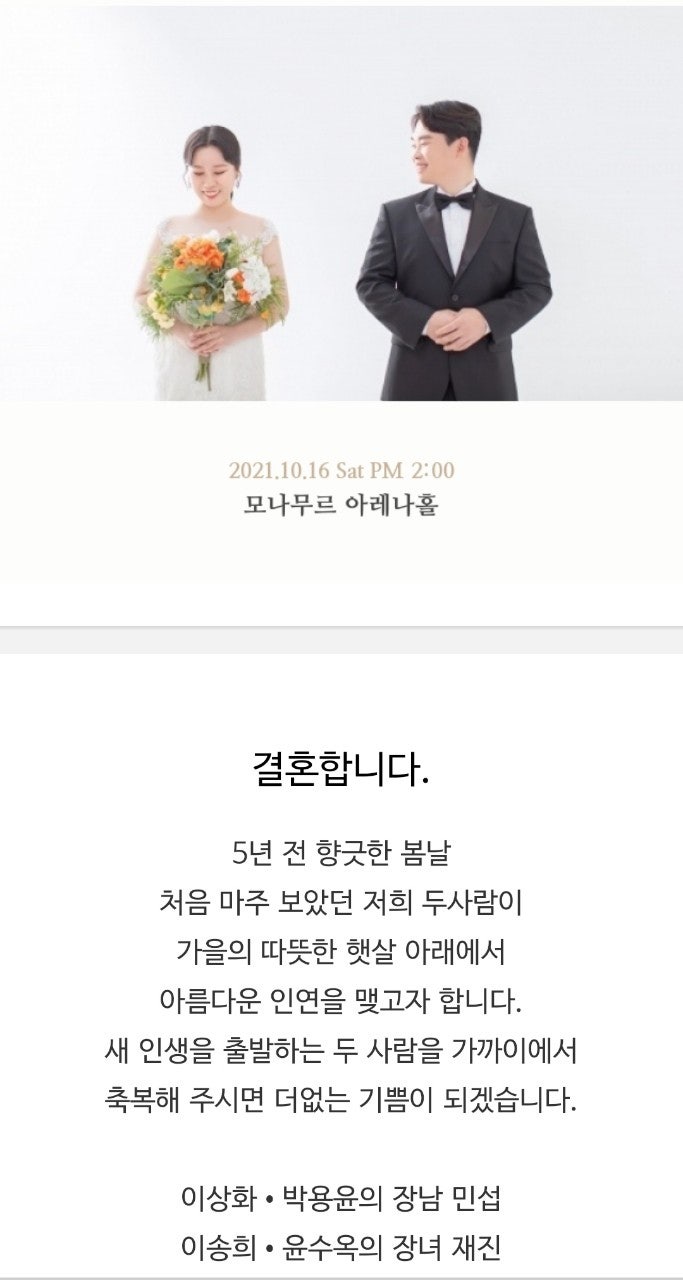 제목박용윤 사무국장님 자녀(아들)결혼 소식●2021-10-11 13:28