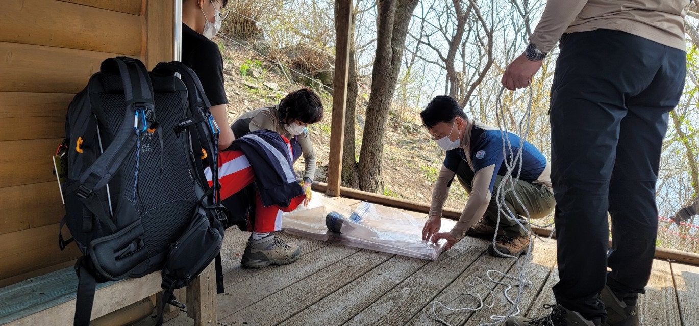 정상에서 점심 식사후 다시 석류봉, 초소, 강당마을팀으로 오후시간도 근무를 잘 마쳤습니다...