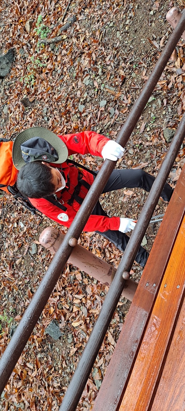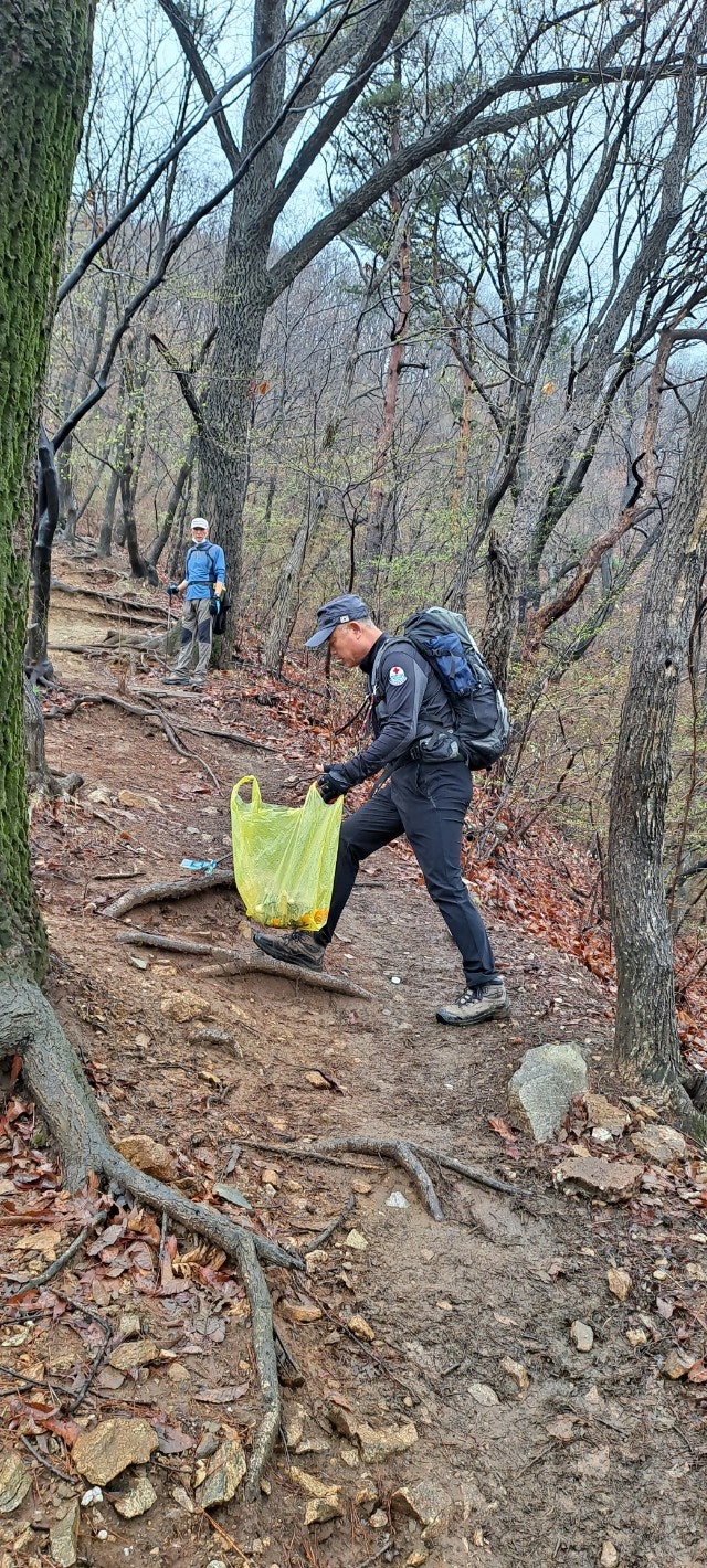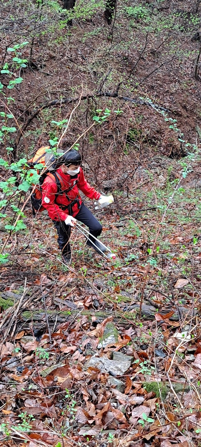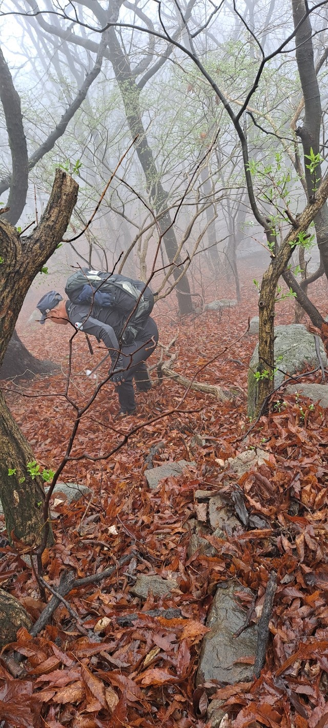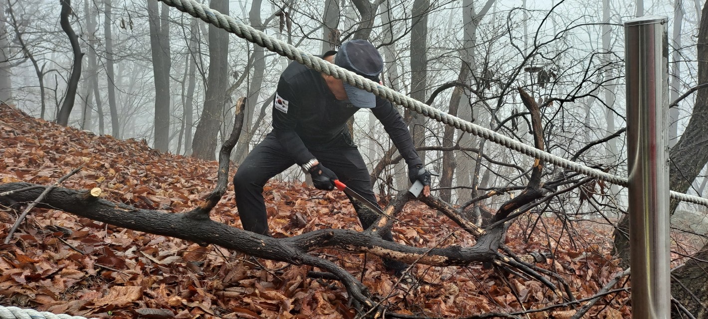 발에 걸릴것 같은 나무뿌리도 제거하면서