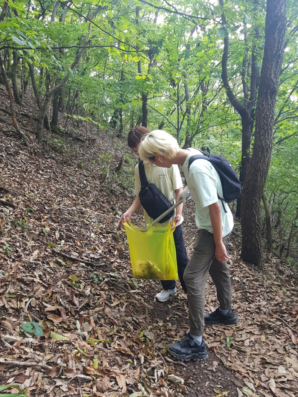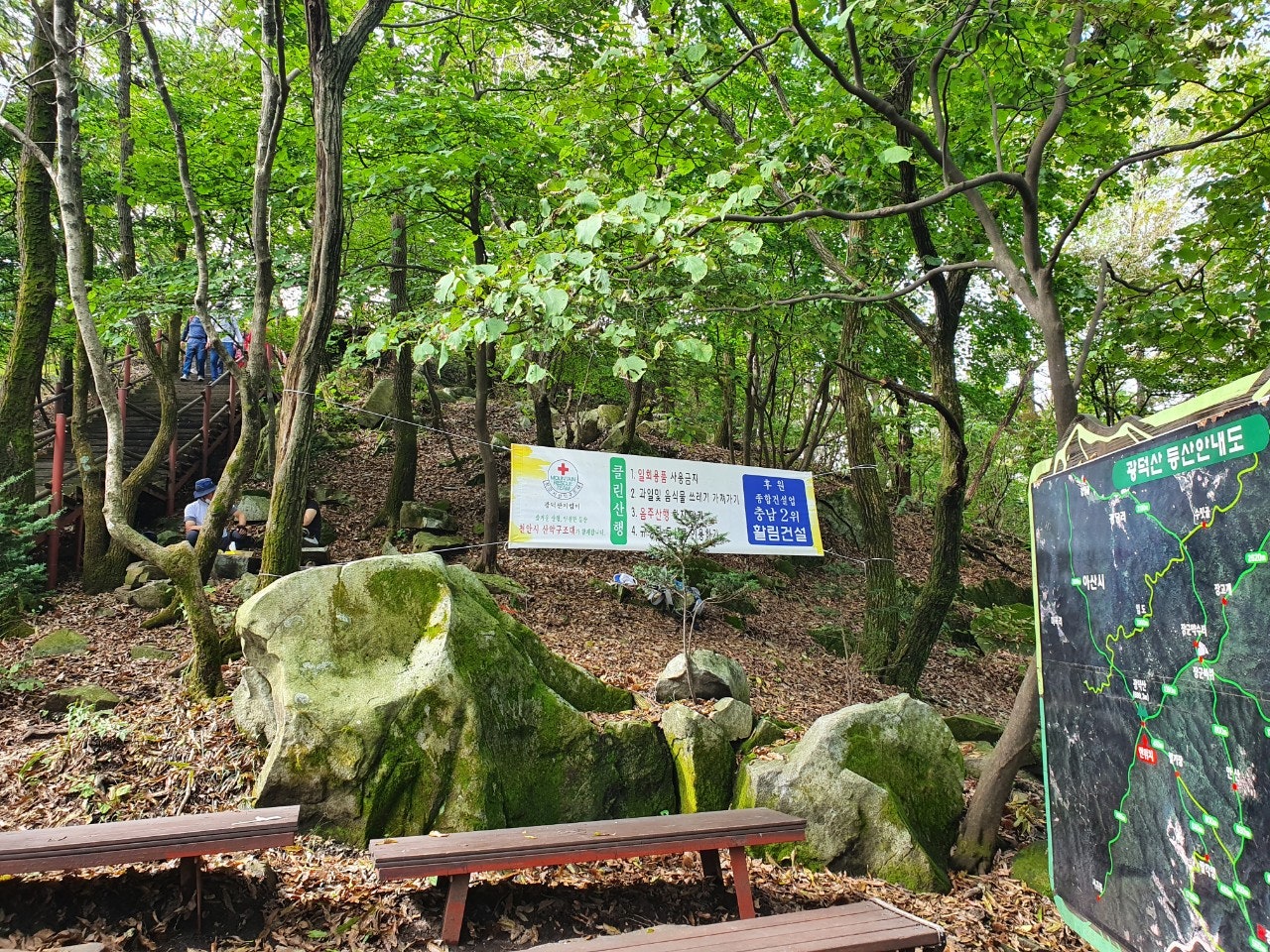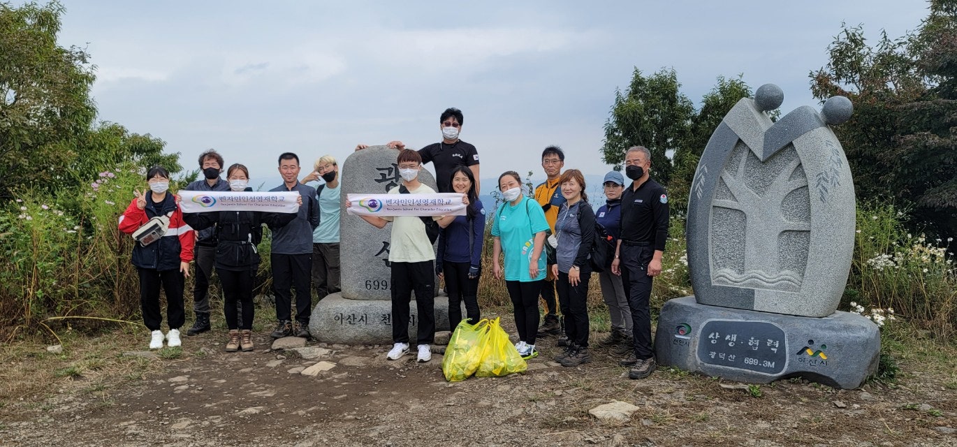 광덕산 오르는 길에 학생들과 코스모스 씨를 따서 정상석 뒤에 뿌렸습니다...