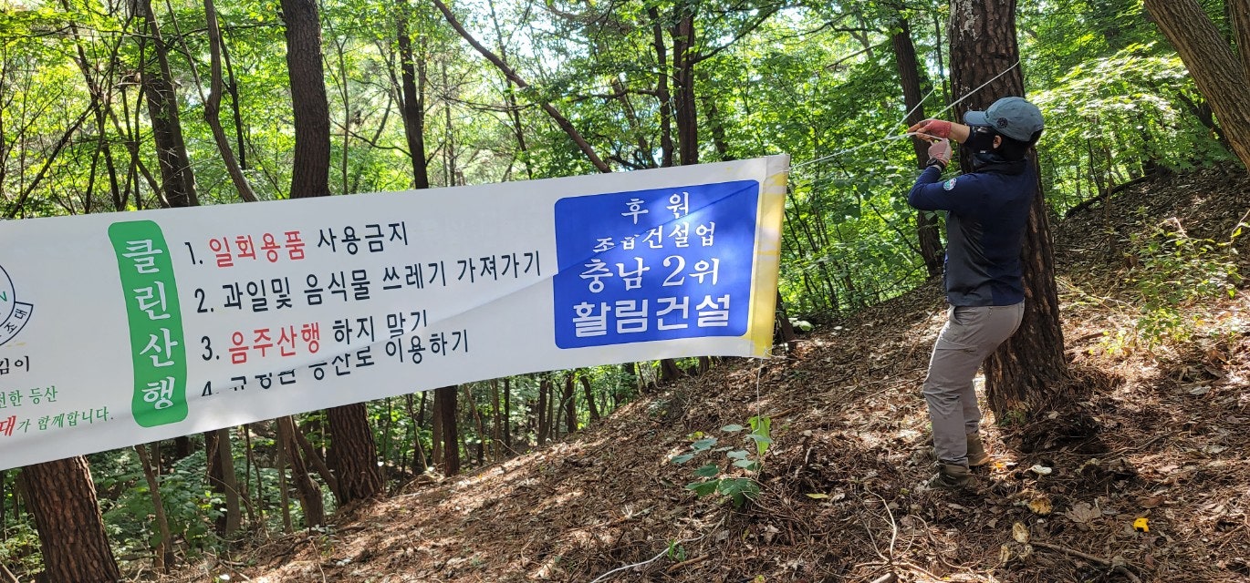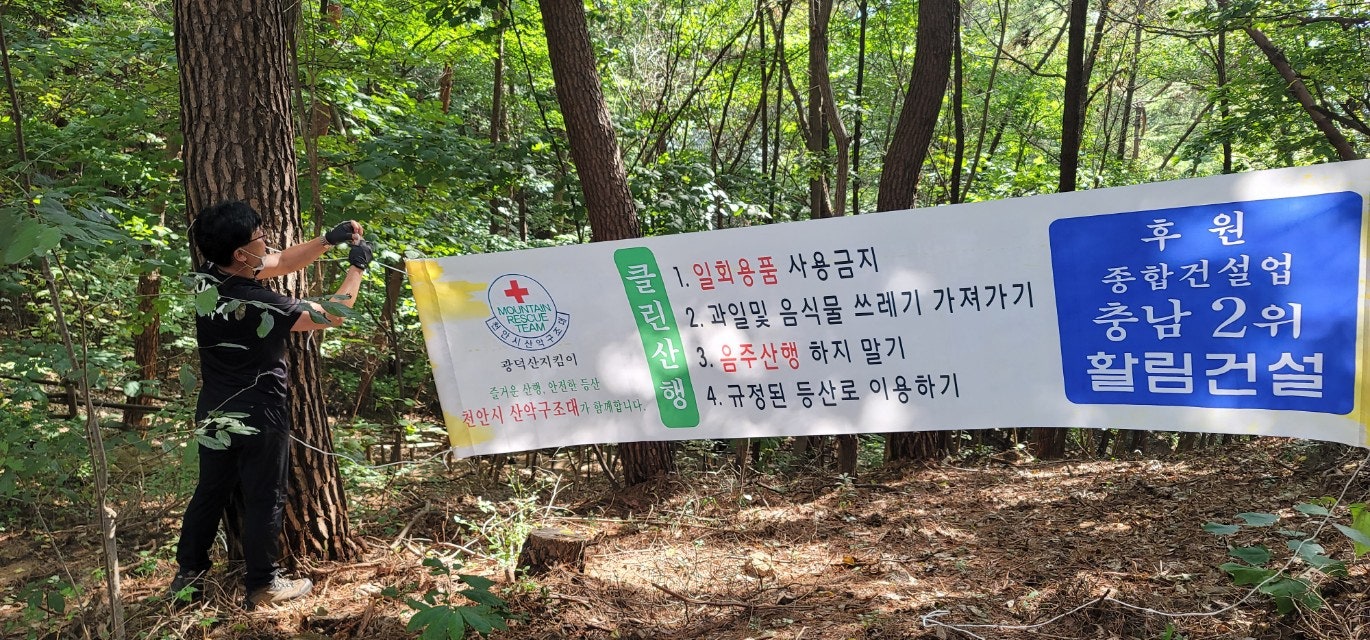 2개조로 나뉘어 장군바위와 팔각정으로 오르면서 구조대에 후원해주신 활림건설 플랭카드를 팔각정 장군바위 정상 3군데에 설치했으며 정상 주위 잡초제거와 죽은 고목제거도 많이 하였습니다....