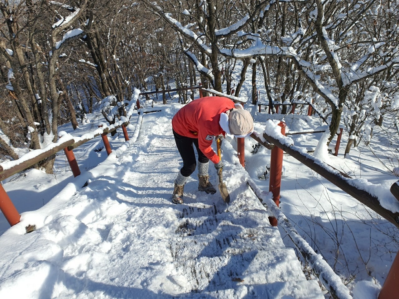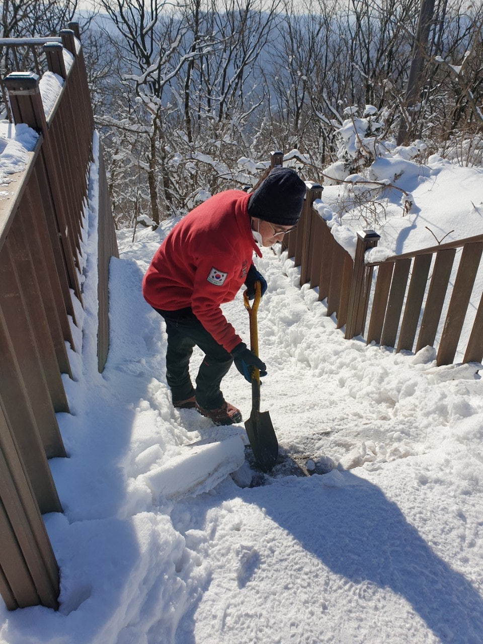 ☃️ 함박눈이 펑펑, 대설주의보와 한파주의보가 내려진 일요일. 생각보다 등산객들이 많지는 않았습니다. 쓰레기도 거의 없어 무탈히 활동을 마무리 할 수 있었습니다. 정상초소에 휴지, 물티슈, 종이컵이 없어 사무실 책상에 구비하여 두었습니다. 다음주에 꼭 챙겨서 가주시면 감사하겠습니다^^