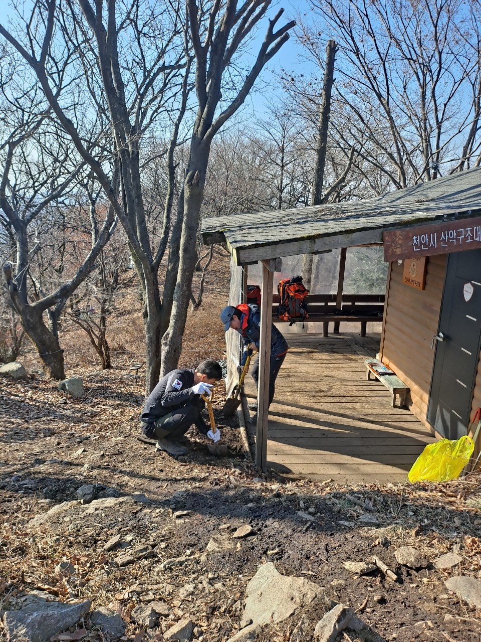 활동상황 제목◾️2022.12.11. 근무일지2022-12-19 05:48작성자kskang◾️2022.12.11. 근무일지▫️근무자 : 임효진.박용윤대원▫️근무지원: 전난희 팀장▫️날씨 : 맑음▫️활동상황- 09:00 119대응팀 연계 후 출발- 등산로 주변 등 정화활동, 정상초소 상황대기-광덕쉼터-정상길-정상-장군바위- 박씨샘으로 하산= 많은 분들이 광덕산을 찾은 날 무탈하게 활동을 마쳤습니다. 함께 한 대원님들 고맙습니다.고생많으셨습니다! 목록 댓글 [0] 더보기이전12월 4일 일요일 근무일지kskang2022-12-19다음■ 2022. 12. 18. 근무일지kskang2022-12-19 Powered by MangBoard