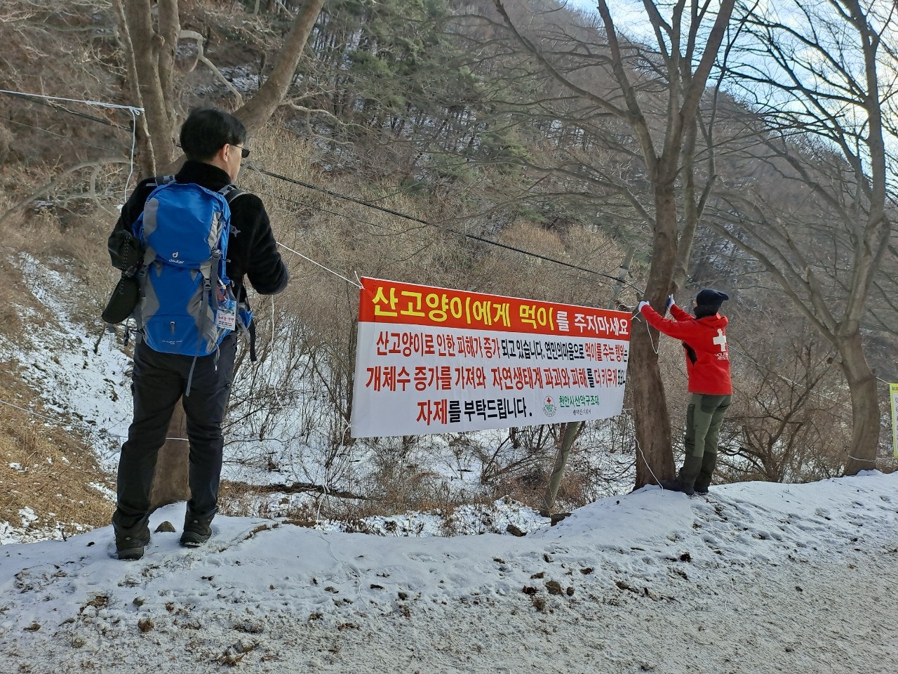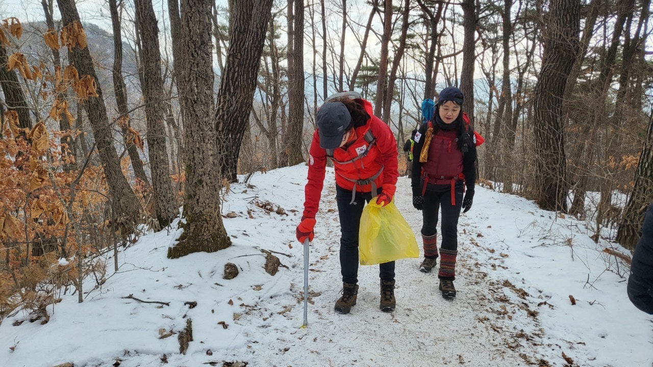 얼어 있는곳이 몇군데 있어 아이젠 신고