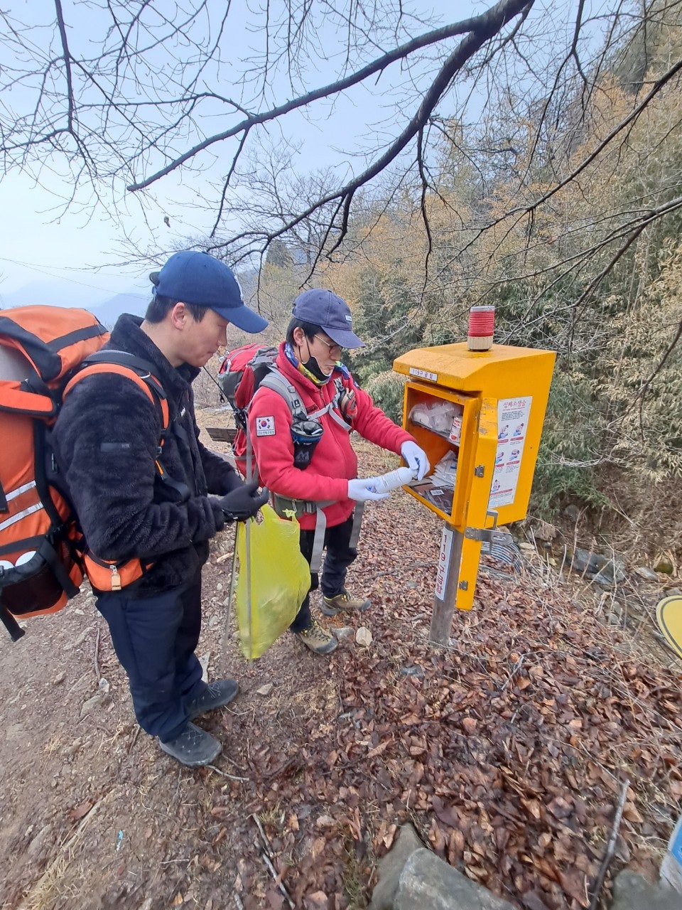 장군바위길로 오르는데 기온이 내려가서인지? 춥네요~~