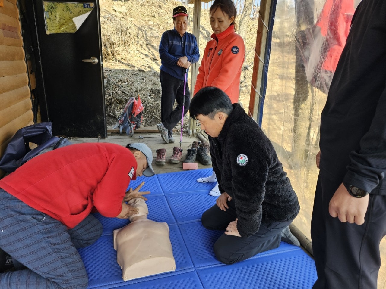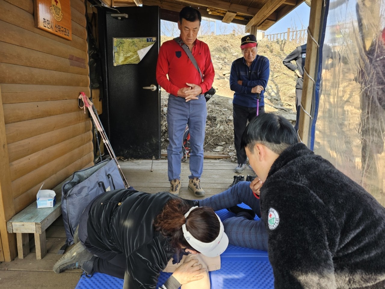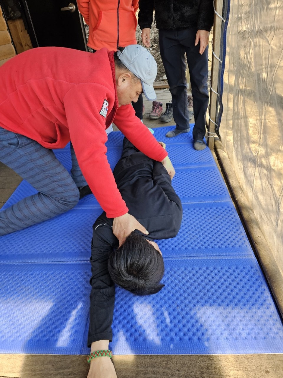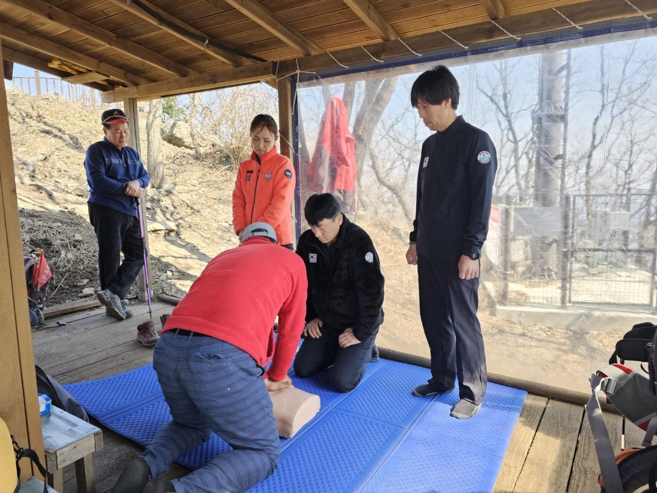 활동상황 제목# 2023.03.19(일) 근무일지2023-03-20 09:48작성자kskang# 2023.03.19(일) 근무일지■ 집결지 : 구조대 사무실, 광덕산■ 근무자 : 최성이 고문님이창덕 사무국장님박상숙 대원님(오래된 신입^^)고상배 대원님(최신 신입^^)진홍석 대원(저도 신입^^)■ 날씨 : 아주맑음■ 활동상황- 사무실 집결 후 119대응팀 보고- 광덕산 환경정화 활동오늘도 사무실앞에서 찰칵!오늘은 바로 광덕산 정상으로 향했습니다.신입이 3명(?)이어서 한방향으로 오르면서 정화활동에 집중했습니다.486계단 옆입니다.쓰레기가 많이 줄어들었음을 느낍니다.어느새 정자에 올랐습니다.정자 맞은편에서 쉬고 있으십니다.오랜만에 고문님과 산행중입니다.2월 구조대 활동중에 파손된 계단이 있었습니다. 오늘, 올라갈때 확인해보니,천안시에서 보수를 했습니다이렇게 보수했습니다.정상에 올라 점심먹기전에 고문님이 신입 3명에게 선물을 주셨습니다.짠!고문님 정말 감사합니다.한땀한땀 정성스럽게 만드셨습니다.점심을 먹은후 심폐소생술 교육이 있었습니다.저는 박용운 감사님, 최성이 고문님에게 1번씩 2번을 받았는데 다시 한번 하려니 머릿속이 하얘졌습니다.사람이 쓰러졌을때 바로 눕히는 방법에 대해 다시 한번 배웠습니다.경추를 꽉 잡아줘야합니다.다시 한번 고문님이 시범을 보여주셨습니다.신입 3명이 돌아가면서 교육을 받았습니다.다음은 심폐소생술!실전교육입니다여러상황에 맞춰 맞춤식 교육을 하고 저희가 궁금한 점에 대해 답변도 해주셨습니다.자세하게 한번 더 배웠습니다.재세동기도 각자 돌아가면서 배웠습니다.사람을 살리는 4분! 꼭 기억하겠습니다.한참 저희들 상대로 교육중에 광덕산에 오른 등산객부부께서 관심을 보이고 심폐소생술 궁금하다고해서 실습을 통해 알려드렸습니다제대로 실습중이십니다.실습 및 교육을하다보니 시간이 어느새 4시가 넘었습니다. 정리후 정상에 모여 다같이 사진을 찍었습니다.올라올땐 더운 여름이었는데 내려갈때는 바람도 차갑고 그랬습니다.<추가>정상 초소 태극기가 낡아 새것으로 교체하였습니다. 사무국장님과 고문님이 힘써주셨습니다.3월 3주차 산악구조대 근무 모두 고생많으셨습니다! 목록 댓글 [0] 더보기이전천안시안전총괄주체 안전점검의 날 캠페인kskang2023-03-20다음2월 5일 일요일 근무일지kskang2023-02-21 Powered by MangBoard