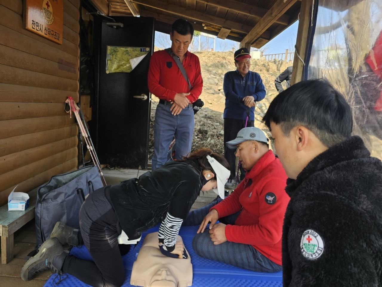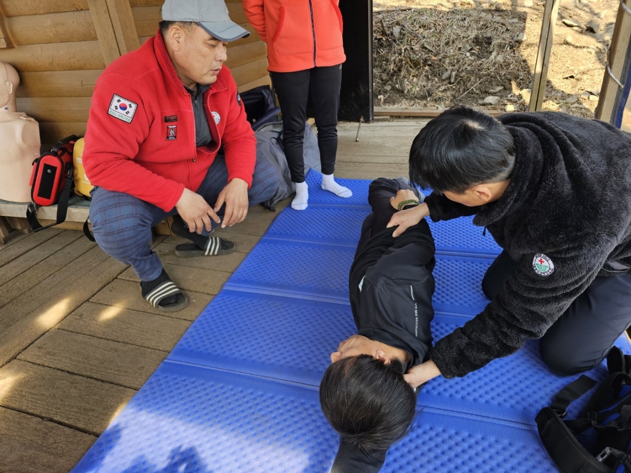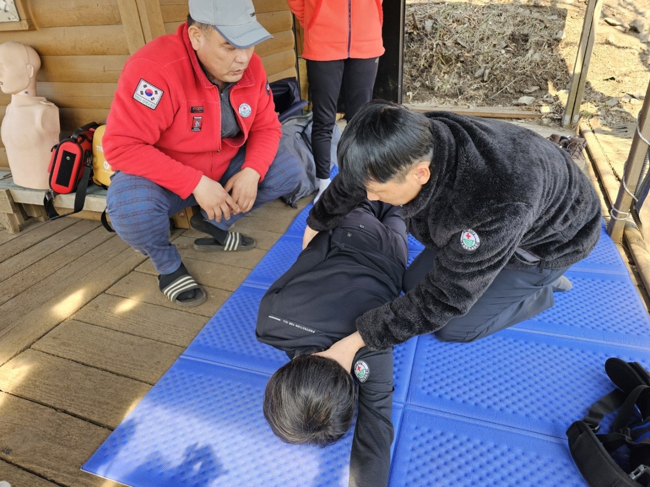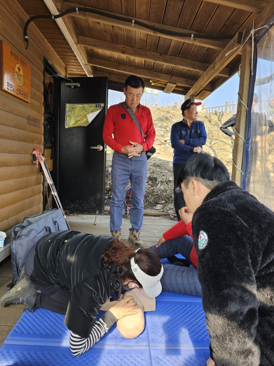 활동상황 제목# 2023.03.19(일) 근무일지2023-03-20 09:48작성자kskang# 2023.03.19(일) 근무일지■ 집결지 : 구조대 사무실, 광덕산■ 근무자 : 최성이 고문님이창덕 사무국장님박상숙 대원님(오래된 신입^^)고상배 대원님(최신 신입^^)진홍석 대원(저도 신입^^)■ 날씨 : 아주맑음■ 활동상황- 사무실 집결 후 119대응팀 보고- 광덕산 환경정화 활동오늘도 사무실앞에서 찰칵!오늘은 바로 광덕산 정상으로 향했습니다.신입이 3명(?)이어서 한방향으로 오르면서 정화활동에 집중했습니다.486계단 옆입니다.쓰레기가 많이 줄어들었음을 느낍니다.어느새 정자에 올랐습니다.정자 맞은편에서 쉬고 있으십니다.오랜만에 고문님과 산행중입니다.2월 구조대 활동중에 파손된 계단이 있었습니다. 오늘, 올라갈때 확인해보니,천안시에서 보수를 했습니다이렇게 보수했습니다.정상에 올라 점심먹기전에 고문님이 신입 3명에게 선물을 주셨습니다.짠!고문님 정말 감사합니다.한땀한땀 정성스럽게 만드셨습니다.점심을 먹은후 심폐소생술 교육이 있었습니다.저는 박용운 감사님, 최성이 고문님에게 1번씩 2번을 받았는데 다시 한번 하려니 머릿속이 하얘졌습니다.사람이 쓰러졌을때 바로 눕히는 방법에 대해 다시 한번 배웠습니다.경추를 꽉 잡아줘야합니다.다시 한번 고문님이 시범을 보여주셨습니다.신입 3명이 돌아가면서 교육을 받았습니다.다음은 심폐소생술!실전교육입니다여러상황에 맞춰 맞춤식 교육을 하고 저희가 궁금한 점에 대해 답변도 해주셨습니다.자세하게 한번 더 배웠습니다.재세동기도 각자 돌아가면서 배웠습니다.사람을 살리는 4분! 꼭 기억하겠습니다.한참 저희들 상대로 교육중에 광덕산에 오른 등산객부부께서 관심을 보이고 심폐소생술 궁금하다고해서 실습을 통해 알려드렸습니다제대로 실습중이십니다.실습 및 교육을하다보니 시간이 어느새 4시가 넘었습니다. 정리후 정상에 모여 다같이 사진을 찍었습니다.올라올땐 더운 여름이었는데 내려갈때는 바람도 차갑고 그랬습니다.<추가>정상 초소 태극기가 낡아 새것으로 교체하였습니다. 사무국장님과 고문님이 힘써주셨습니다.3월 3주차 산악구조대 근무 모두 고생많으셨습니다! 목록 댓글 [0] 더보기이전천안시안전총괄주체 안전점검의 날 캠페인kskang2023-03-20다음2월 5일 일요일 근무일지kskang2023-02-21 Powered by MangBoard