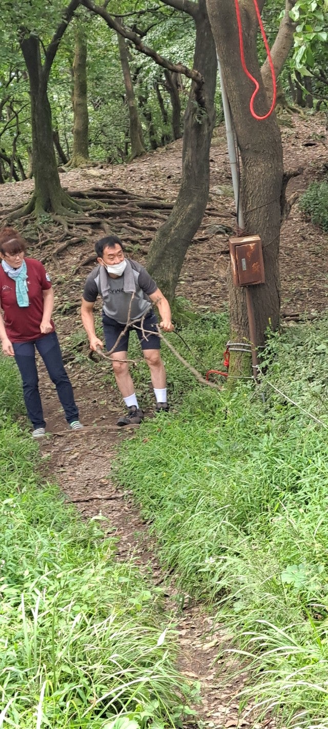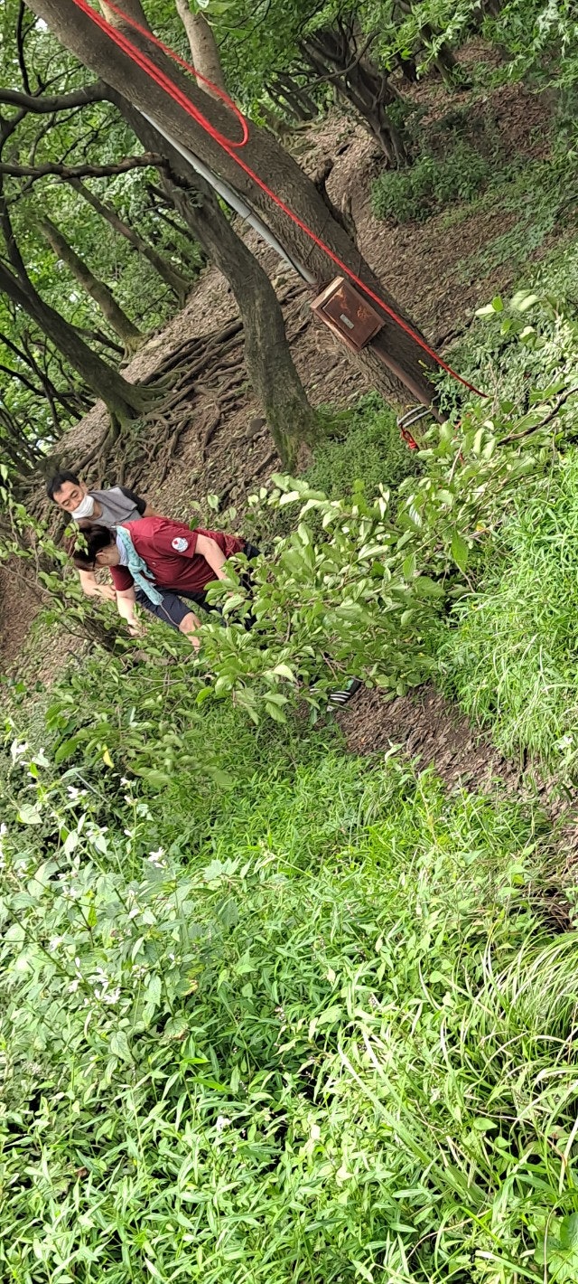 초소앞쪽 석류봉 방향으로 나무 꺽여진것