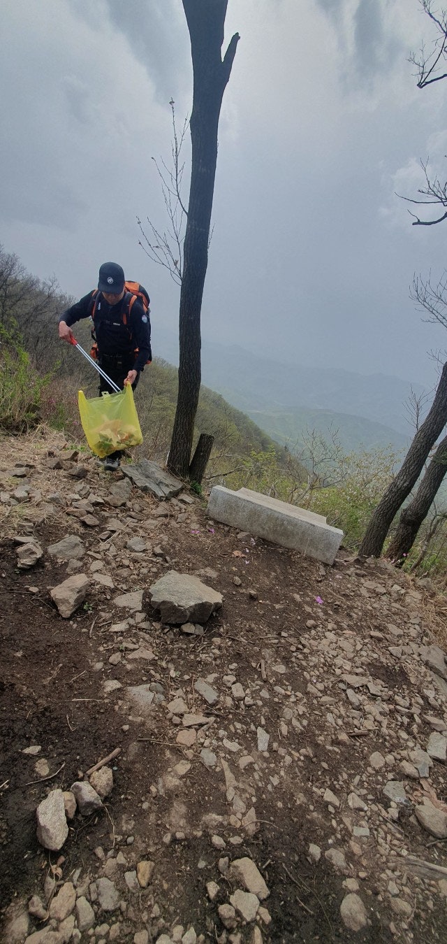 - 정상인증후 하산(장군바위 방향)하며 정화작업