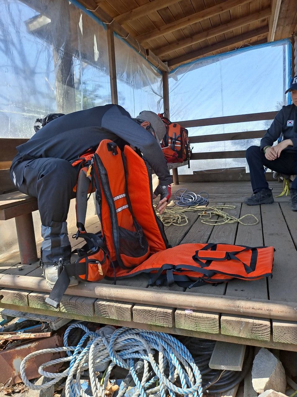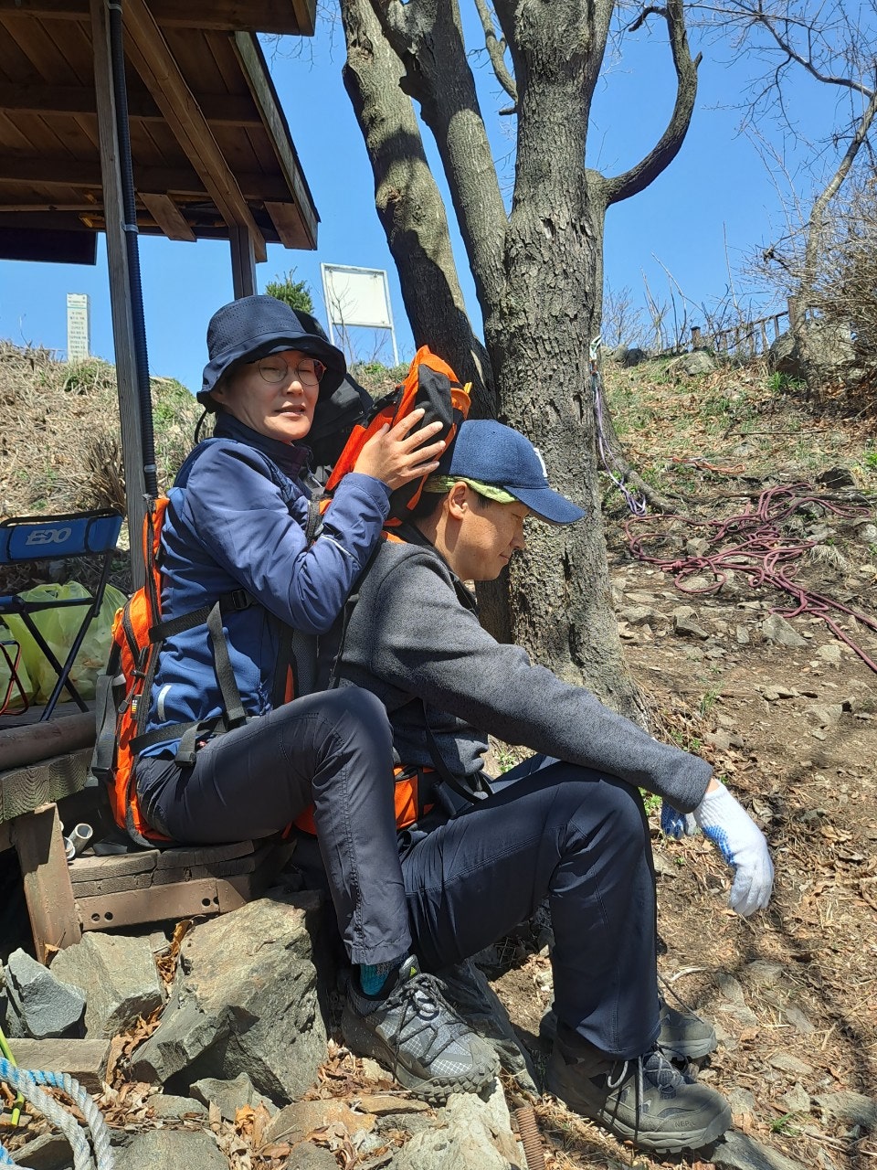...........베낭에 업는 방법 로프활용