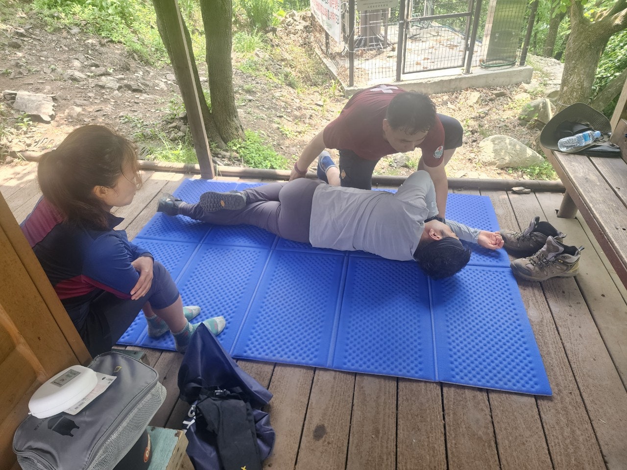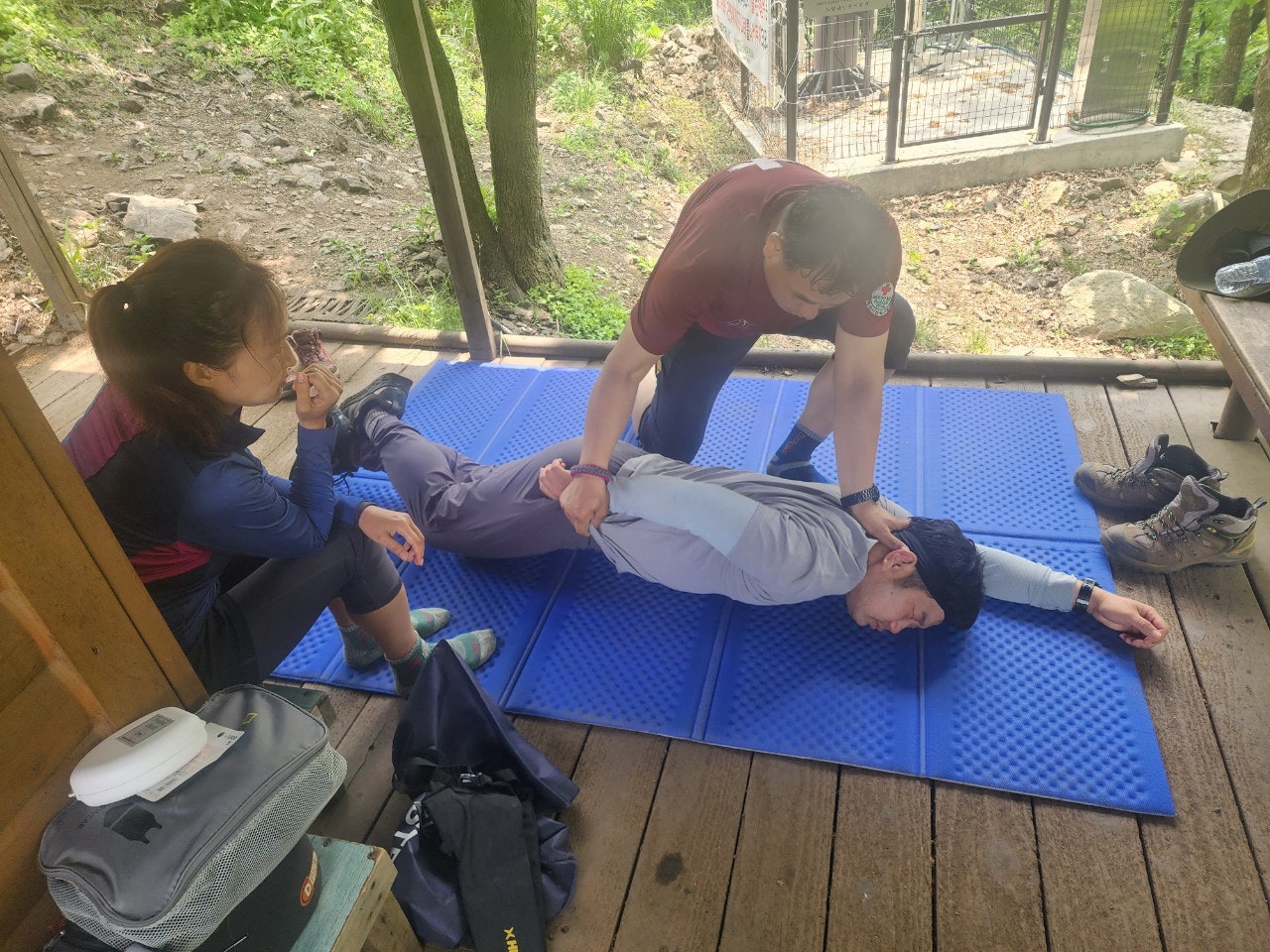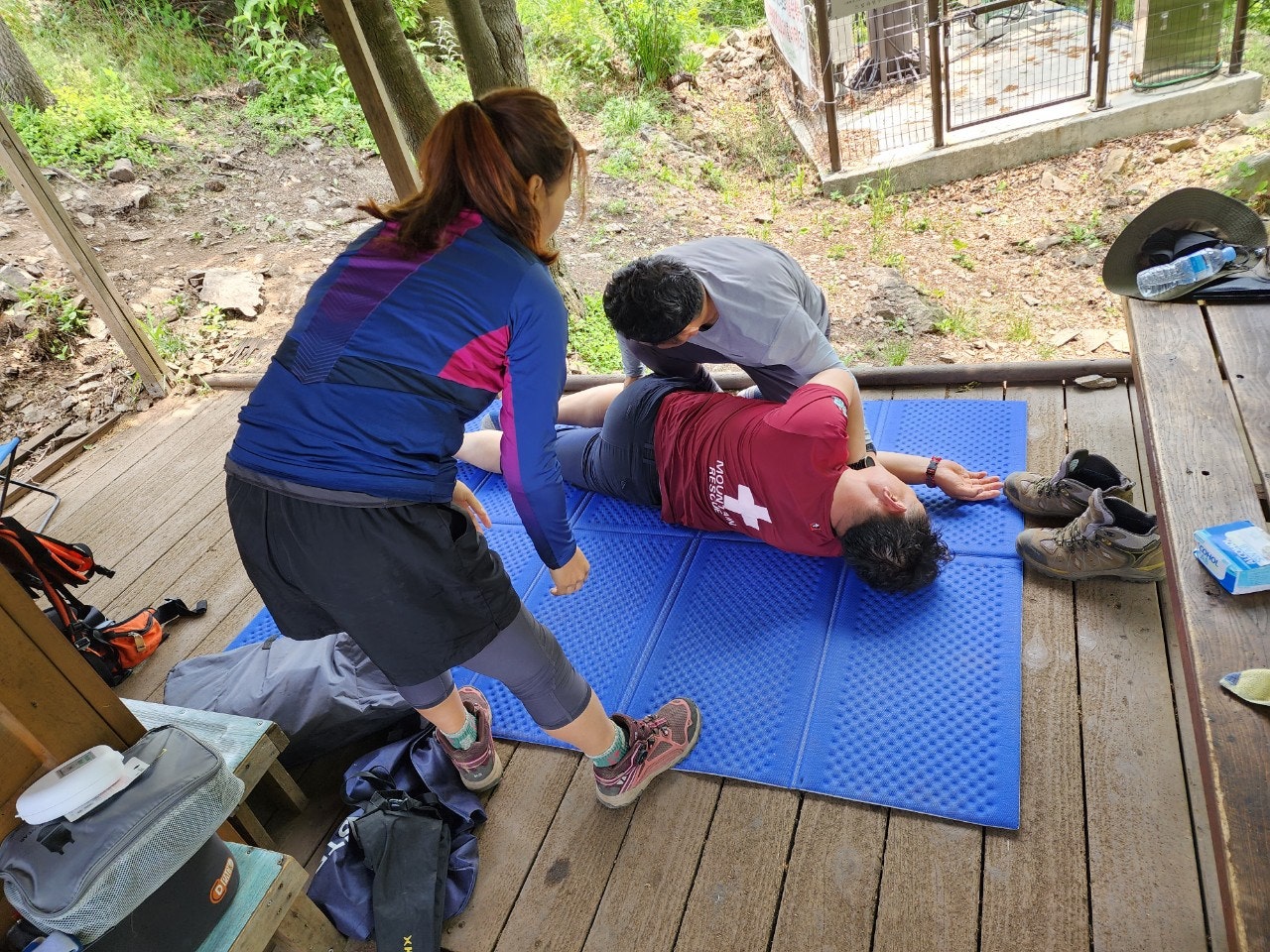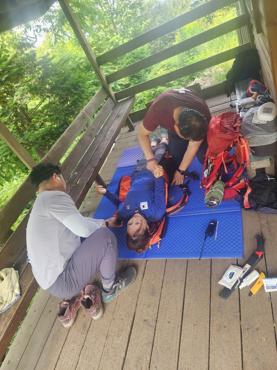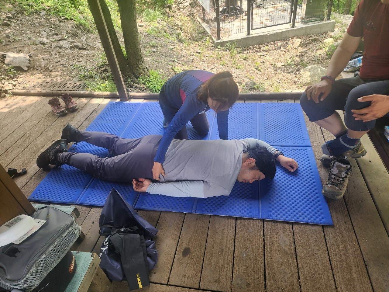 신입대원을 위해서 최성이 고문님께서 열정적으로 응급처치 및 매듭법 등을 알려주셨습니다