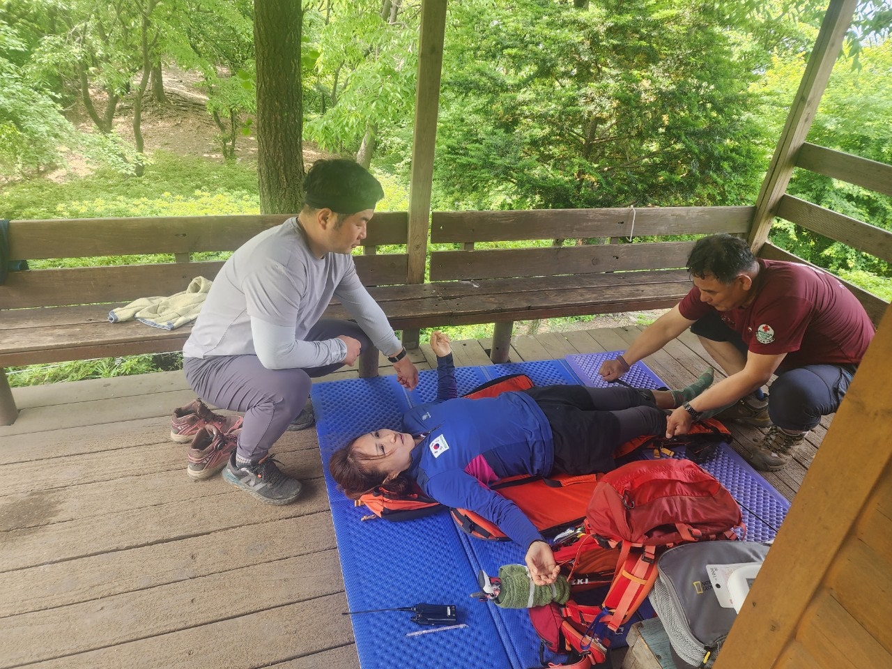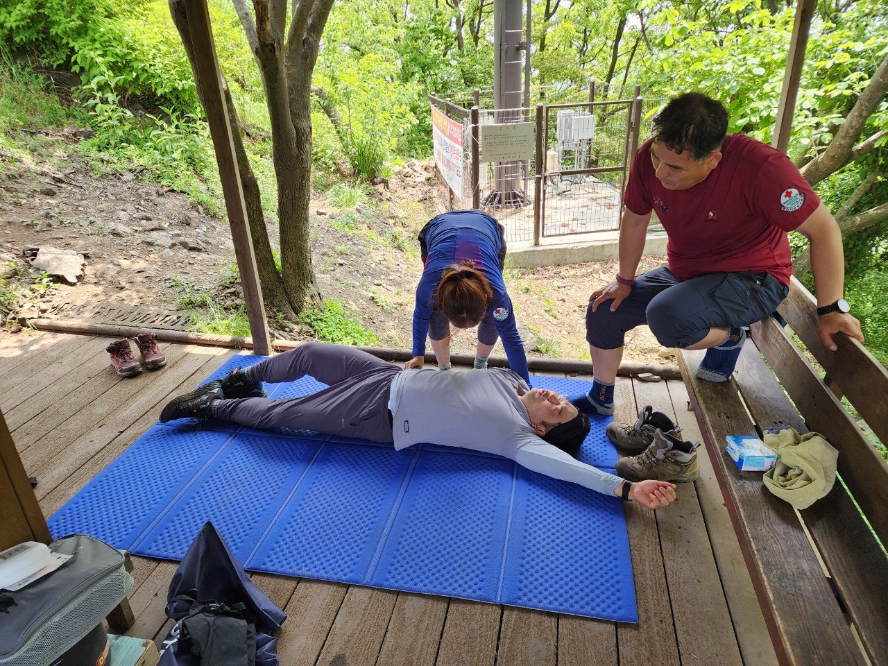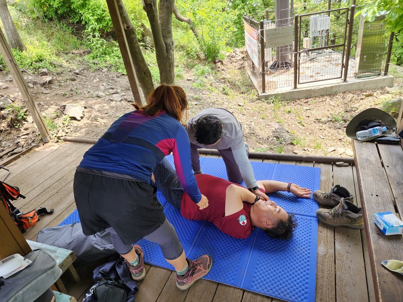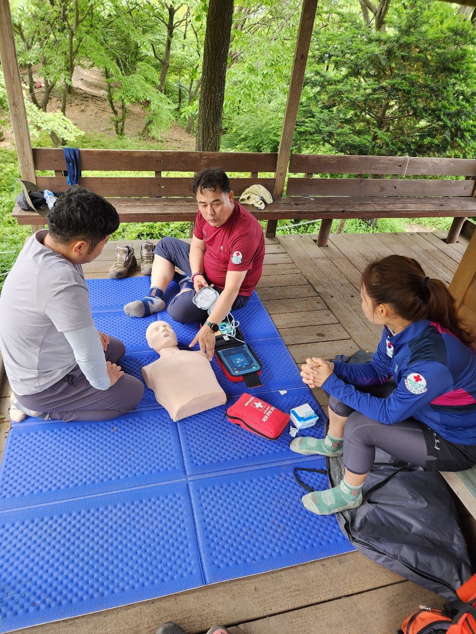 신입대원을 위해서 최성이 고문님께서 열정적으로 응급처치 및 매듭법 등을 알려주셨습니다