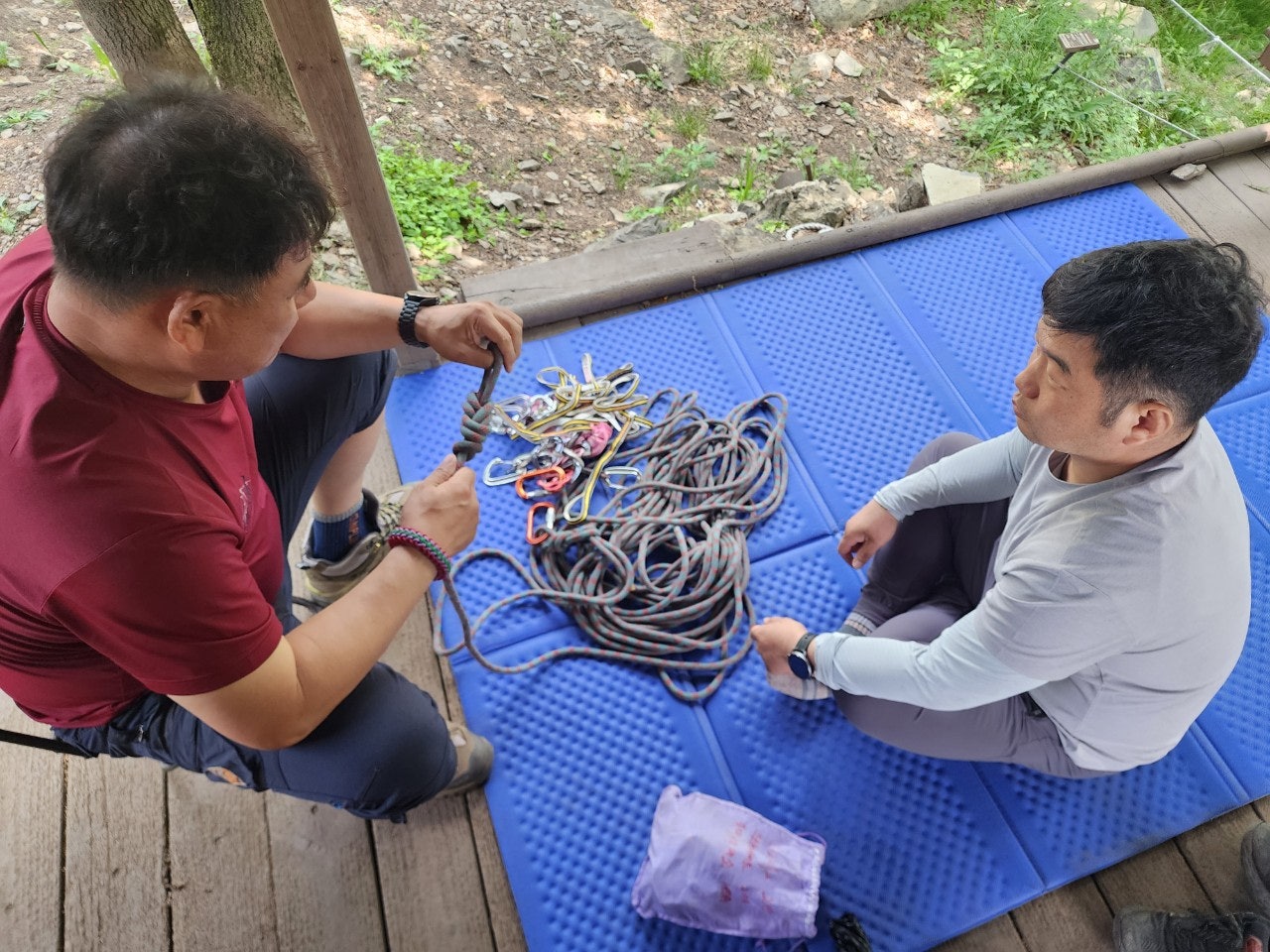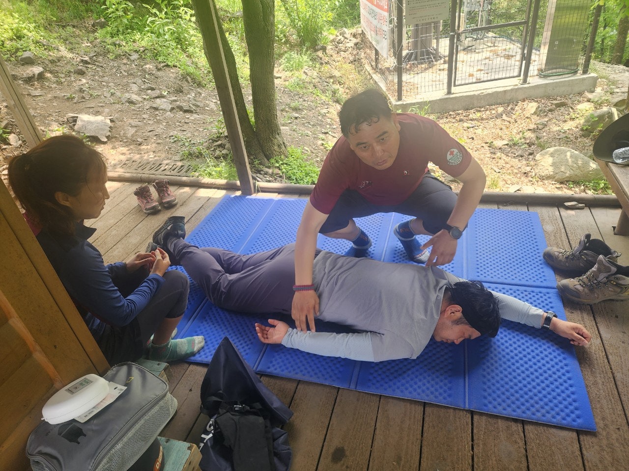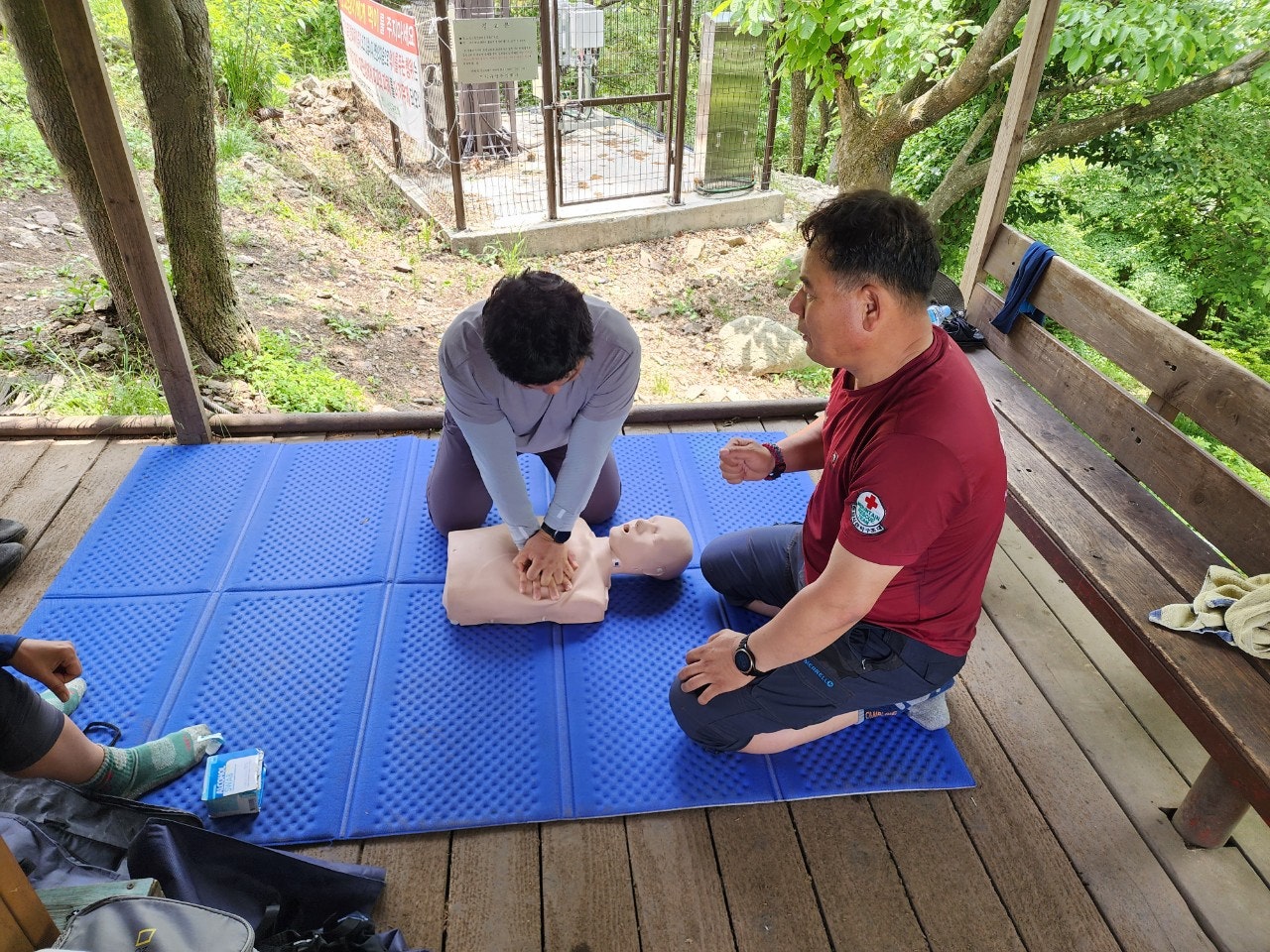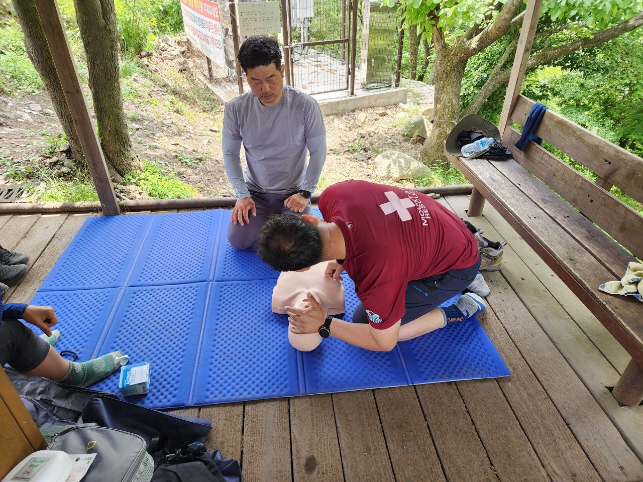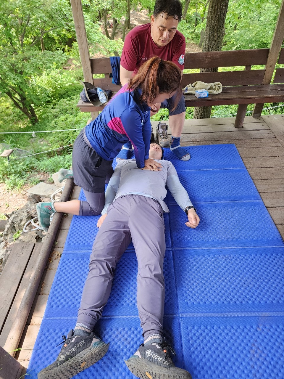 신입대원을 위해서 최성이 고문님께서 열정적으로 응급처치 및 매듭법 등을 알려주셨습니다