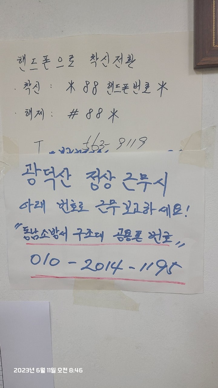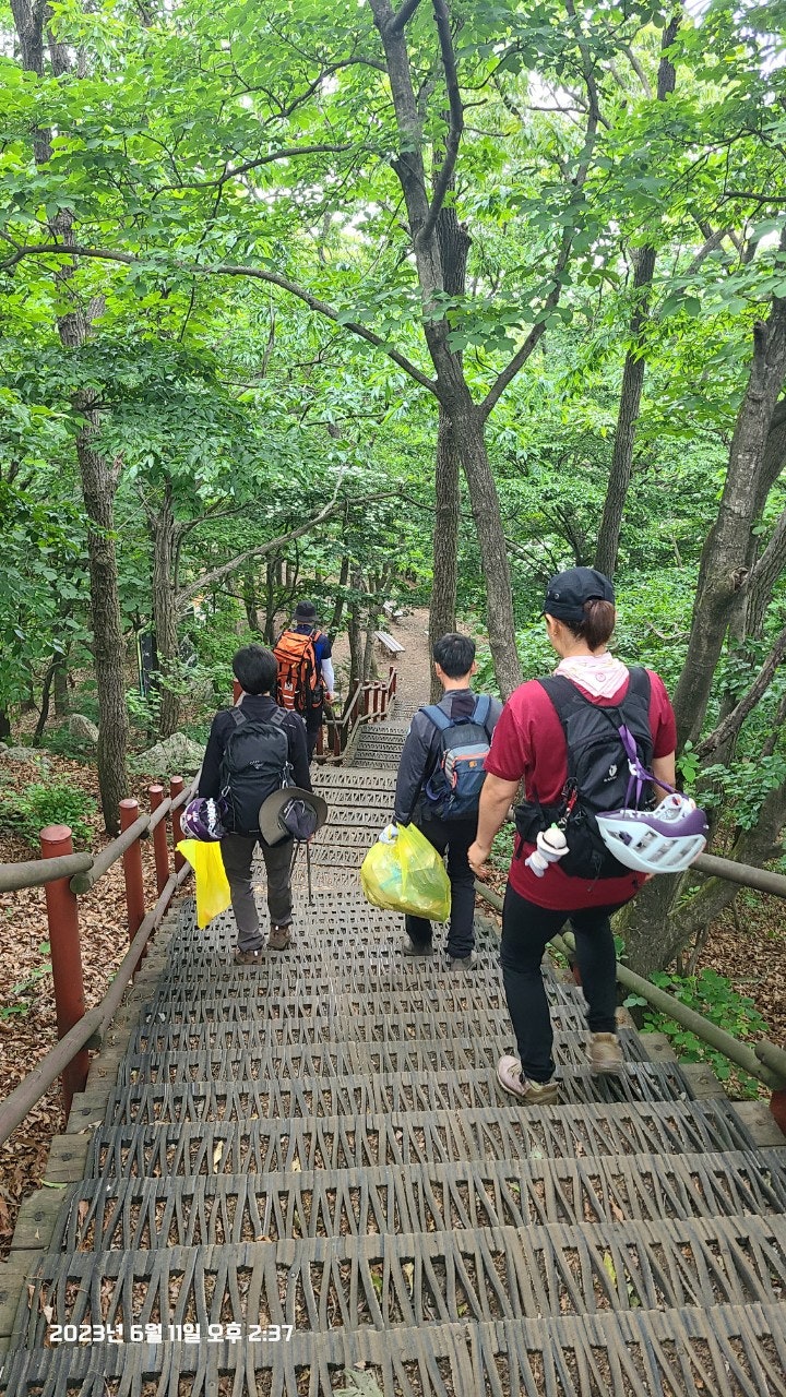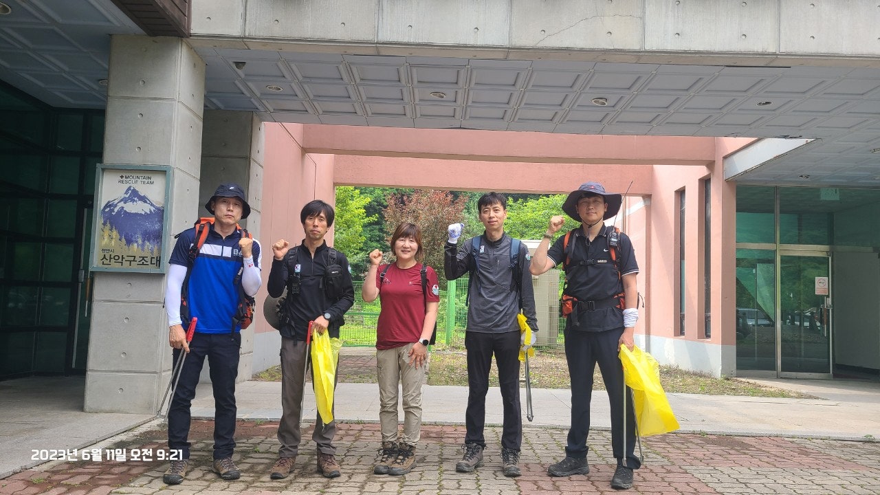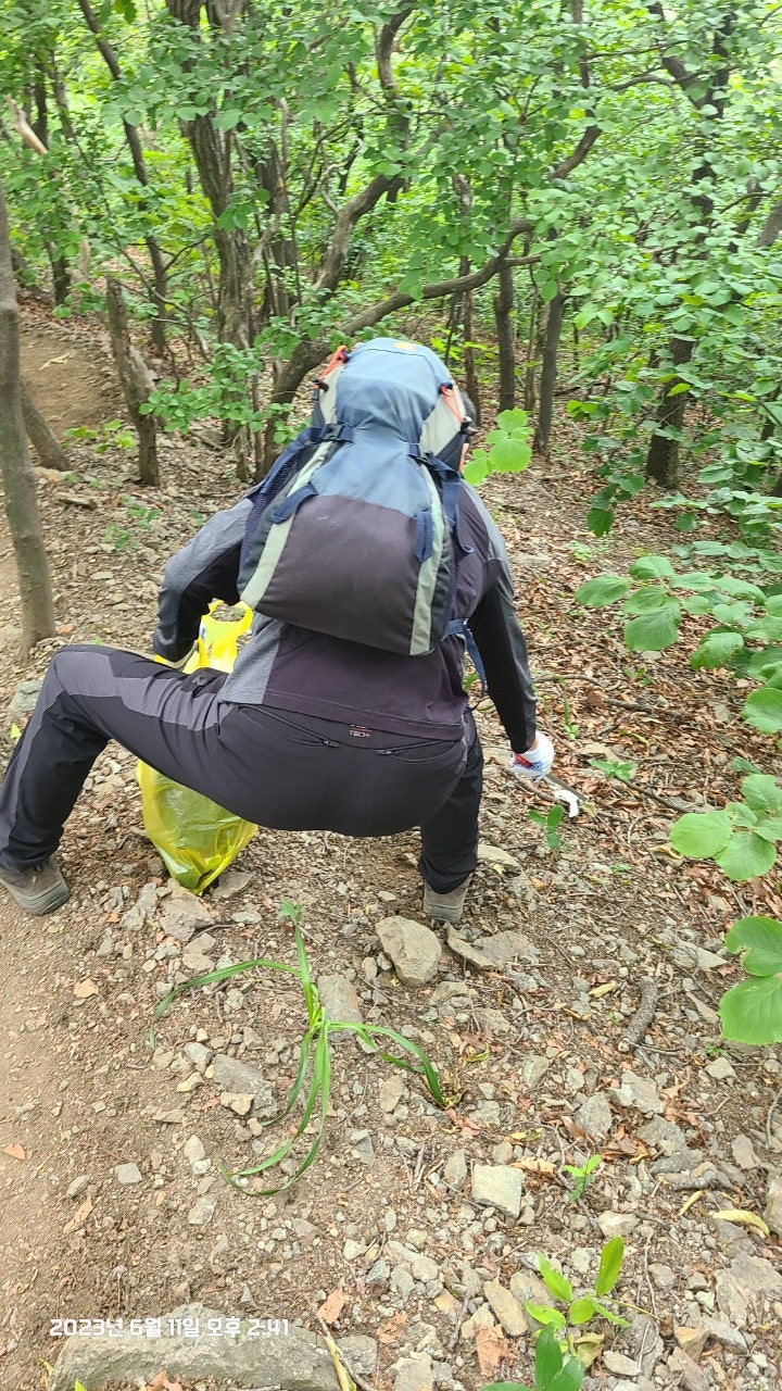 활동상황 제목2023년 6월 11일 근무일지-2023-06-26 10:01작성자kskang-2023년 6월 11일 근무일지-날씨 : 맑음(잠깐 소나기)근무자 : 임효진, 고상배, 진홍석, 허기영(신입) 대원님 , 이재희 재무님 총 5명.정상에 올랐다 근무로인해 12시에 내려가신 전난희 팀장님도 참여해주셨습니다.근무시간 : 09시 ~ 16시출발하기전에 구조대사무실에서 단체사진 찍고 출발합니다. 팔각정 가기전 계단 우측으로 빠져 정화활동에 힘쓰신 임효진 대원님!팔각정가기전 좌측으로 빠져 열심히 정화활동 하신 신입 허기영 대원님!더욱 더 깨끗한 광덕산이 되길 바라며...두분, 정말 열심히 정화활동 했습니다.오후에 소나기 온다는 예보가 있어 약간 걱정했지만, 한두차례 짧게 오고 맑고 더운 날씨였습니다.그래서인지 평소보다 등산객이 적었습니다.정상 초소 대기후 장군바위쪽으로 내려가면서 정화활동에 매진했습니다.다같이 장군바위쪽으로 갑니다.허기영 신입대원님 깊숙히 들어가서 쓰레기 처리합니다.아름다운 뒤태(?)임효진 대원님이십니다.장군바위쪽 계단 한곳이 나무가 썩어서 위험합니다. 보수작업이 필요할것 같습니다.누가 쓰레기를 왕창 버렸나봅니다.많은 쓰레기를 수거했습니다.장군바위쪽으로 하산하였고 특이사항 없었습니다.첫 근무에 참여하신 허기영 대원님 수고 많으셨습니다.또한 오늘 더운 날씨에 근무하신 대원님들 고생많으셨습니다. 사무실 복귀후 이재희 재무님! 시원한 아이스크림 잘 먹었습니다점점 광덕산이 쾌적해지고 있는것 같습니다.뿌듯합니다^^또한 근무시 동남소방서 구조대 연락시 대원님들중 한분 핸드폰번호를 구조대 사무실 전화번호를 착신한후 소방서에 구조대 사무실 전화번호를 알려주시기 바랍니다.(최성이 고문님의 당부 말씀이셨습니다) 목록 댓글 [0] 더보기이전2023.06.18.(일) 근무일지kskang2023-06-26다음*2023년 6월 4일 근무일지kskang2023-06-26 Powered by MangBoard