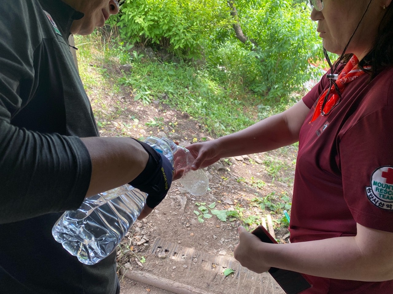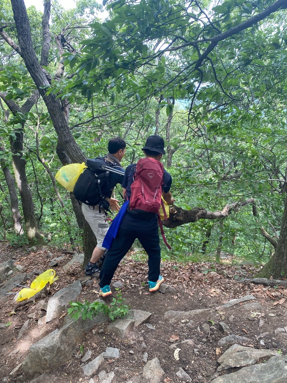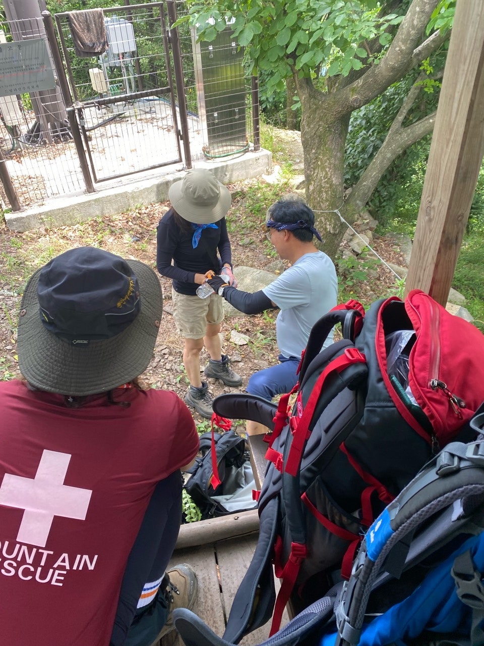 활동상황 제목- 2023년 6월 25일 근무일지 -2023-06-26 10:10작성자kskang- 2023년 6월 25일 근무일지 -날씨 : 맑음근무자 : 김영주 팀장님~이연우,방영배,이인숙,이병배,허기영,홍지연대원님 포함 총 7명근무시간 : 09시~16시까지출발전 인증~^^팀장님과 6명 대원들 ~ 이연우 대원님은 먼저 출발하심!주창장에 차가 꽉찼네요~광덕사 지나 환자 발생 콜 받고 정자까지 뛰어오름~팀장님이 환자분에게 여쭤보고 파스 뿌려드리고물도 드리고 얼름물병이용으로 분대 감아드림통증을 줄이기 위한 금 냉찜질구조대원들이 오시기전에 ~응급처치 완료구조대 5분 도착 상황보고하고 구조대는 가심한민영대원님이 바이크 가지고 오심방영배,최용현대원이 환자 이송시까지 확인함무사히 내려가시고 최용현대원님은 환자분 친구분이랑 걸어서 하산하시고방영배대원님은 정성으로 고고정상에 도착하자마자 산악 비상구급함 열어날짜확인하고주변 클린정화 작업시작조경수도 이쁘게 정리하고초소위를 가린 나무도 정리하고잘린 가지도 모아서 버리고정상에 쓰레기도 줍고초소지붕도 깨끗하게 치우고영배,인숙대원님은 나무 치우시고이연우대원의 훌륭한 낮질 ~~완벽 깨끗두분이서 가지치기 해주시고밑에서 치워주고혼자하기 힘든 작업은 둘이~점점 초소가 환해지고태극기글 가린 가지를 치고초소 주변 풀도 깨끗하게 정리하니보는이도 저희도 좋네요더운날씨에 모두가 땀흘리게 일하고시원한 빙수로 더위를 날려보고병배님이 얼려온 우유 연우님이 얼려온 후르추칵테일과빙수의 꽃 팥과연우를 잘 썪으니 ~~시원한 빙수가~~양도 많죠~근무중에 서울에서 오신 부부상우님이 물을 차에 놓고오셨다며 저희에게 요청~~물도 드리고 생수한병 드맀어요!인상좋으신 두분이 저희랑 사진도 찍어가시고저희 단체사진도 이쁘게 찍어주셨네요.자연스러운 모습도 이쁘게 담아주셨네요.화이팅!하산길에도 정화는 끝이 없네요길막는 나무도 치우고왔습니다.오늘도 수고하신 대원 여러분 고생하셨습니다.손봐야할곳~산악구조대 회원모집 광고 현수막 설치요망!바람세게 달아야함!그리고대원님들 옷이 급해요~허기영대원님 쓰러질뻔했어요~~~왜?겨울 티 입고근무~대장님~~~저희 반팔주세요~^^ 목록 댓글 [0] 더보기이전토요일 태조산 응급처치 활동kskang2023-07-23다음2023.06.18.(일) 근무일지kskang2023-06-26 Powered by MangBoard