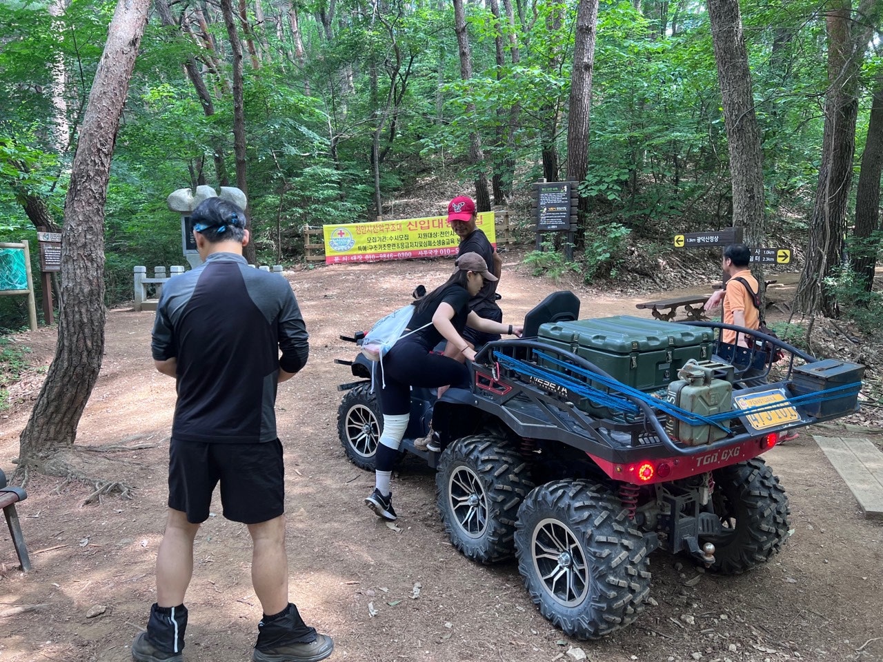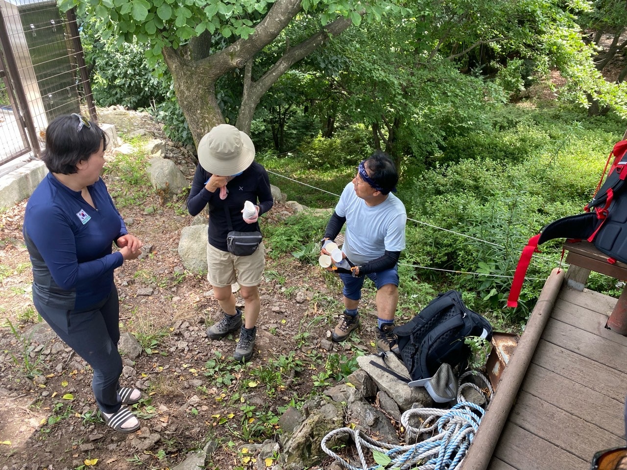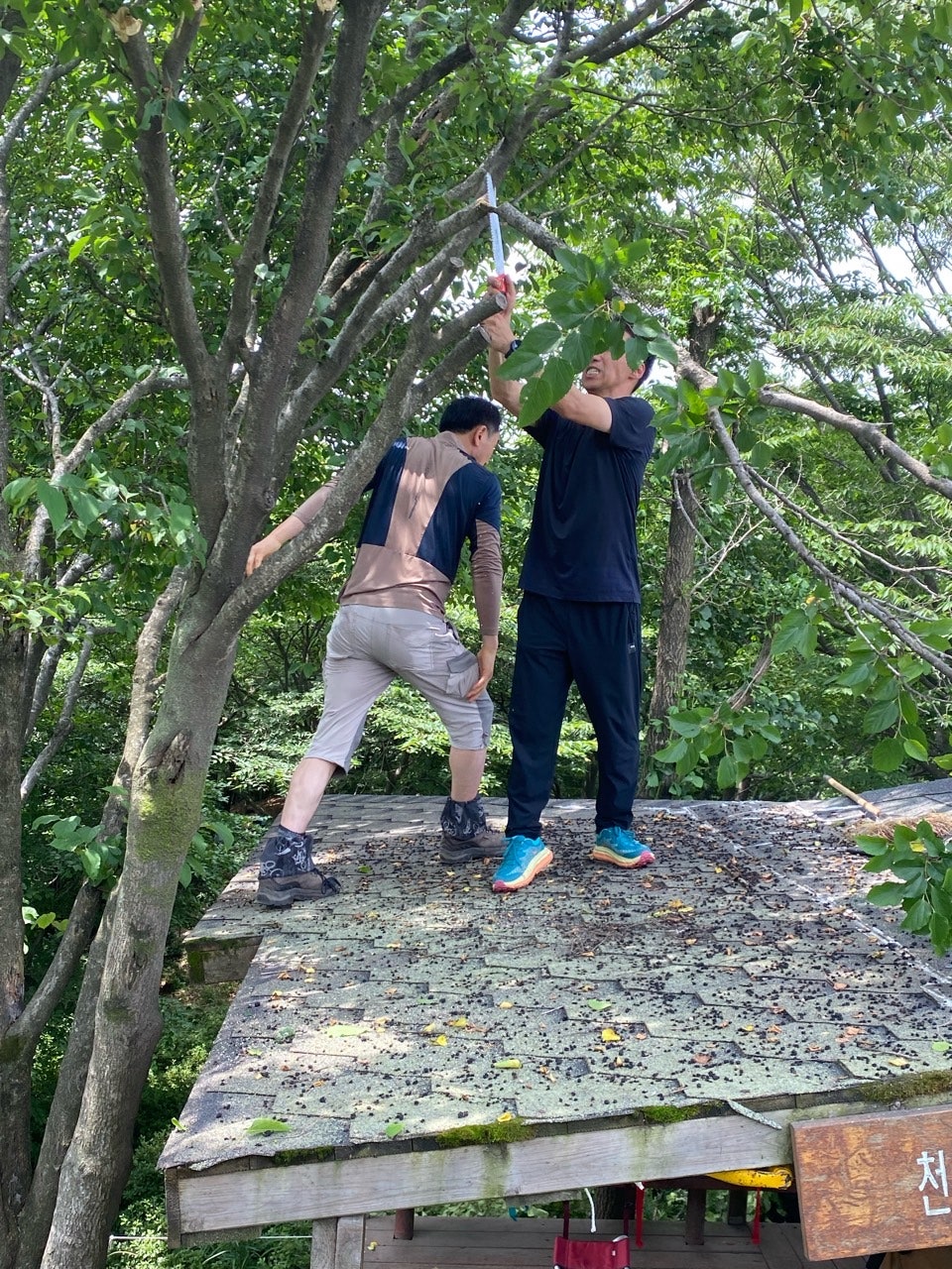 활동상황 제목- 2023년 6월 25일 근무일지 -2023-06-26 10:10작성자kskang- 2023년 6월 25일 근무일지 -날씨 : 맑음근무자 : 김영주 팀장님~이연우,방영배,이인숙,이병배,허기영,홍지연대원님 포함 총 7명근무시간 : 09시~16시까지출발전 인증~^^팀장님과 6명 대원들 ~ 이연우 대원님은 먼저 출발하심!주창장에 차가 꽉찼네요~광덕사 지나 환자 발생 콜 받고 정자까지 뛰어오름~팀장님이 환자분에게 여쭤보고 파스 뿌려드리고물도 드리고 얼름물병이용으로 분대 감아드림통증을 줄이기 위한 금 냉찜질구조대원들이 오시기전에 ~응급처치 완료구조대 5분 도착 상황보고하고 구조대는 가심한민영대원님이 바이크 가지고 오심방영배,최용현대원이 환자 이송시까지 확인함무사히 내려가시고 최용현대원님은 환자분 친구분이랑 걸어서 하산하시고방영배대원님은 정성으로 고고정상에 도착하자마자 산악 비상구급함 열어날짜확인하고주변 클린정화 작업시작조경수도 이쁘게 정리하고초소위를 가린 나무도 정리하고잘린 가지도 모아서 버리고정상에 쓰레기도 줍고초소지붕도 깨끗하게 치우고영배,인숙대원님은 나무 치우시고이연우대원의 훌륭한 낮질 ~~완벽 깨끗두분이서 가지치기 해주시고밑에서 치워주고혼자하기 힘든 작업은 둘이~점점 초소가 환해지고태극기글 가린 가지를 치고초소 주변 풀도 깨끗하게 정리하니보는이도 저희도 좋네요더운날씨에 모두가 땀흘리게 일하고시원한 빙수로 더위를 날려보고병배님이 얼려온 우유 연우님이 얼려온 후르추칵테일과빙수의 꽃 팥과연우를 잘 썪으니 ~~시원한 빙수가~~양도 많죠~근무중에 서울에서 오신 부부상우님이 물을 차에 놓고오셨다며 저희에게 요청~~물도 드리고 생수한병 드맀어요!인상좋으신 두분이 저희랑 사진도 찍어가시고저희 단체사진도 이쁘게 찍어주셨네요.자연스러운 모습도 이쁘게 담아주셨네요.화이팅!하산길에도 정화는 끝이 없네요길막는 나무도 치우고왔습니다.오늘도 수고하신 대원 여러분 고생하셨습니다.손봐야할곳~산악구조대 회원모집 광고 현수막 설치요망!바람세게 달아야함!그리고대원님들 옷이 급해요~허기영대원님 쓰러질뻔했어요~~~왜?겨울 티 입고근무~대장님~~~저희 반팔주세요~^^ 목록 댓글 [0] 더보기이전토요일 태조산 응급처치 활동kskang2023-07-23다음2023.06.18.(일) 근무일지kskang2023-06-26 Powered by MangBoard
