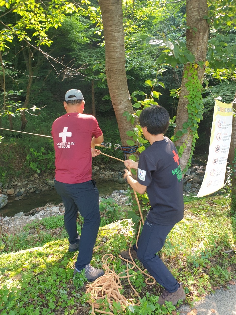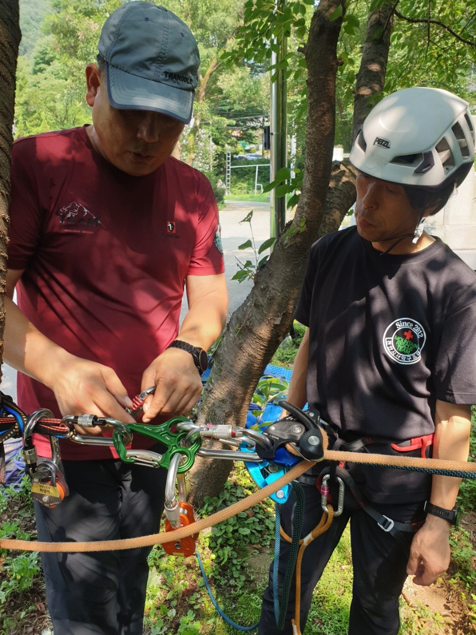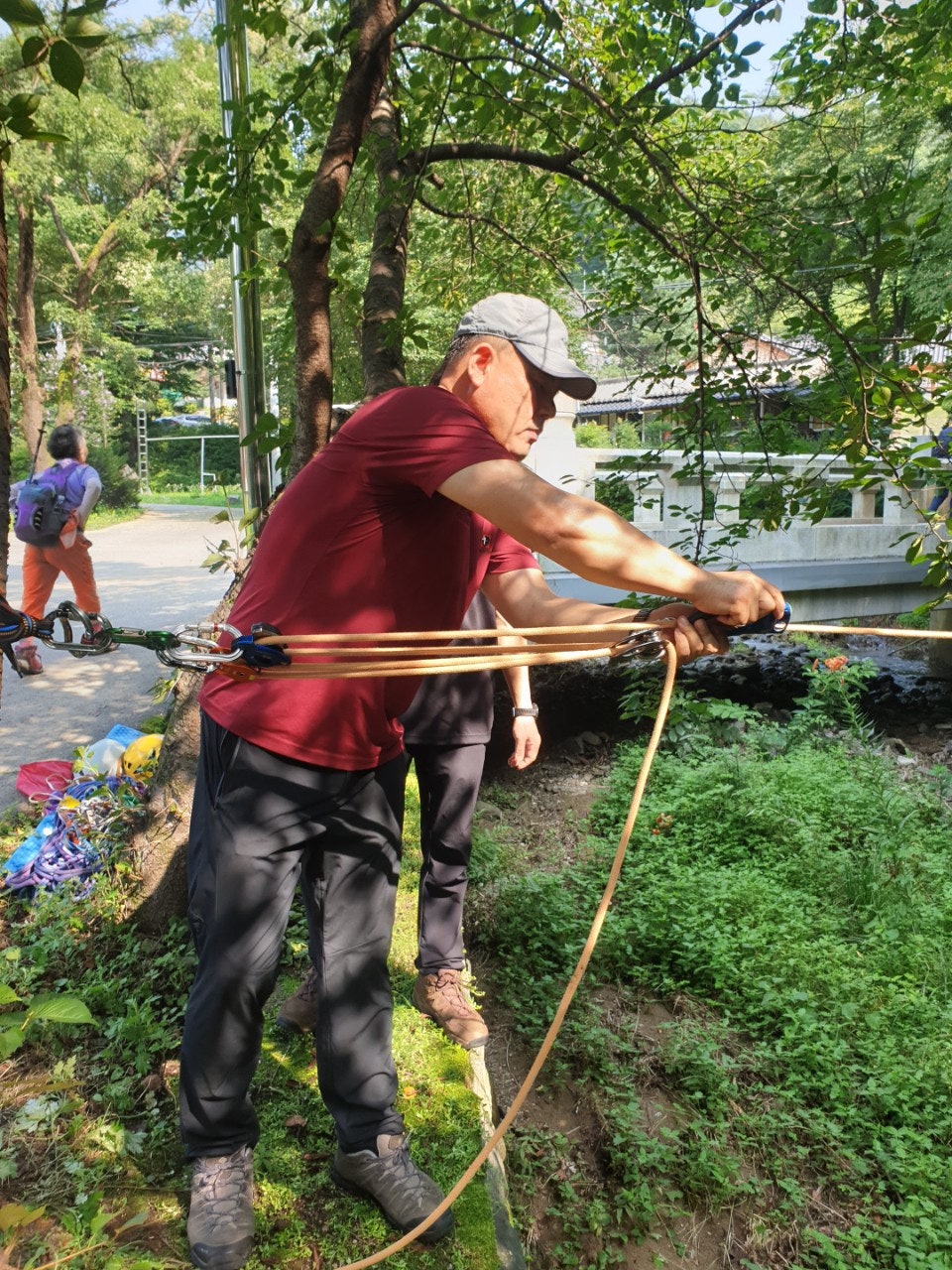 하여 금일 최성이 고문님의 지도 아래 재난대비 티롤리안 훈련을 해보았습니다. 더불어 등반객도 함께 참여할 수 있는 유익한 시간이었습니다. (폭염으로 인한 등산객 감소로 많은 분들이 참여치 못하였음 ^^;)