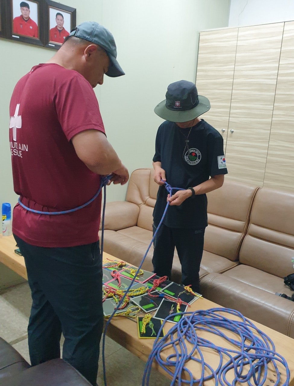 훈련 후 구조대 사무실에서 근무대기하며 그동안 배워보았던 매듭법을 반복해서 연습하는 시간도 갖어보았습니다. 오늘 근무해주신