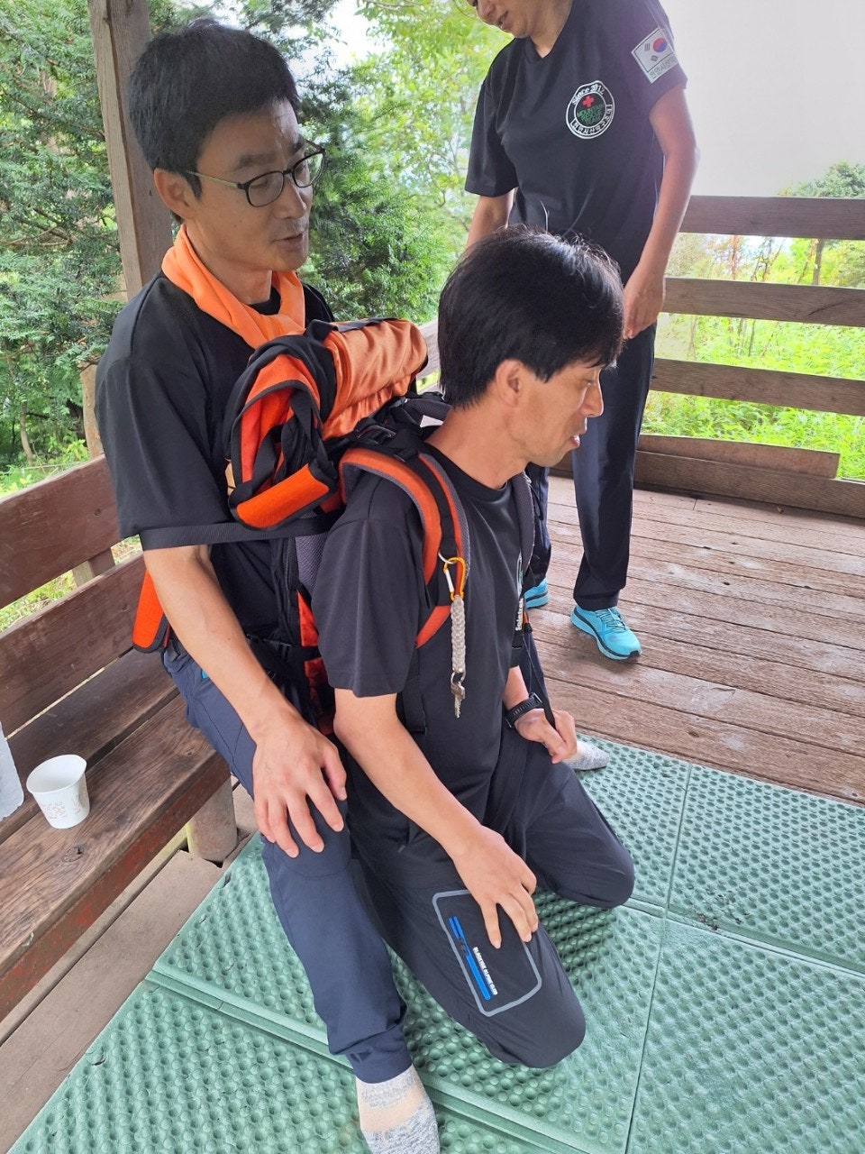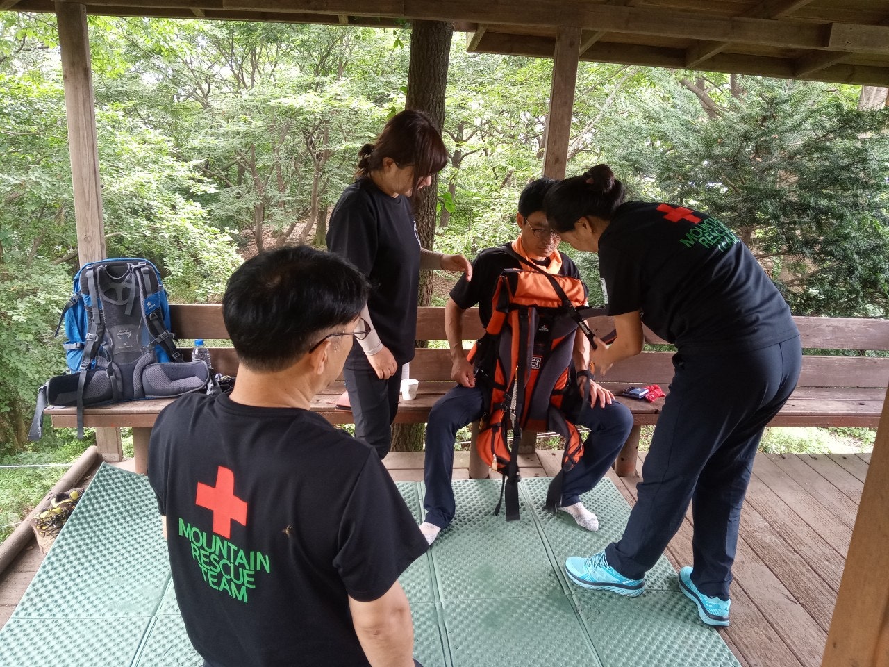 - 구조배낭이용 응급구조자 이동시 사용법 연습