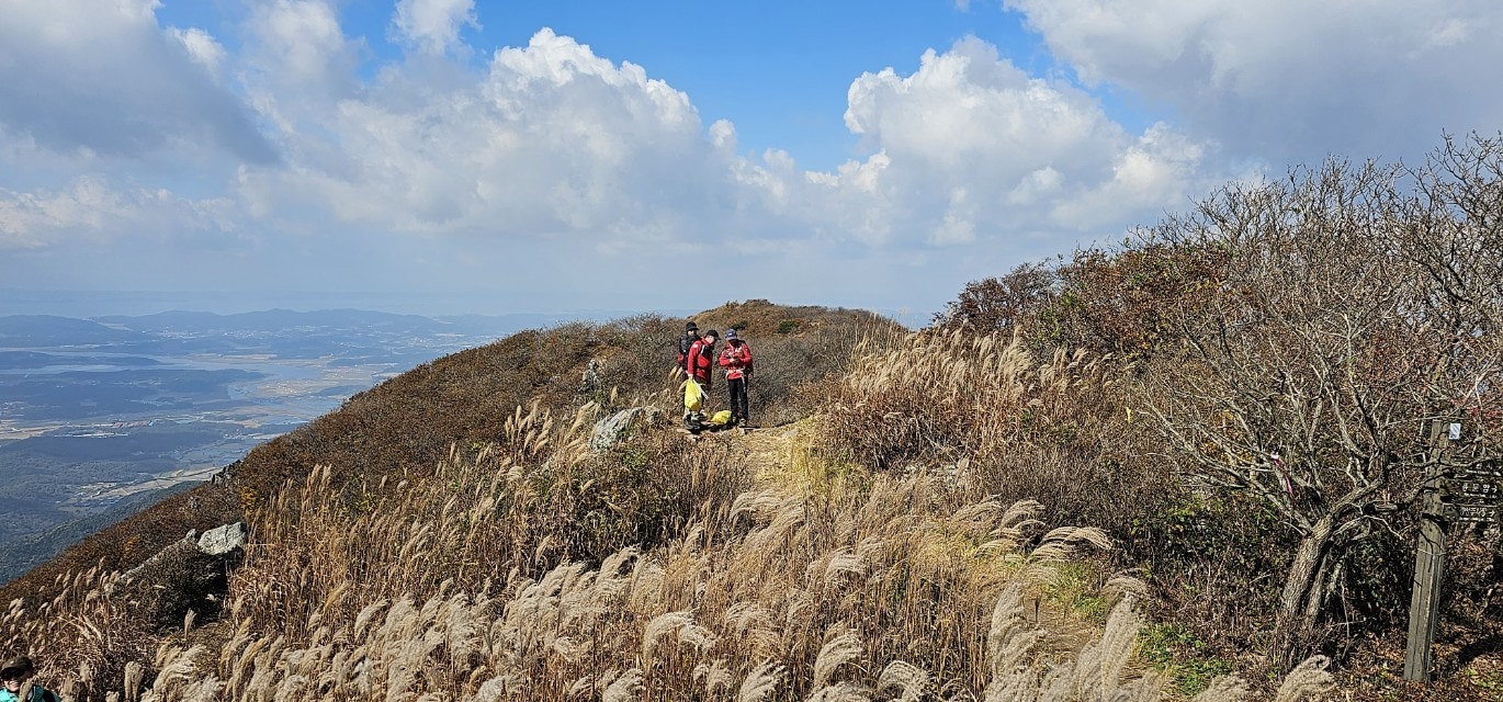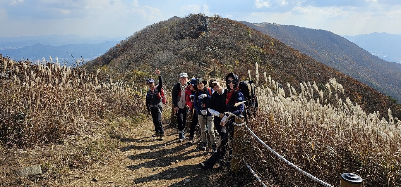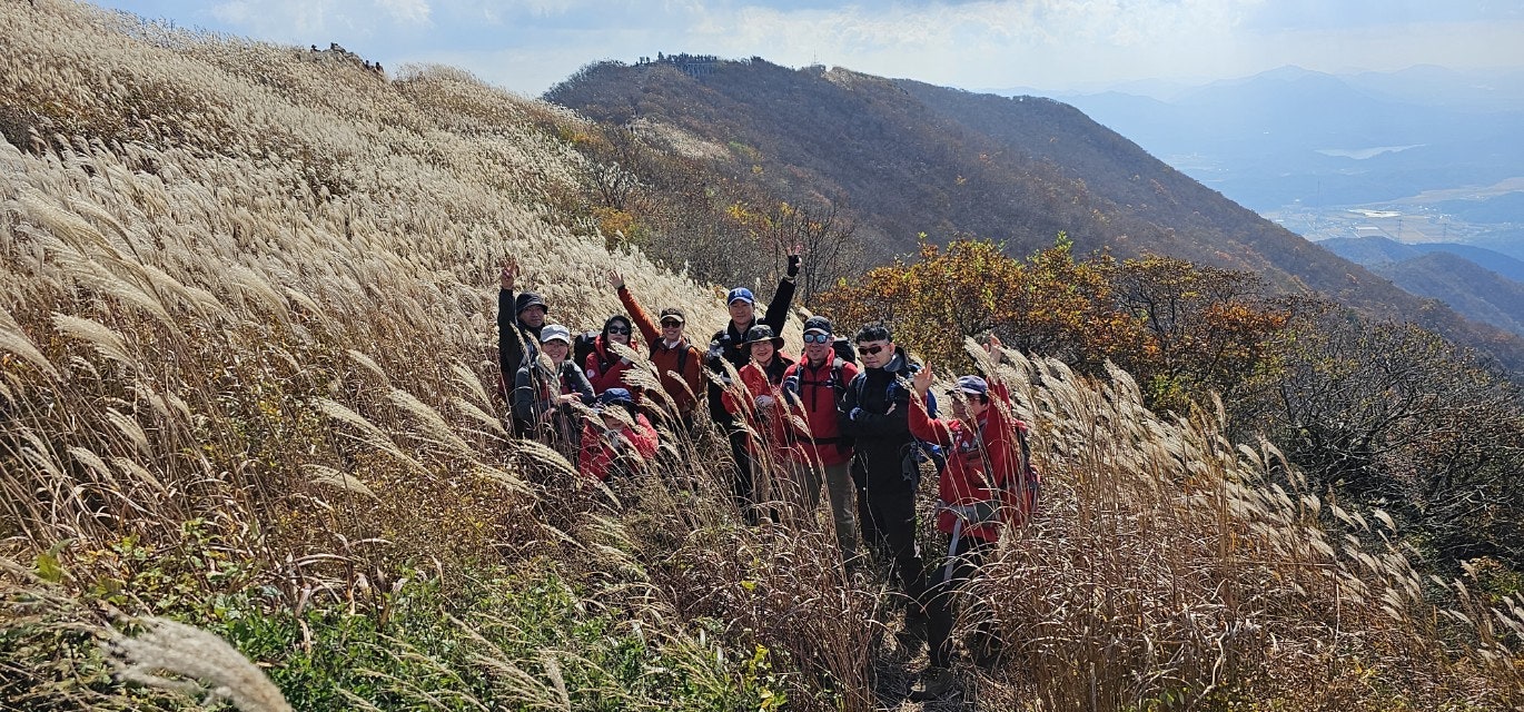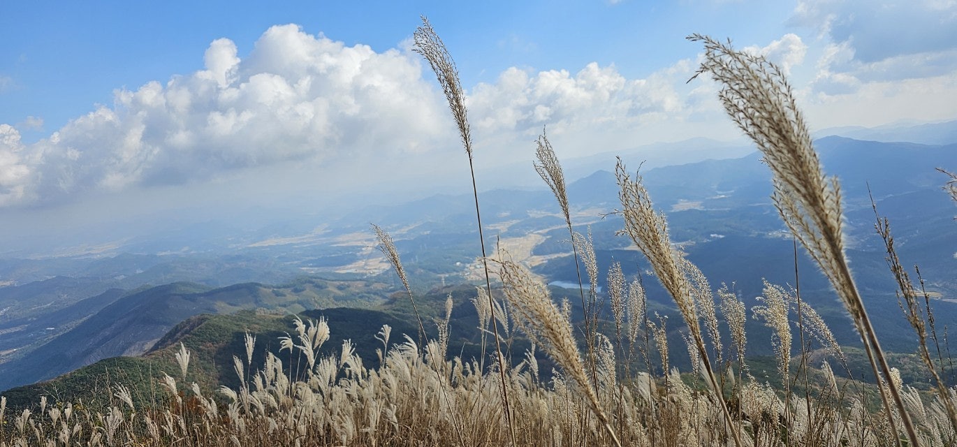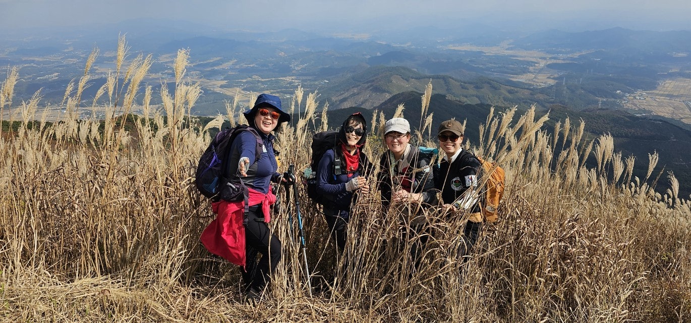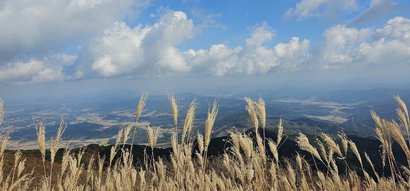 화창한 가을 날씨에 오색의 울긋불긋 물들은 오서산 억새풀