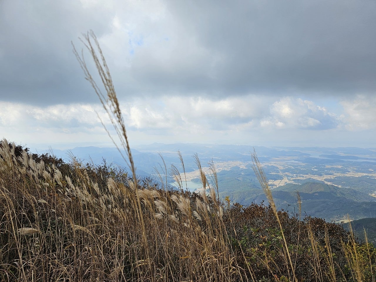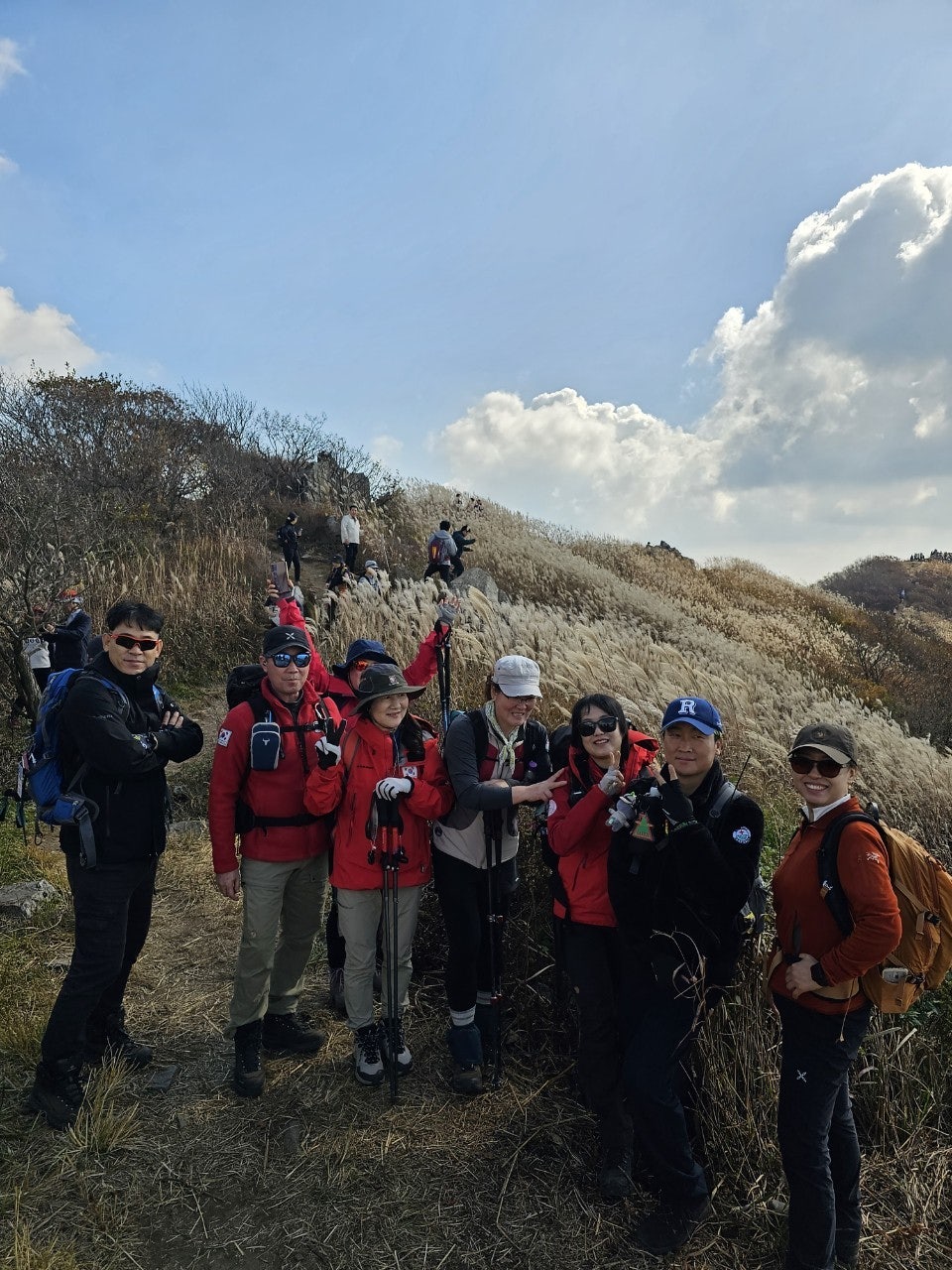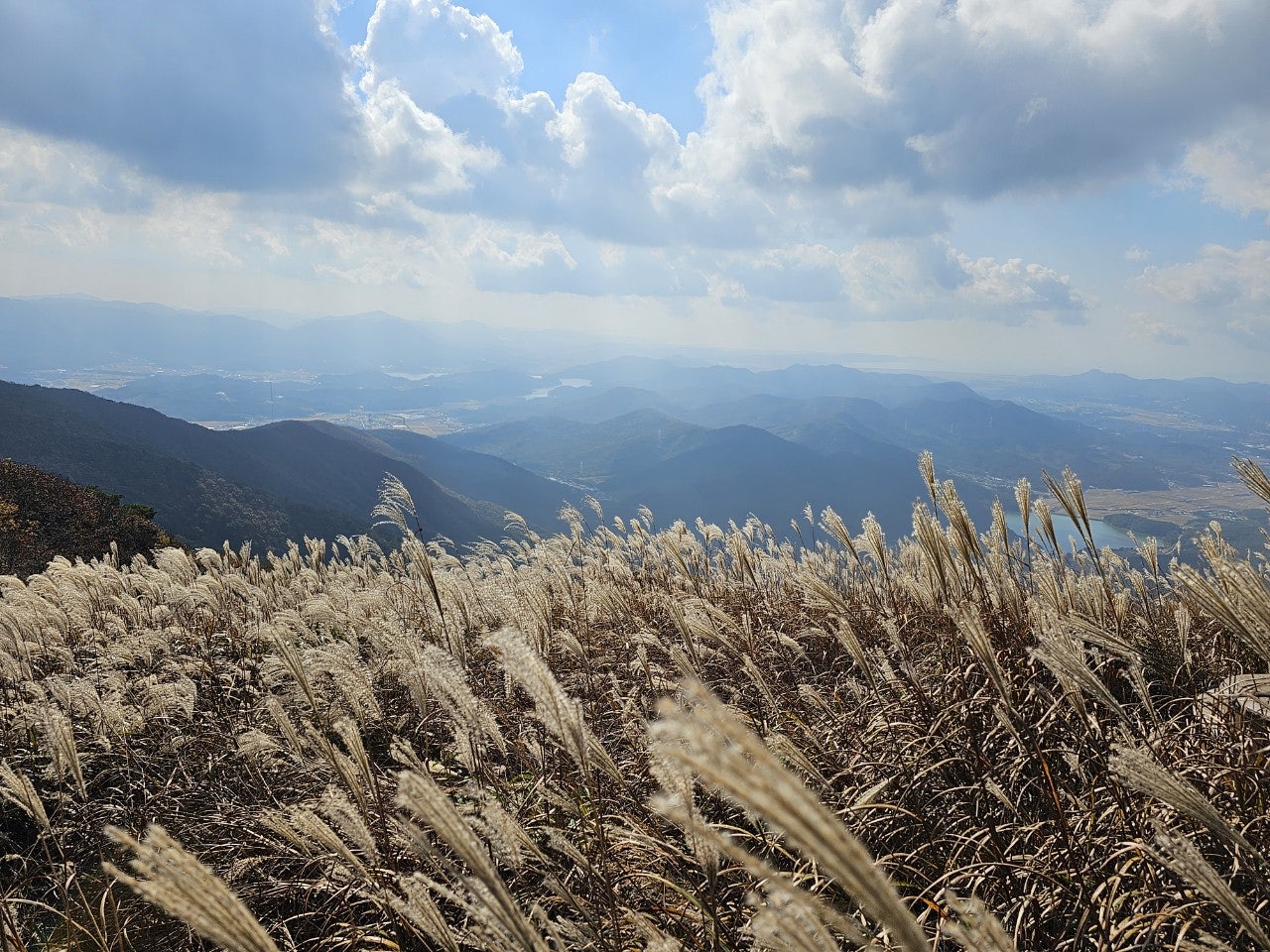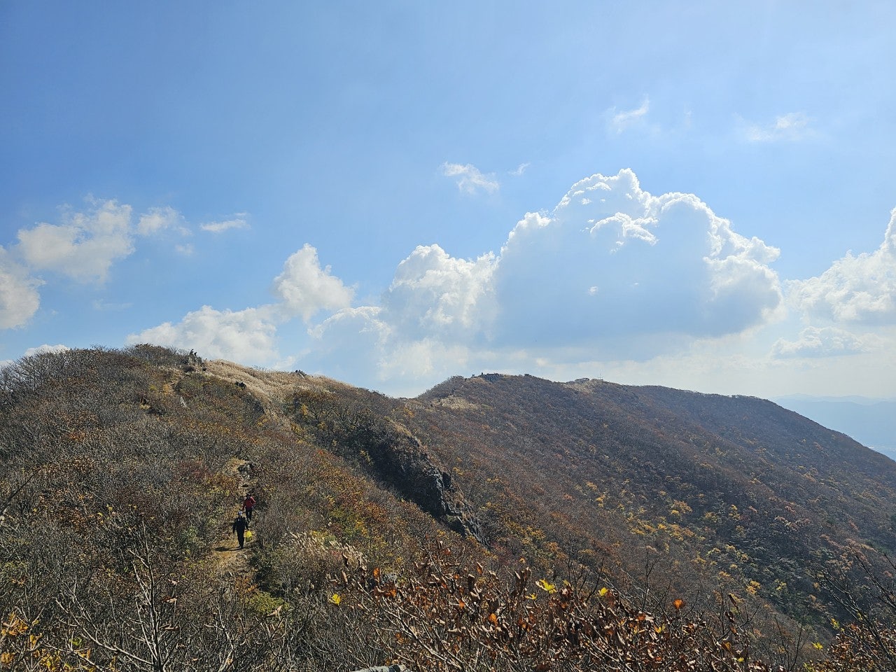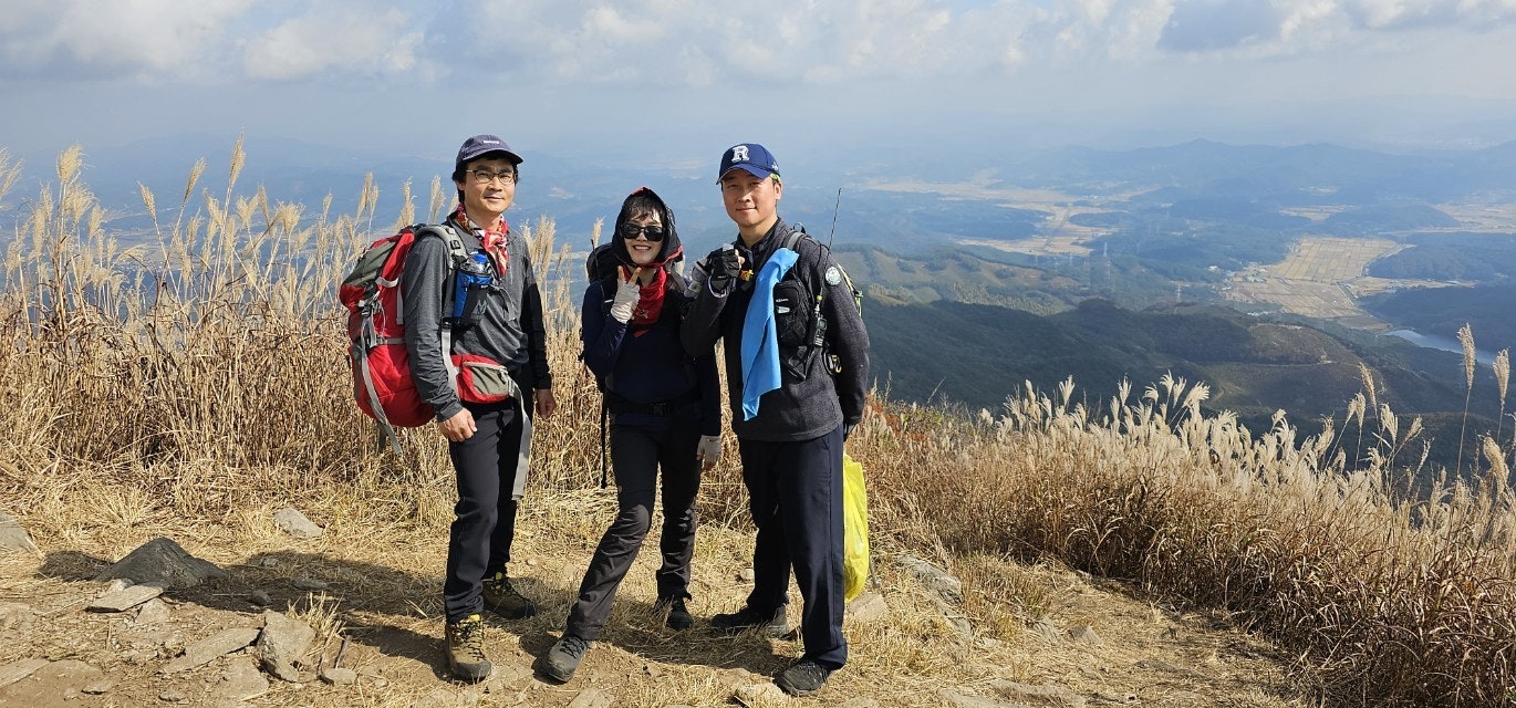 화창한 가을 날씨에 오색의 울긋불긋 물들은 오서산 억새풀