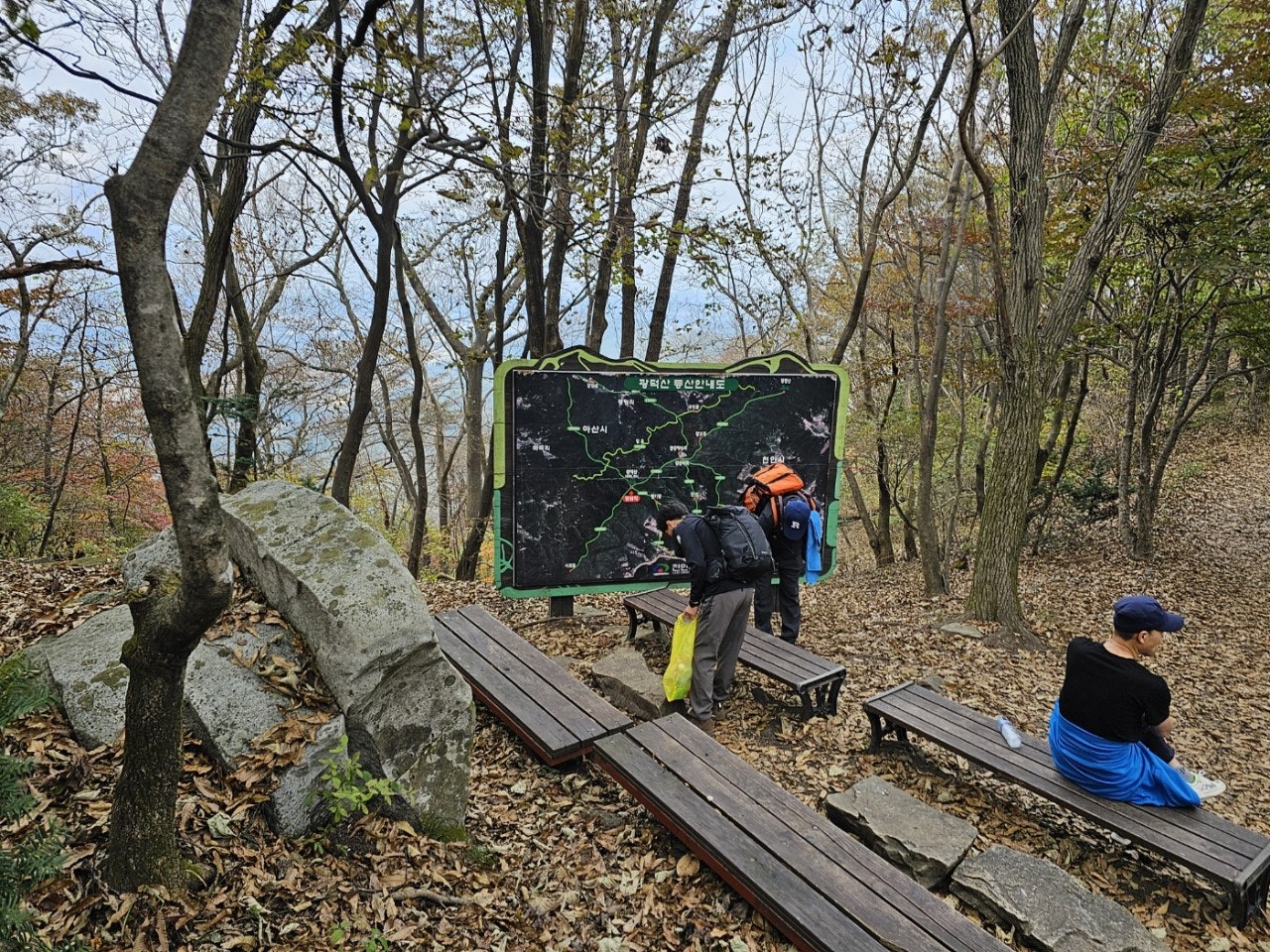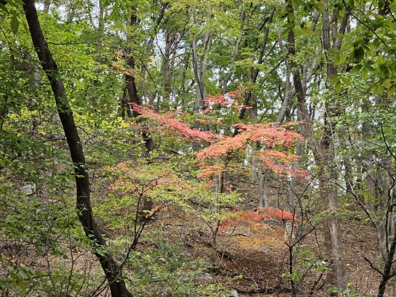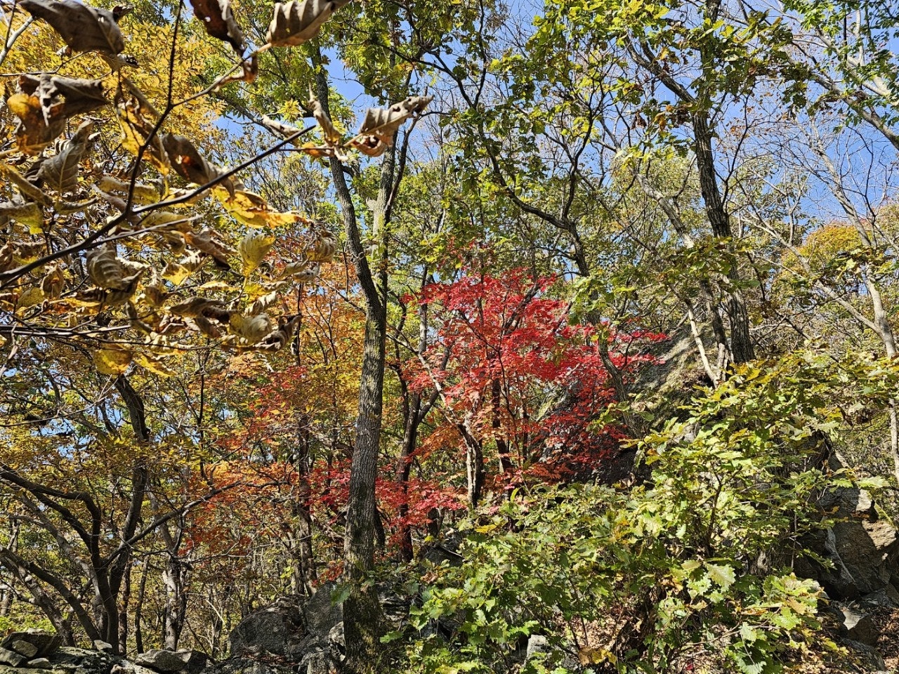햇빛이 잘 드는곳엔 빨갛게 단풍이 들었지만 전체적으로 광덕산 단풍은 아직입니다.