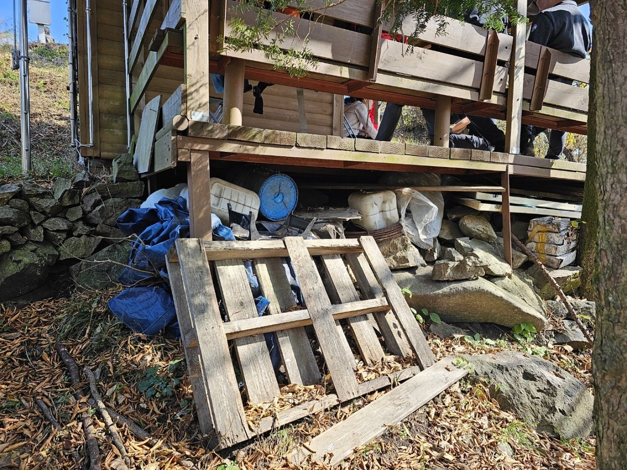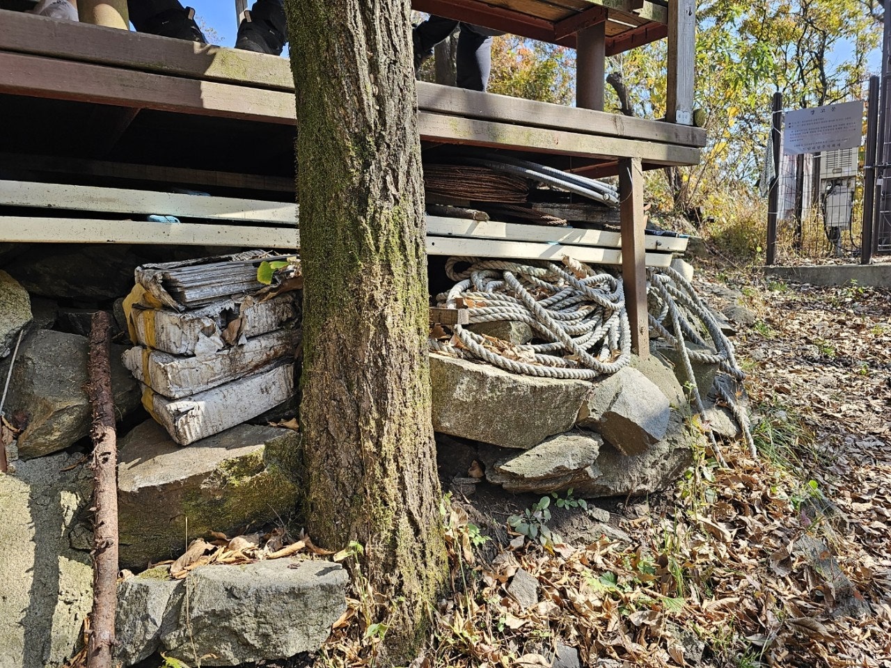 초소 바닥 밑 공간을 활용하자는 박용윤 감사님의 말씀이 있으셨습니다. 안쓰는 물건들을 치워서 공간 마련하자고 하셨고, 이창덕 사무국장님이 일단 시에 요청을(초소 만들당시 사용하고 남은 자재들등등)해보자 했습니다.
