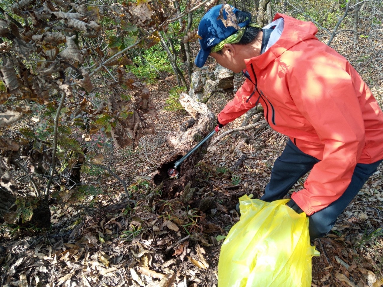 점심을 해결하고 오랜만에 석류봉쪽으로 정화활동을 했습니다. 비교적 사람들이 많이 다니지않아 쓰레기는 없었지만 안보이는 곳(썩은나무안쪽, 바위사이)에 꽁꽁 숨겨놓을걸 찾았습니다.