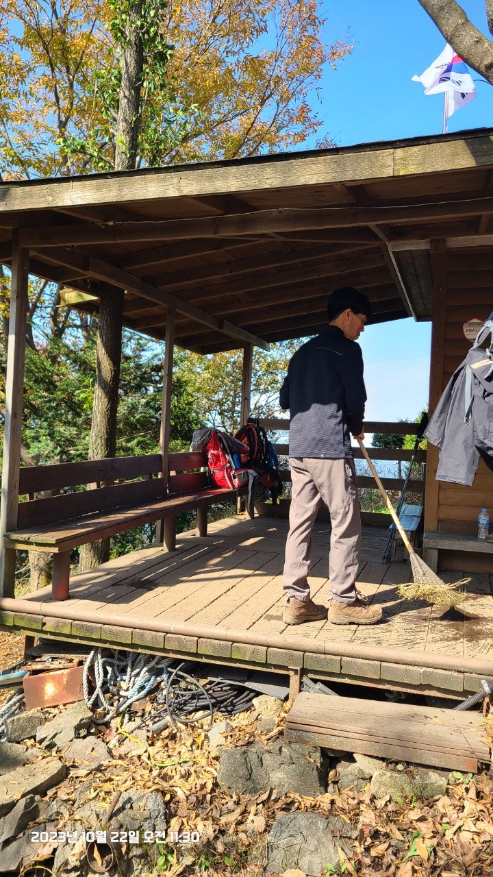 정상 도착후 고상배 대원이 초소바닥을 깨끗하게 청소했습니다.