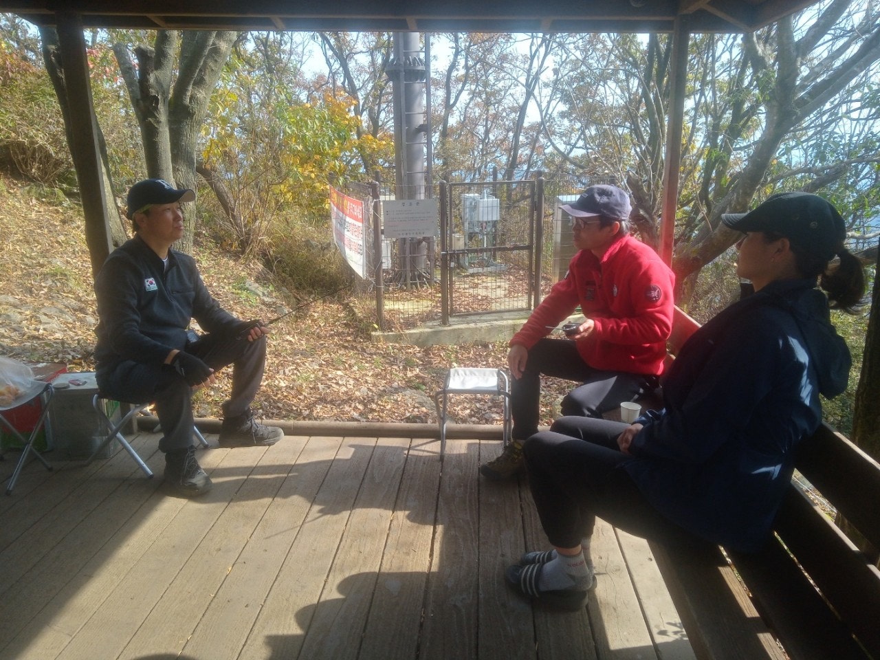 다시 정상으로 돌아와 무전기 교신 방법에 대해 제가 교육했습니다. 생활무전기나 CB무전기는 아무나 사용할수 있으나 아마추어 무전기는 자격증이 있는 사람만 가능하지만 저희는 산악구조대원으로써 사용하기에 기본적인 교신 방법에 대해 말씀드렸습니다.
