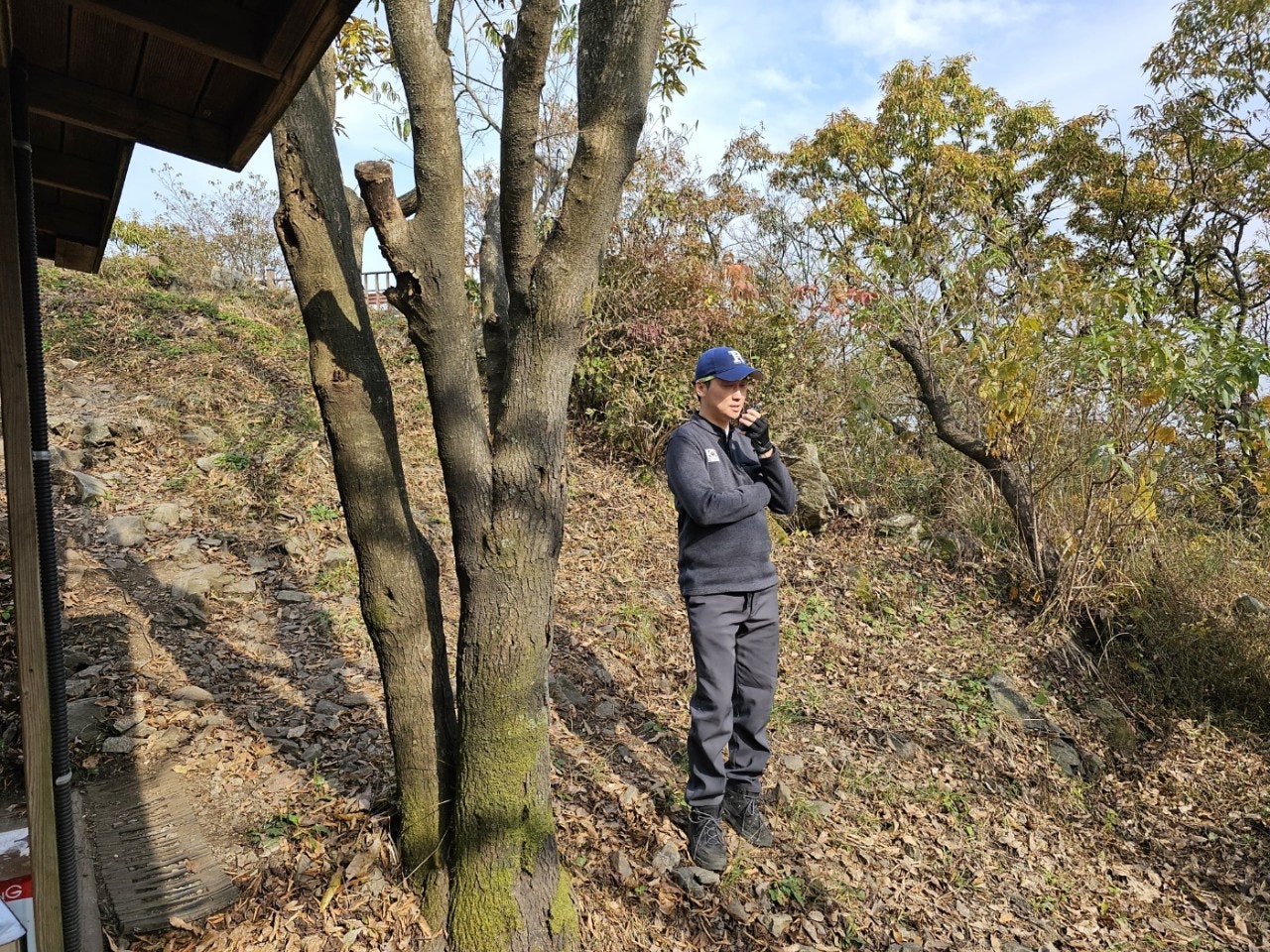 9시에 소방서 연락하고 사무실 앞에 모였습니다. 오늘도 파이팅! 근무인원 6명으로 고상배대원 과 진홍석대원은 장군바위쪽으로 올랐고, 박용윤 감사님외 3명은 헬기장쪽으로 올랐습니다.