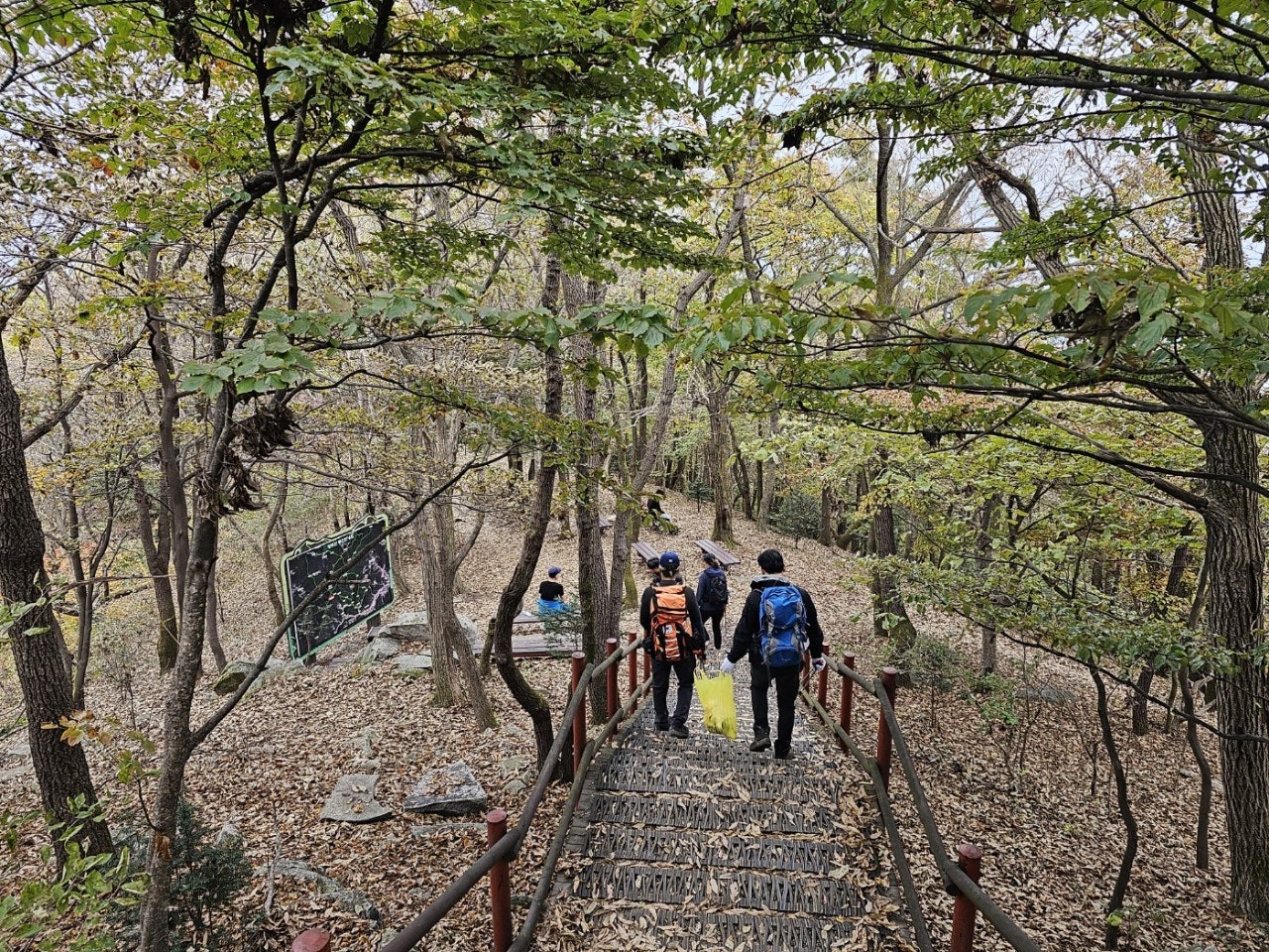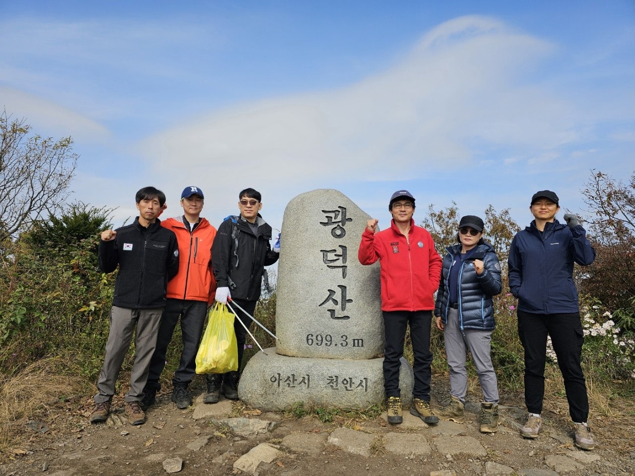 두 갈래로 오르면서 광덕산 정화활동 하면서 오릅니다.