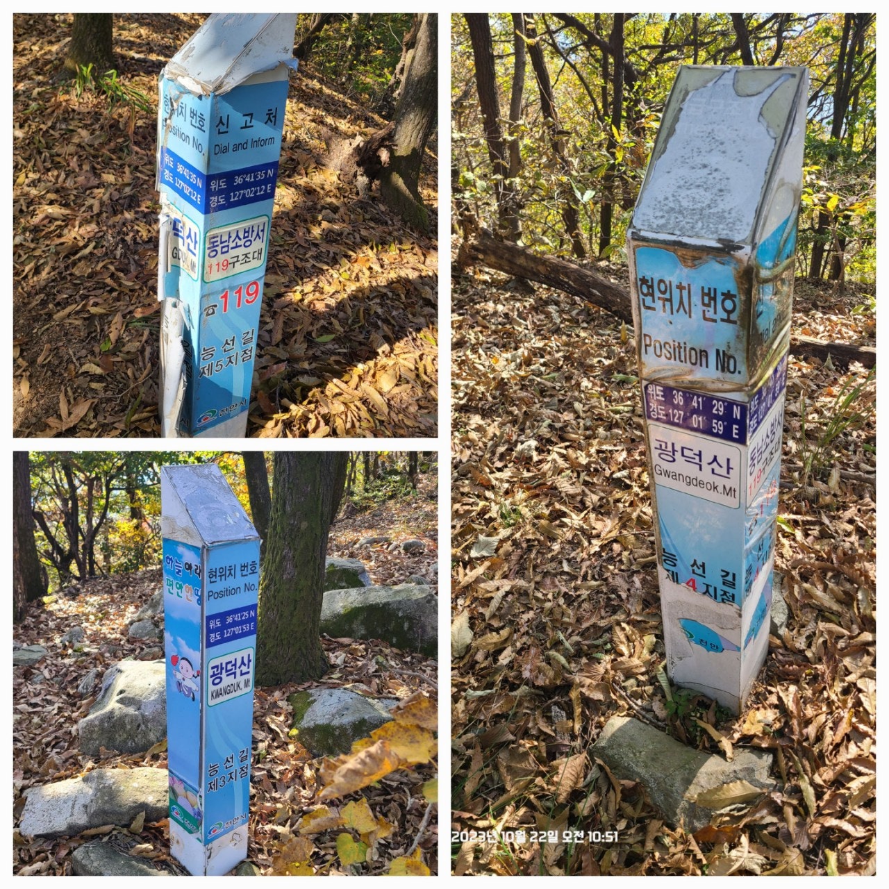 장군바위에서 정상으로 가는 능선길에 세워진 안내판을 저번에 조사해서 소방서에 제출한것으로 알고 있는데 오늘 가면서 보니까 파손된채 정비되지 않은 모습이었습니다.