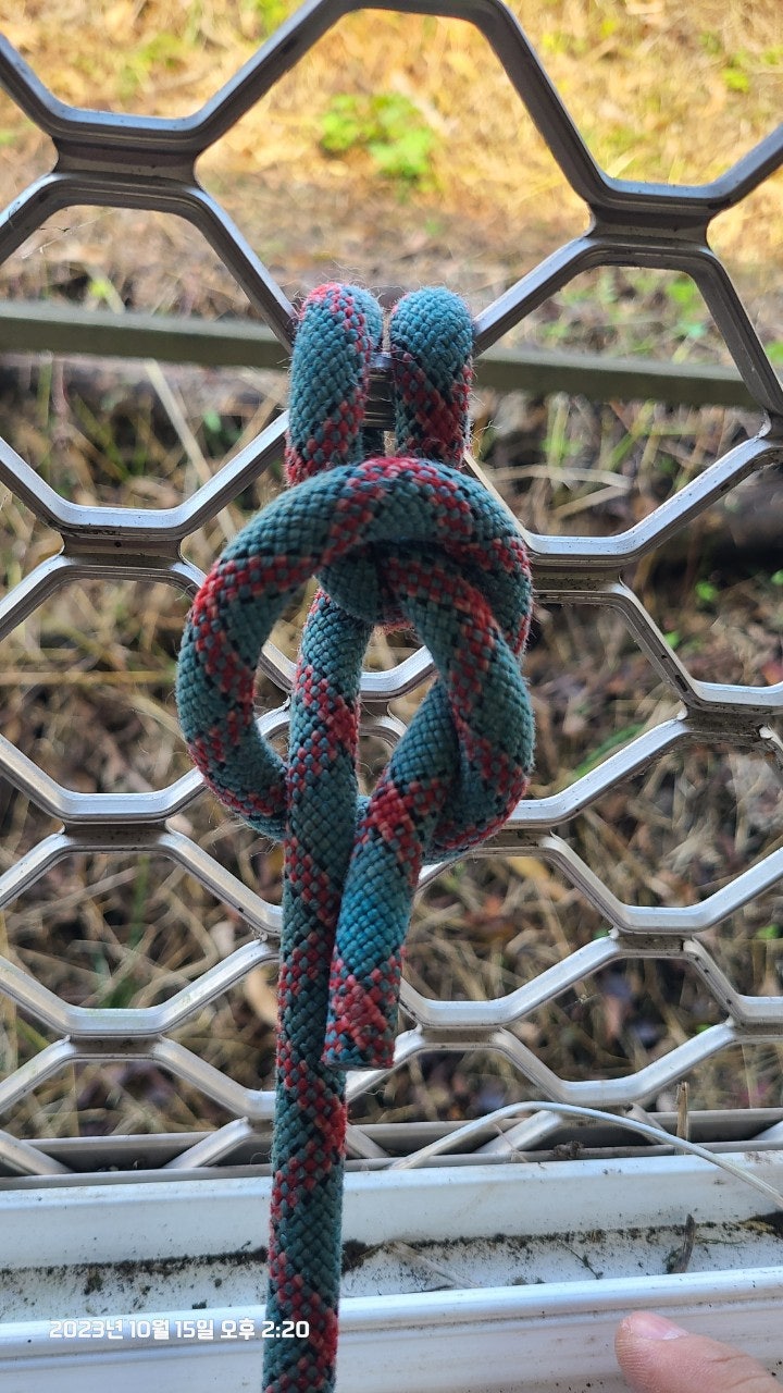 초소 창문에 걸어보았습니다. 오늘 배운 매듭법 잊지 않게끔 반복적으로 연습해야겠습니다.