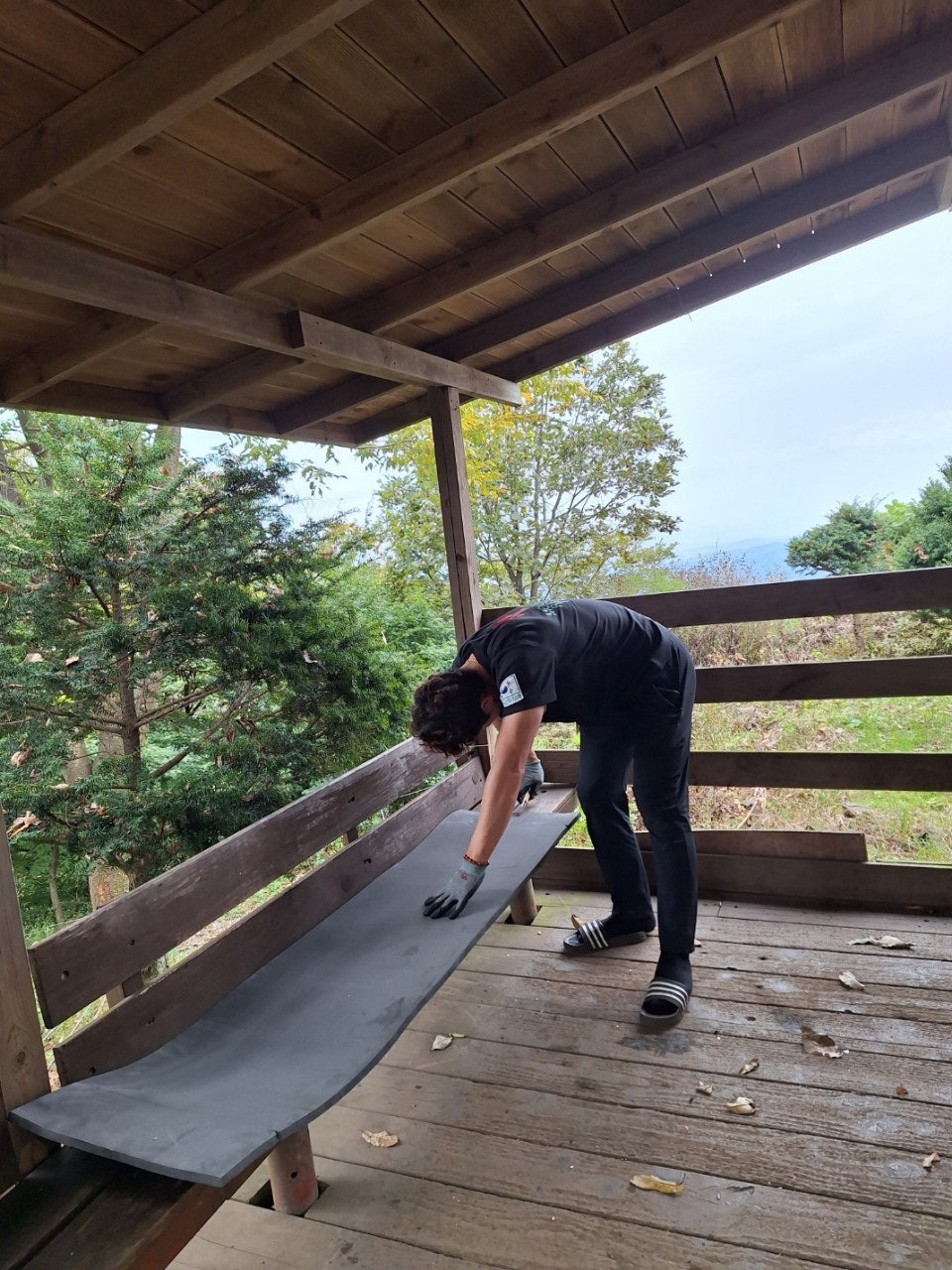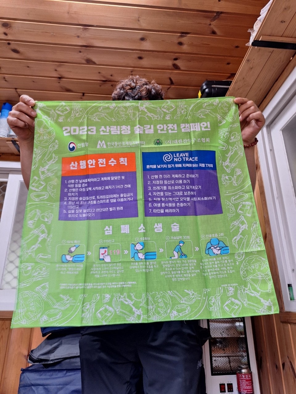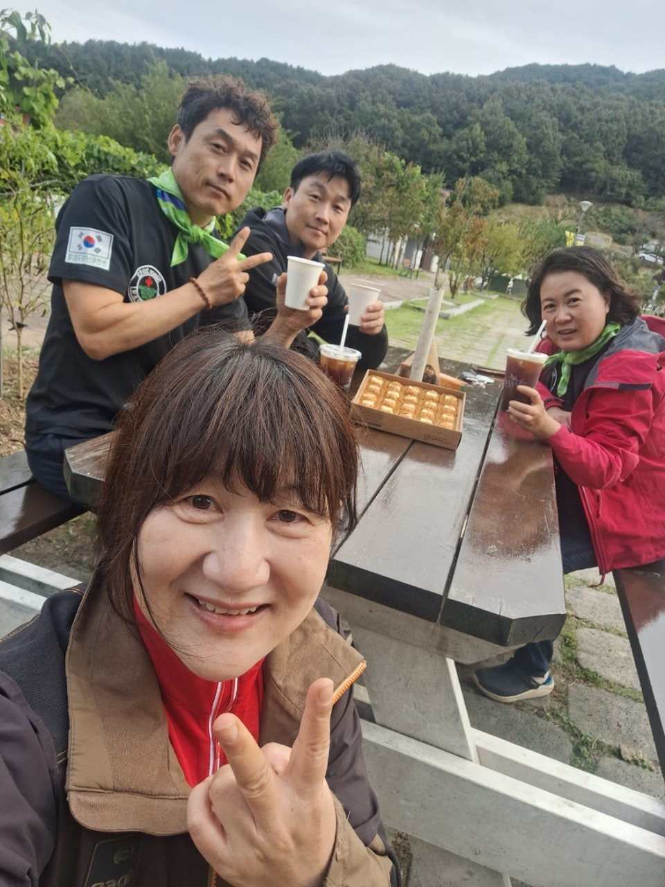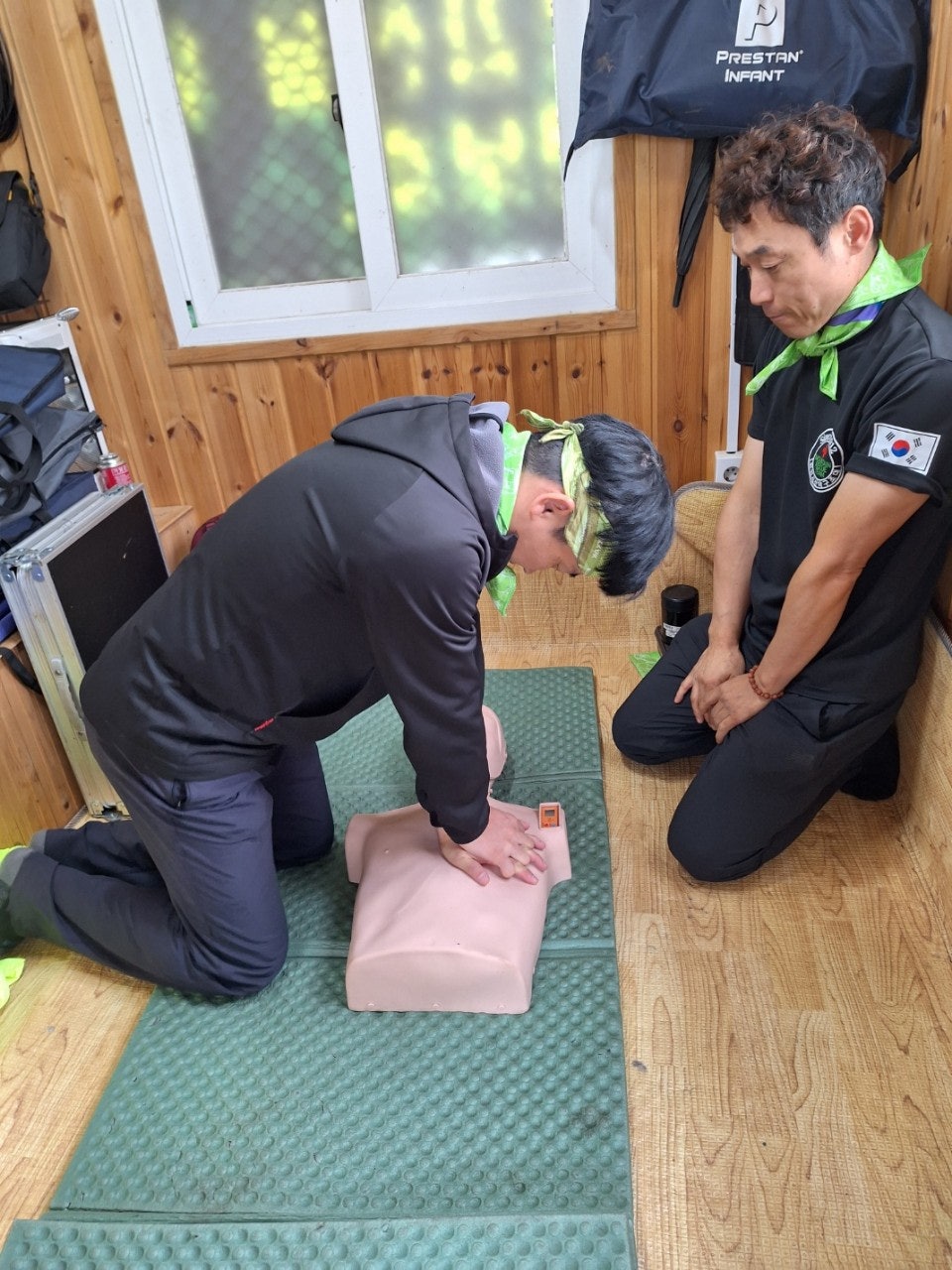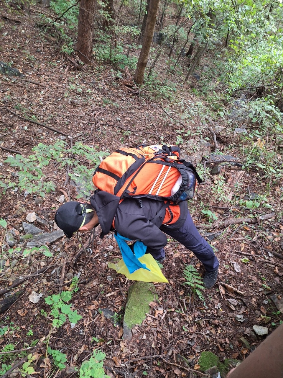 활동상황 제목천안시 산악구조대 근무일지 날짜 10월 8일 일요일2023-10-31 09:53작성자kskang천안시 산악구조대 근무일지날짜 10월 8일 일요일날씨 흐렸던 날씨근무자 김상균 감사님, 김태화 운영위원님, 전난희 팀장님, 김연우, 허기영, 진홍석 대원사진은 김상균 감사님이 찍어주셨습니다.이러고보니 독수리 5형제였습니다^^소방서에 보고후 사진찍고 정상을 향해 출발합니다.김상균 감사님은 사무실에서 무전기 수신감도 테스트 및 현장대기 하셨습니다.모두 즐거운 마음으로 오릅니다.매주 정화활동을 해서그런지 이번주는 깨끗했습니다.인간 다람쥐처럼 정말 빠르십니다^^정상을 오르는 중에 사무실에 대기하고 계신 김상균 감사님과 무전 수신테스트를 계속 하면서 올랐습니다.저번주에 이어 이번주에도 정상 초소를 따뜻하게 하기위해 허기영 대원이 수고해주셨습니다.초소 바닥은 마무리되었습니다.엉덩이 떼기 힘듭니다.또한 전기히터도 설치를 완료했습니다.추운 겨울 초소 대기함에있어 안전하게 있을것 같습니다. 다시한번 감사드립니다.그리고 점심시간즈음 박주열고문님이 정상에 오셨습니다. 추모식이 있어 오신김에 초소에 방문하셔서 인사도 하고 약간의 담소도 나눴습니다.그리고 가시면서 허기영대원이 들고있는 스카프 5장을 주고 가셨습니다.산행시 유용한 내용이어서 찍어봤습니다.이연우 대원의 아이디어인데, '저희도 광덕산 지도를 배경으로 제작을해서 산행객에게 나누어줘서 조난시 위치확인을 할수 있음과 동시에 저희 산악구조대도 알릴수 있는 기회가 되지 않을까' 싶다는 의견이 있었습니다.점심 해결후 심폐소생술 연습을 좀 더 해봤습니다. 오늘 오전에 비가 조금 내렸고, 쌀쌀한 날씨여서 초소 내부에서 실시 했습니다.광덕산 정상입니다^^코스모스가 이쁘게 피었습니다.심폐소생술 연습도 하고 오늘의 일정을 마무리 합니다.하산완료후도솔암장에서 복귀하신 김상균 감사님이 사주신 커피와 호두과자를 먹으면서 앞으로 산악구조대가 해야할 일 등 자유로운 분위기 속에서 의견교환도하고 즐거운 시간 보내며 금일 구조대 활동 마무리 했습니다. 피로가 싹 풀렸습니다^^☆전달사항초소에 물 500ml 4개정도 있습니다.초소 및 사무실에 커피 없습니다.물티슈는 확인하지 못했습니다.(있는지 없는지 모르겠습니다)초소에 오르셔서 바닥 장판 및 벽에 달린 히터 사용후 코드 뽑아주시기 바랍니다.다음주에 사무실 앞 주차장에서 광덕산 호두축제가 13일에서 15일까지 있습니다. 주차 잘 하시기 바랍니다. 목록 댓글 [0] 더보기이전근무일지 2023. 10. 01kskang2023-10-31다음2023. 10.15 근무일지kskang2023-10-31 Powered by MangBoard