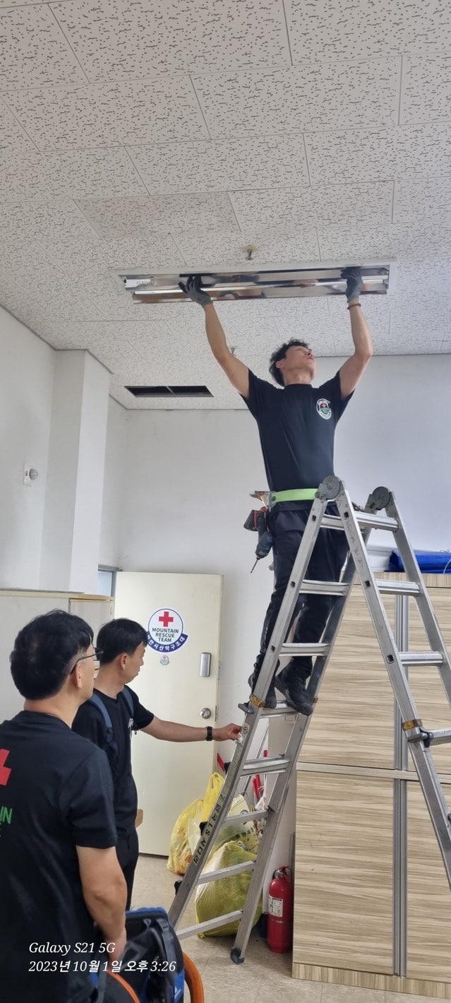 활동상황 제목근무일지 2023. 10. 012023-10-31 09:54작성자kskang근무일지2023. 10. 01 날씨 : 맑음정상에서 바라보는 시야 넓음~~^^도경용부대장님 ~김영주팀장님~허기영대원님.이인숙대원님.고상배대원님.김창하대원님.방영배대원님.임효진대원님홍지연대원님 .김상균감사님허기영 대원님은 전기판넬 들고 혼자 먼져 출발하여 사진은 함께 못함!등산로 정화활동하며 구조대 초소로 이동~날씨 추워짐 근무자들을 위해 허기영대원님의 선물초소 바닥에 전기 판넬 직접 설치와 함께 콘센트 교체까지 완벽환경이 넘 좋아지고 있어요~~~등산객이 많이 쉬고 갈수있게 가방걸이도 만들어 놓았습니다.퇴그넌에 장비가 있으신 관계로 허기영대원님이 형광등교체랑곰팡이로 보기 않좋은 천장도 깨끗하게 교체~~전재홍 신입회원님을 소개합니다.사무실에 물티슈 없습니다. 목록 댓글 [0] 더보기이전자원봉사박람회 결과보고kskang2023-10-31다음천안시 산악구조대 근무일지 날짜 10월 8일 일요일kskang2023-10-31 Powered by MangBoard