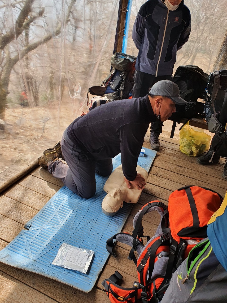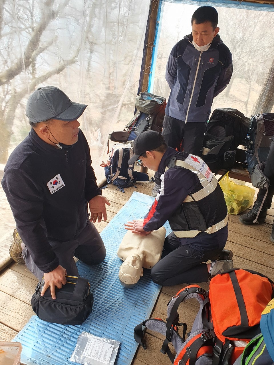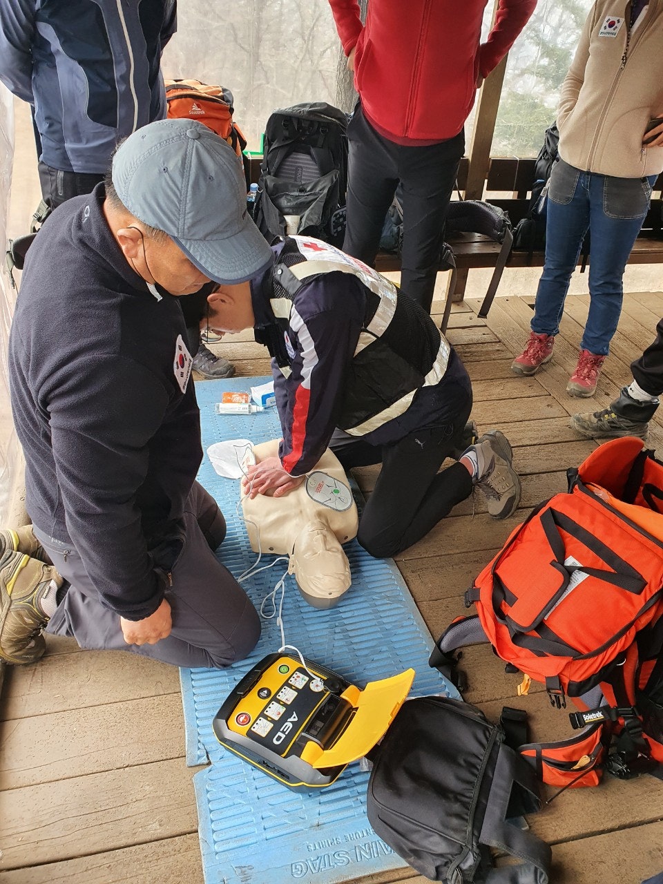 심폐소생술 교육과 안전산행 요령등등을 교육하시고