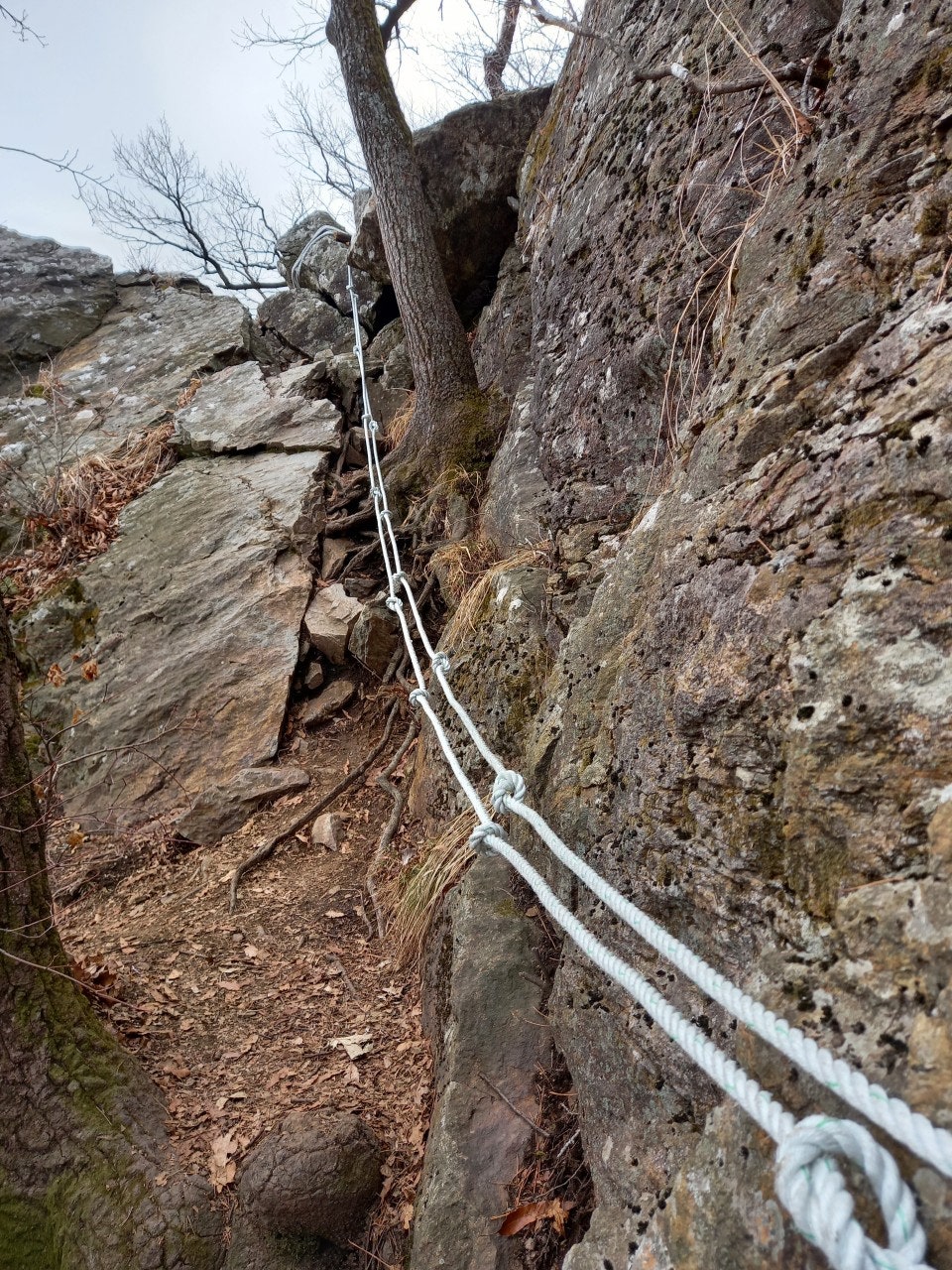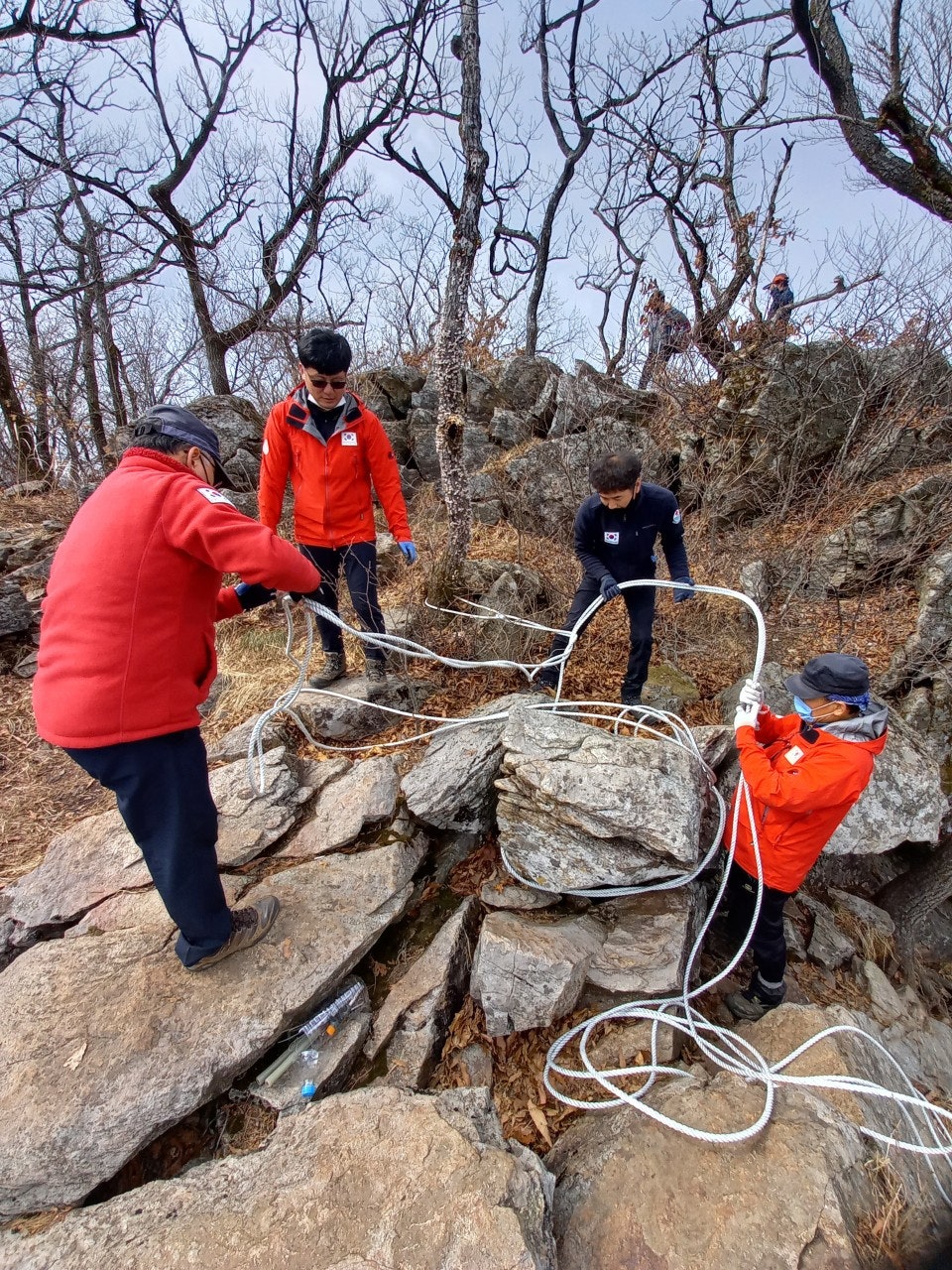 석류봉진입로 안전로프 설치와 낡은로프 철거후