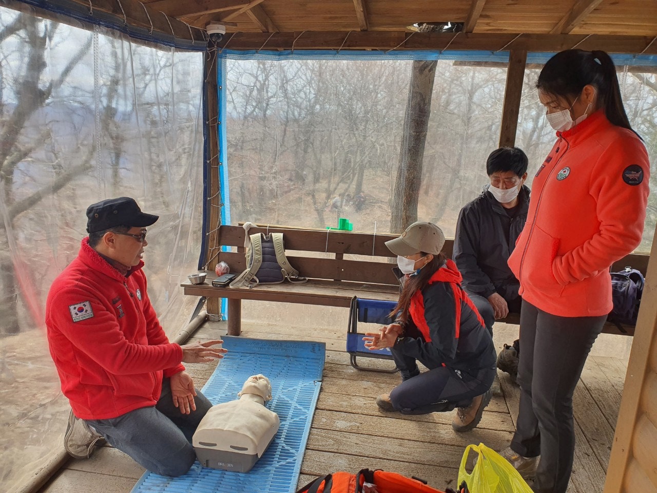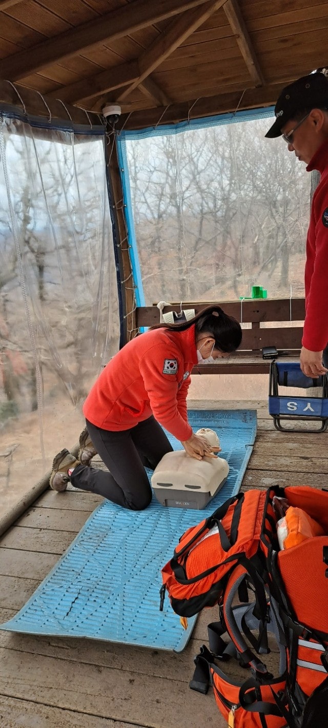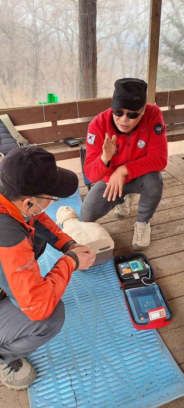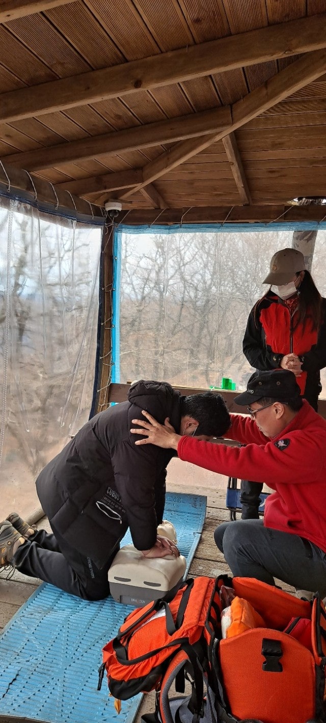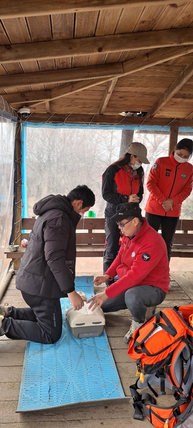 대원님들 먼저 진행하고 등반객 일부와도 함게 교육을 진행하였습니다.