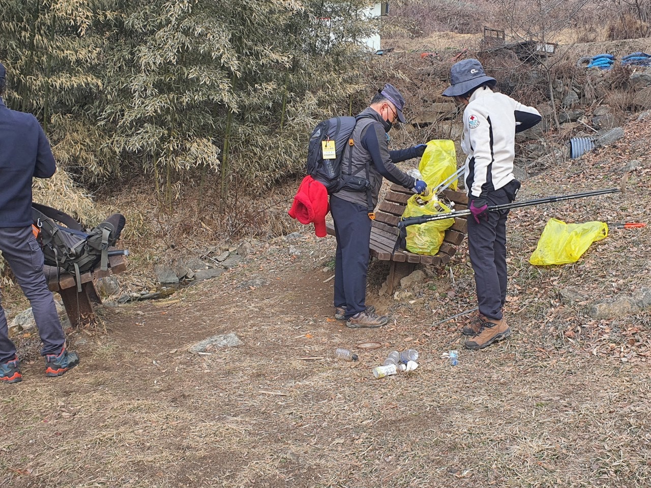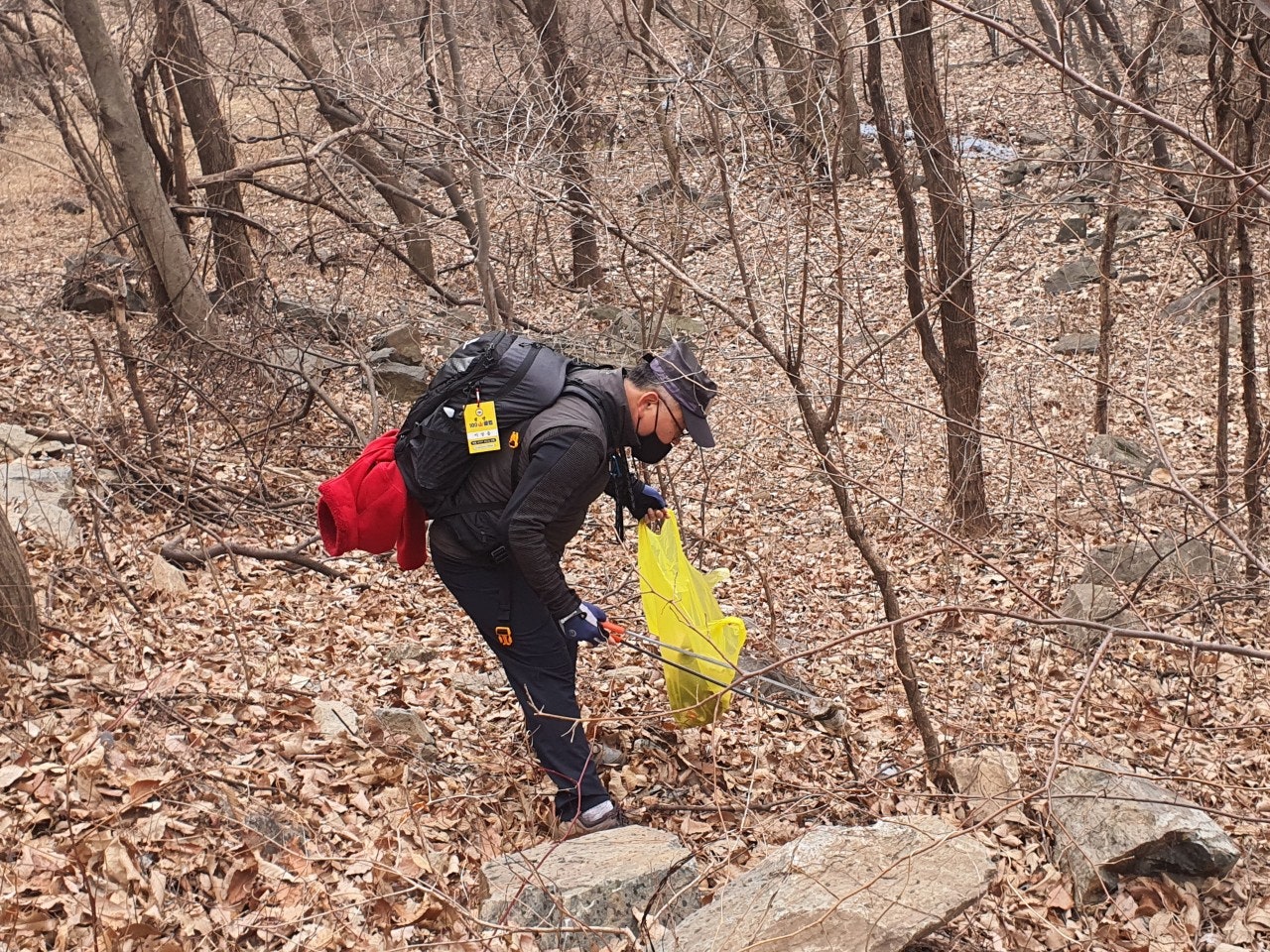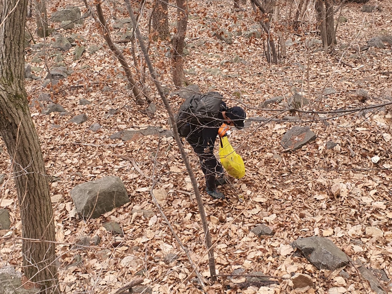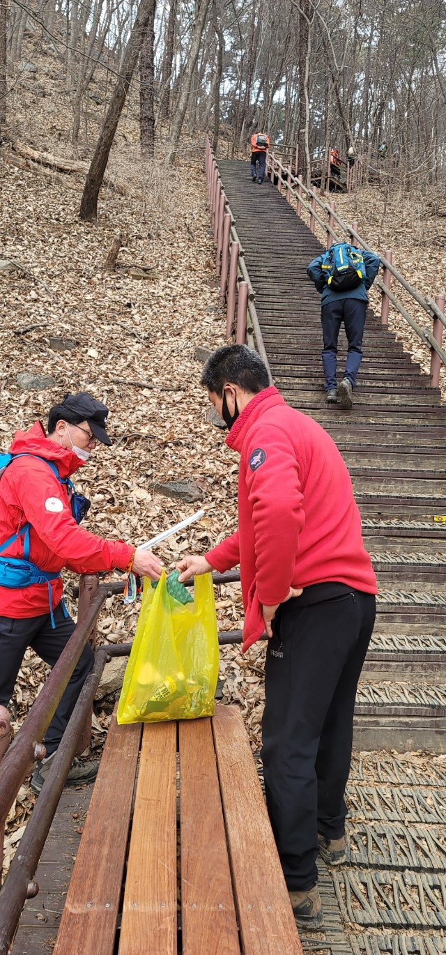 연휴기간이 있어서 그런지 아님 눈속에 파묻혔던 쓰레기였는지 너무 많은 쓰레기로 장군바위팀은 중간에 한봉지를 놓고 정상에 올라 올 정도였고 팔각정팀도 많은 쓰레기와 중간중간 죽어있는 고목도 제거하였습니다...