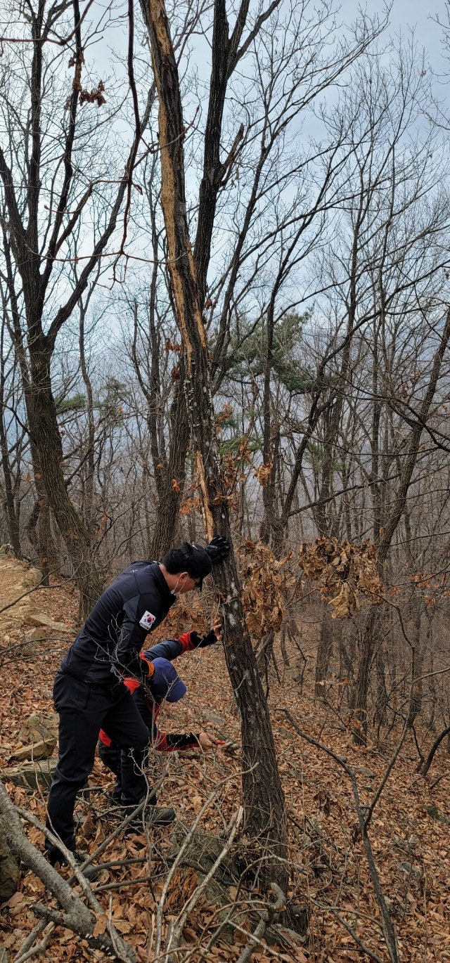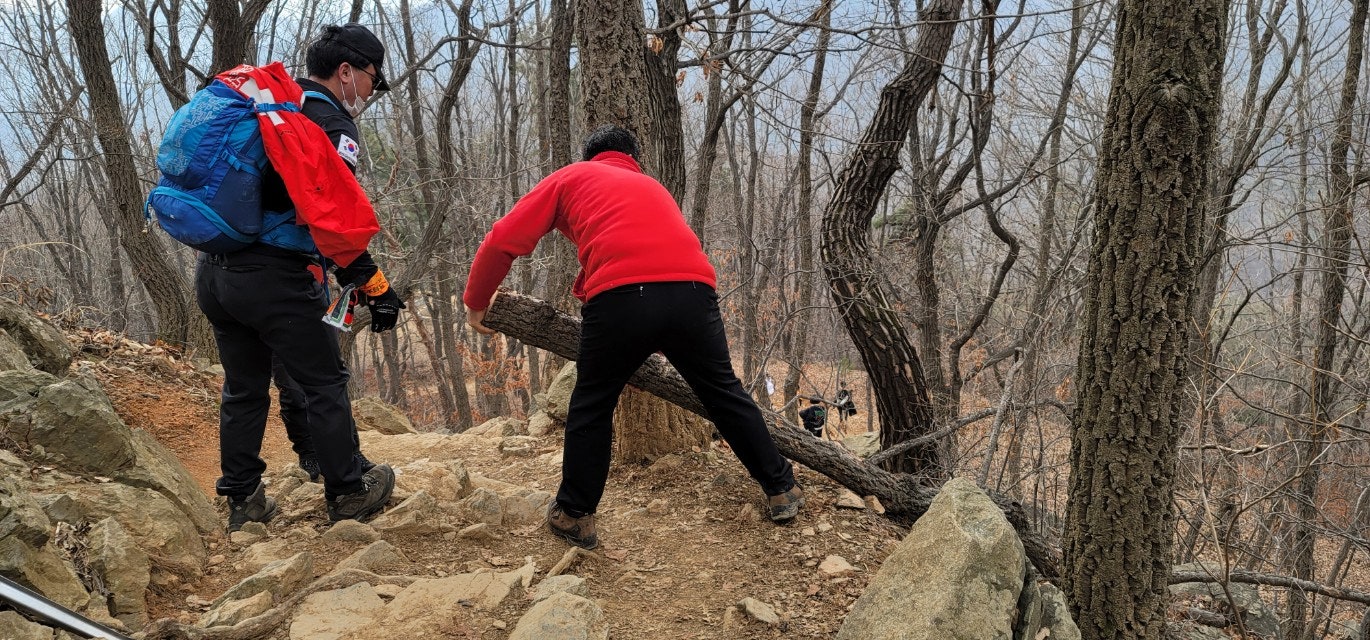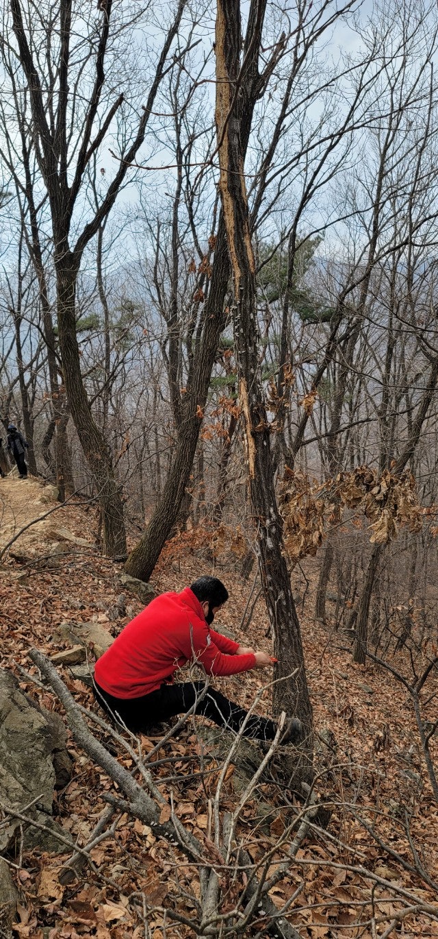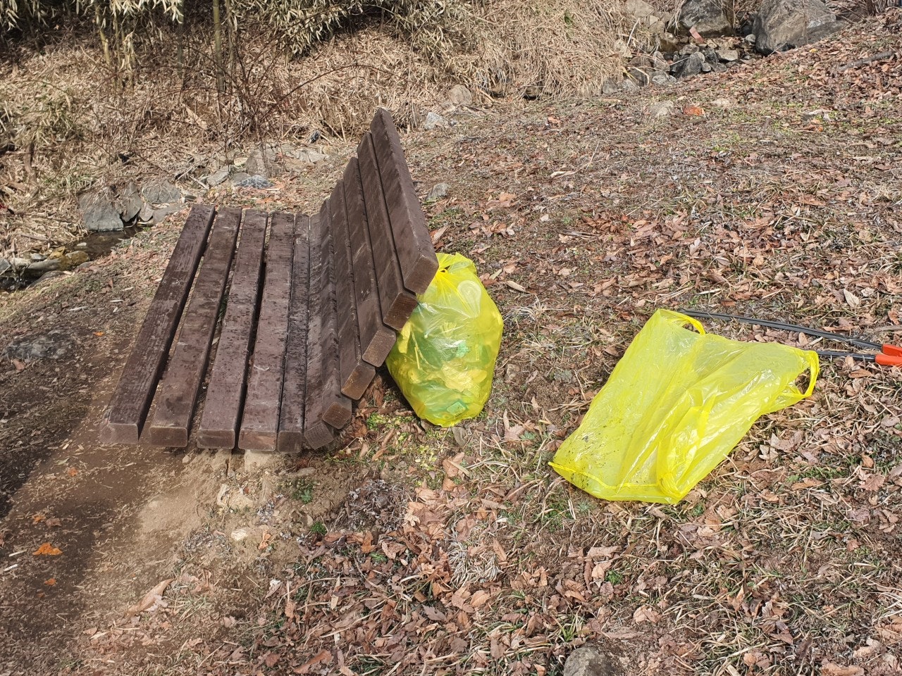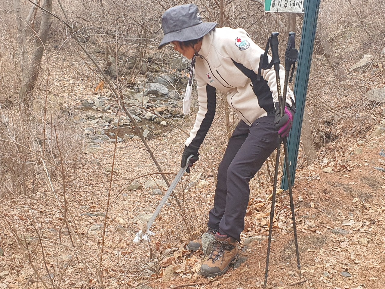 연휴기간이 있어서 그런지 아님 눈속에 파묻혔던 쓰레기였는지 너무 많은 쓰레기로 장군바위팀은 중간에 한봉지를 놓고 정상에 올라 올 정도였고 팔각정팀도 많은 쓰레기와 중간중간 죽어있는 고목도 제거하였습니다...