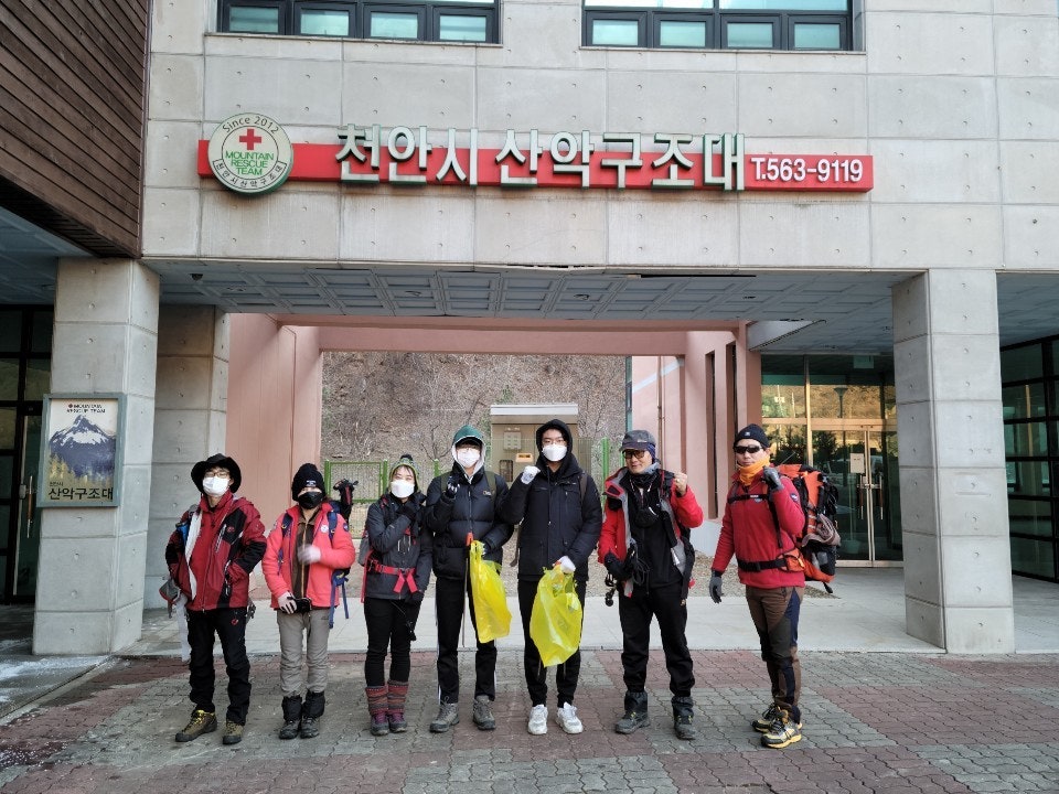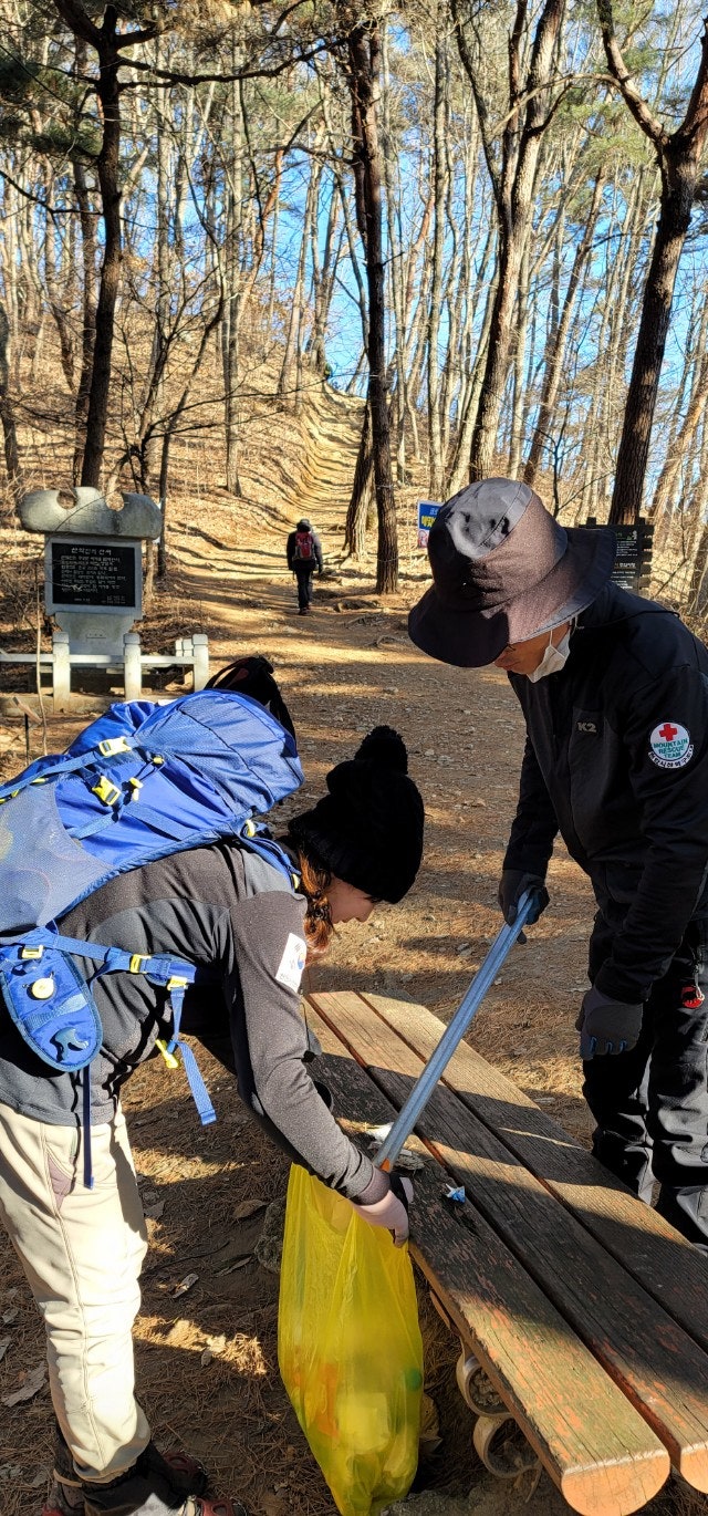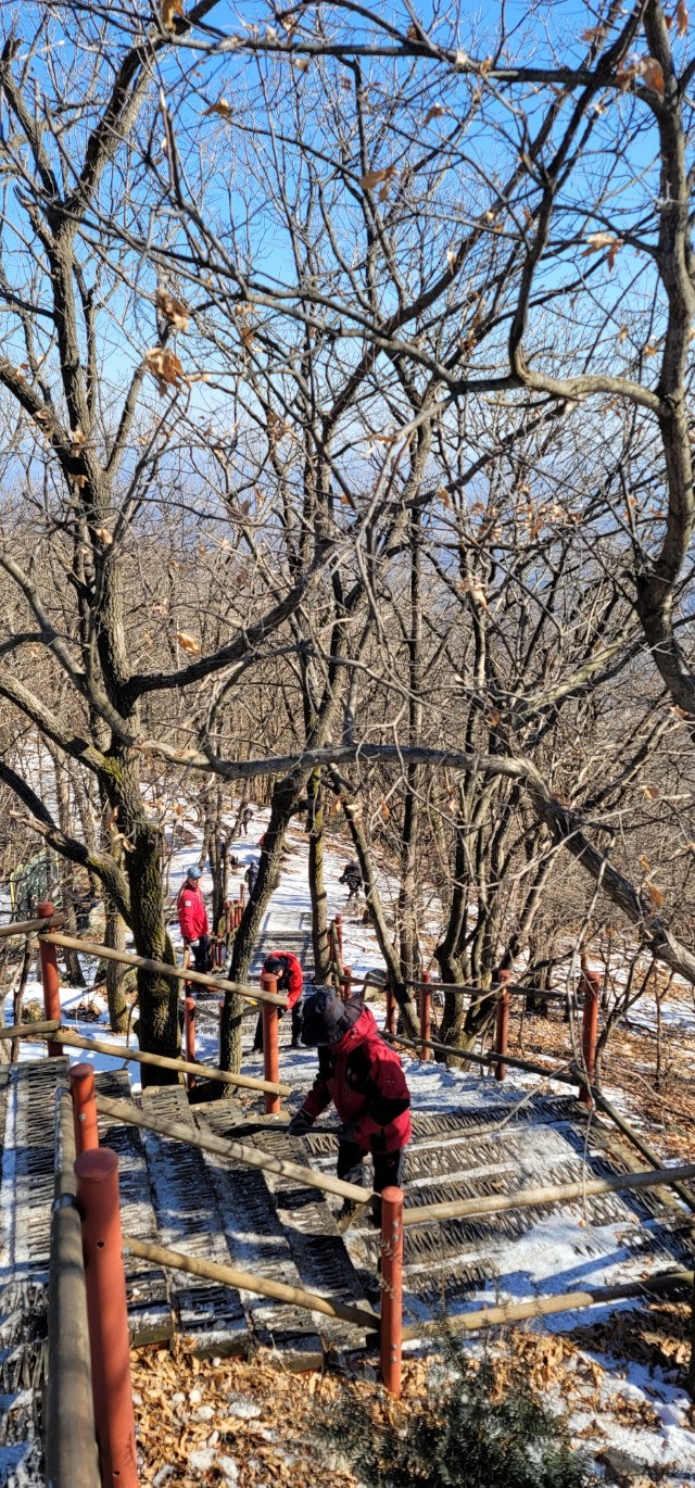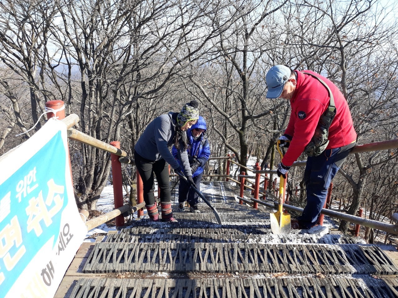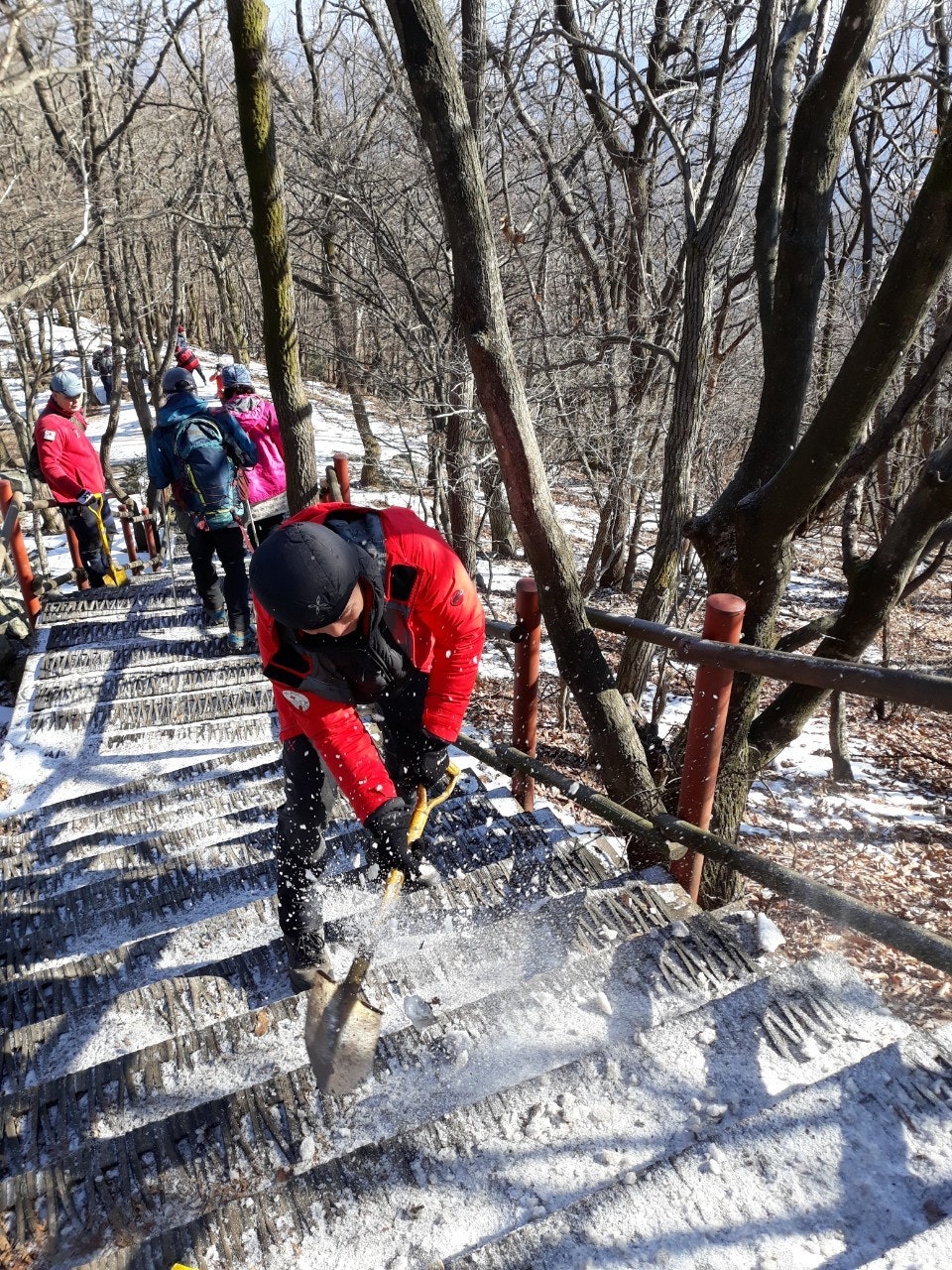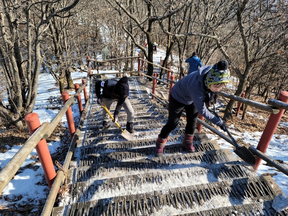 계단에 얼어붙은 눈덩이도, 등산객들이 초소 주변에 버리고간 음식 찌거기도 잘 처리하였습니다..