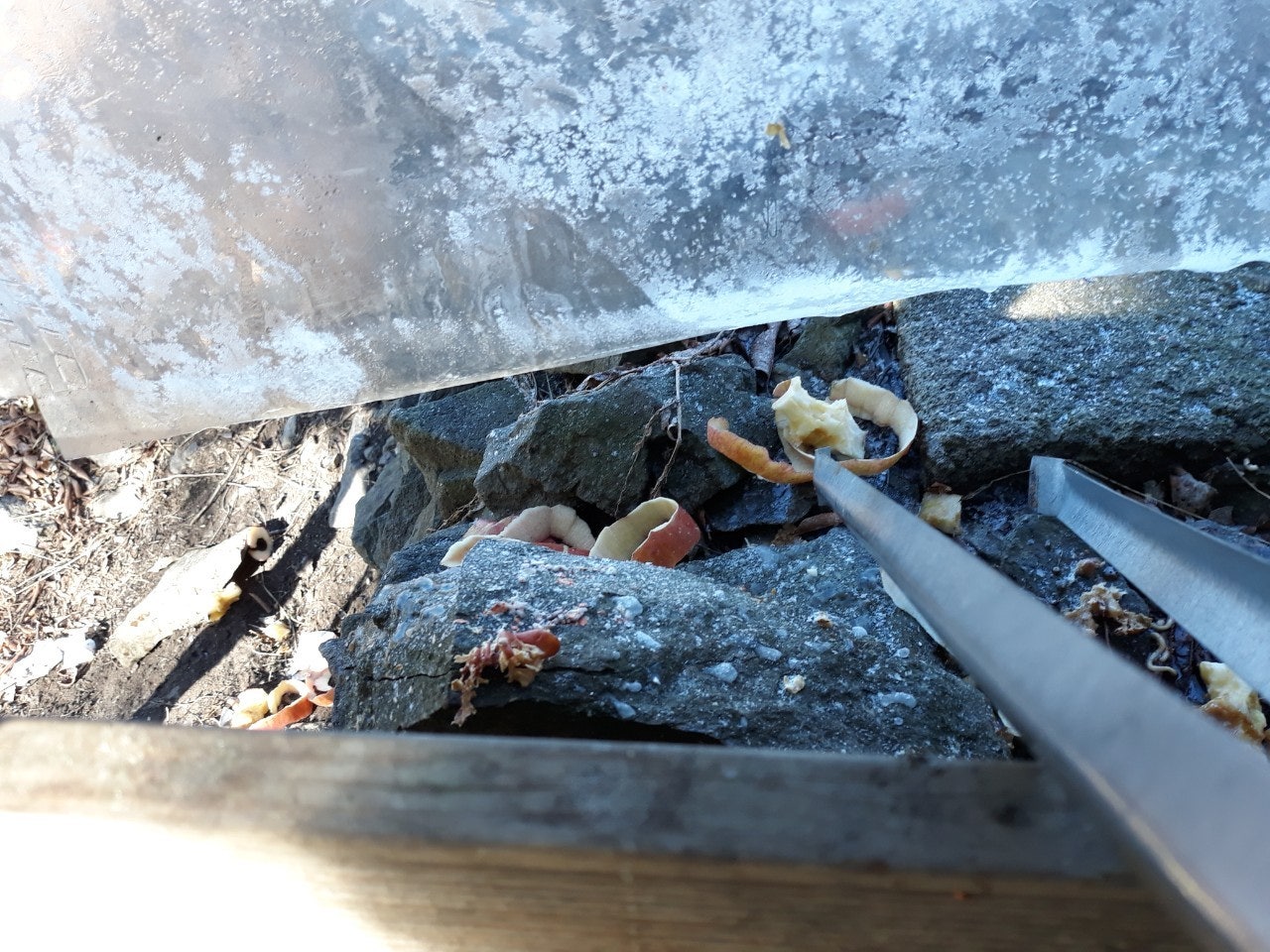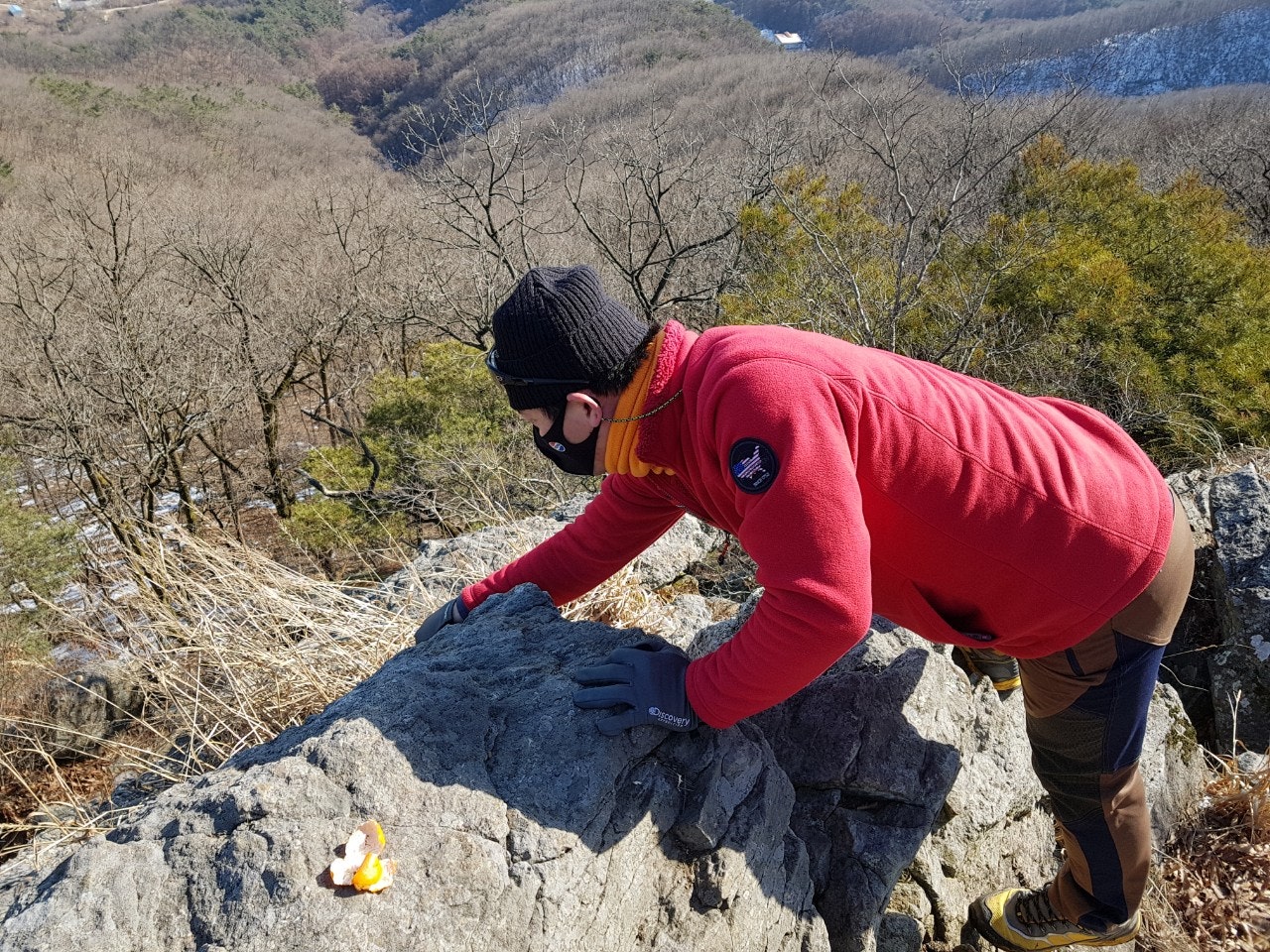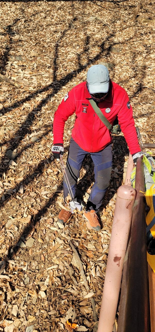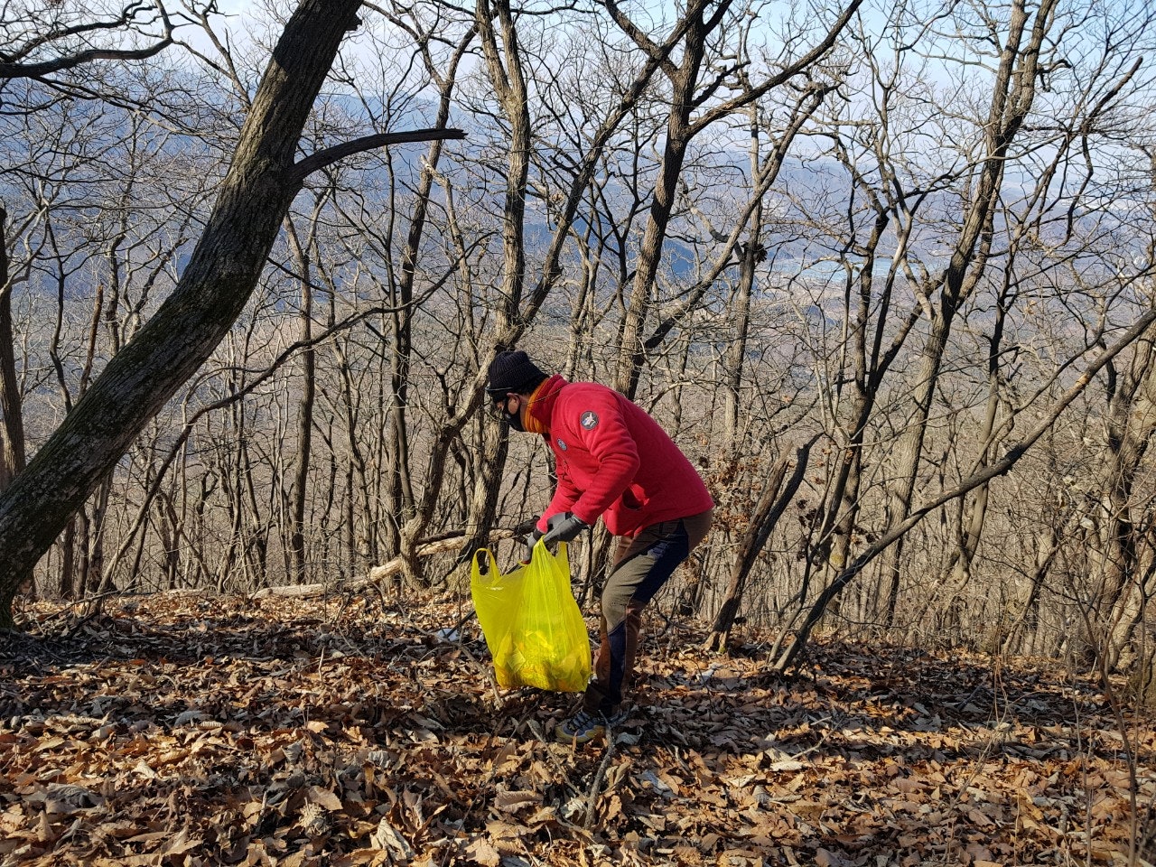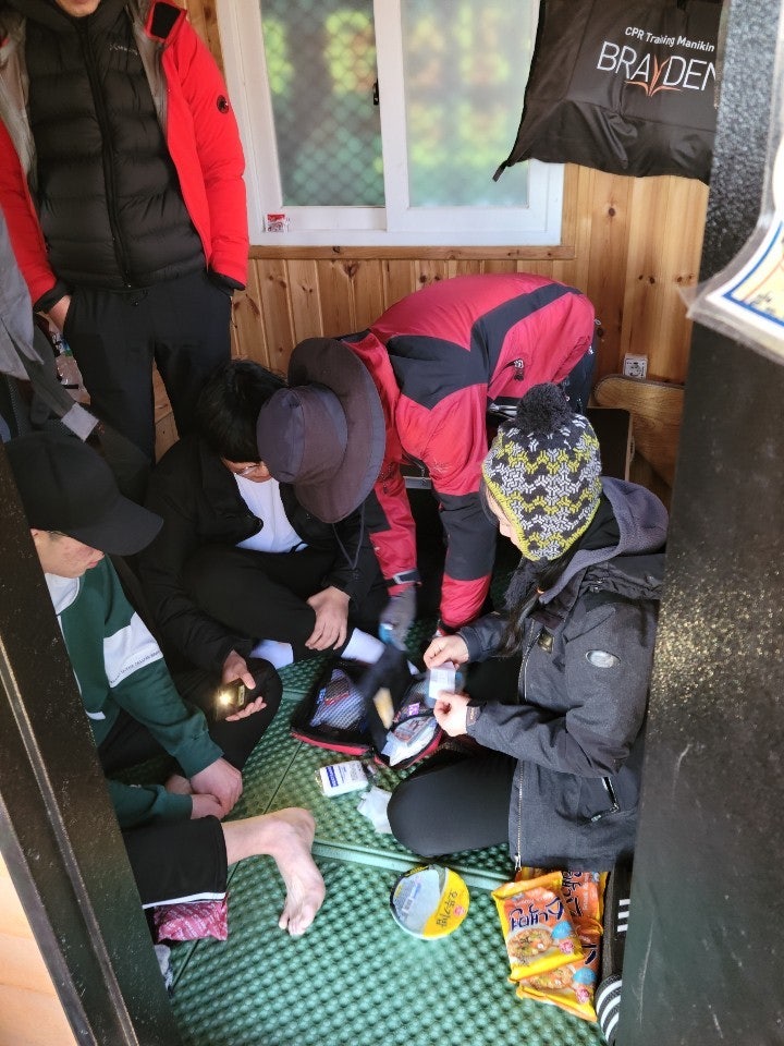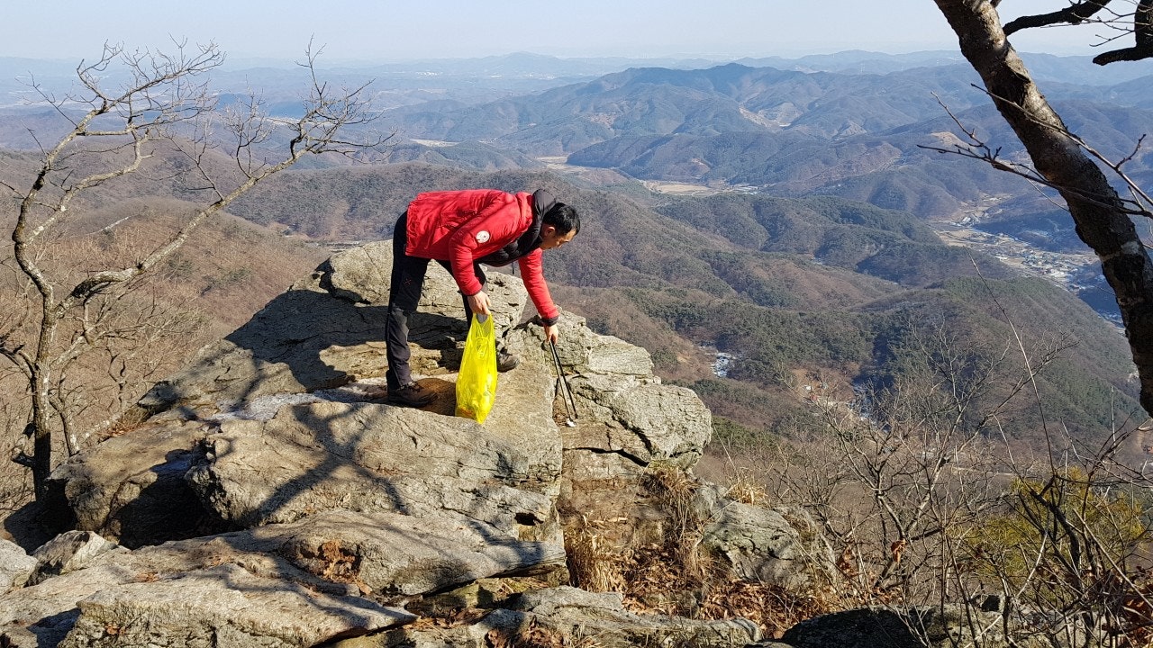계단에 얼어붙은 눈덩이도, 등산객들이 초소 주변에 버리고간 음식 찌거기도 잘 처리하였습니다..