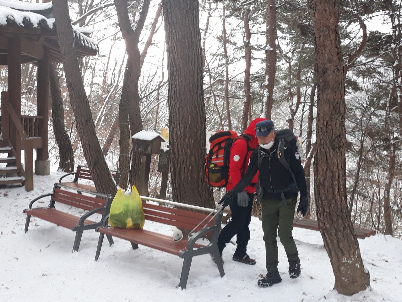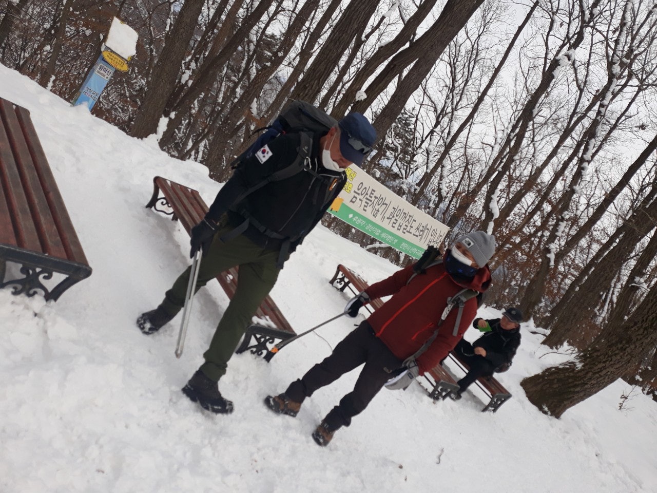 미끄러짐이 염려되어 아이젠 빌려드리려