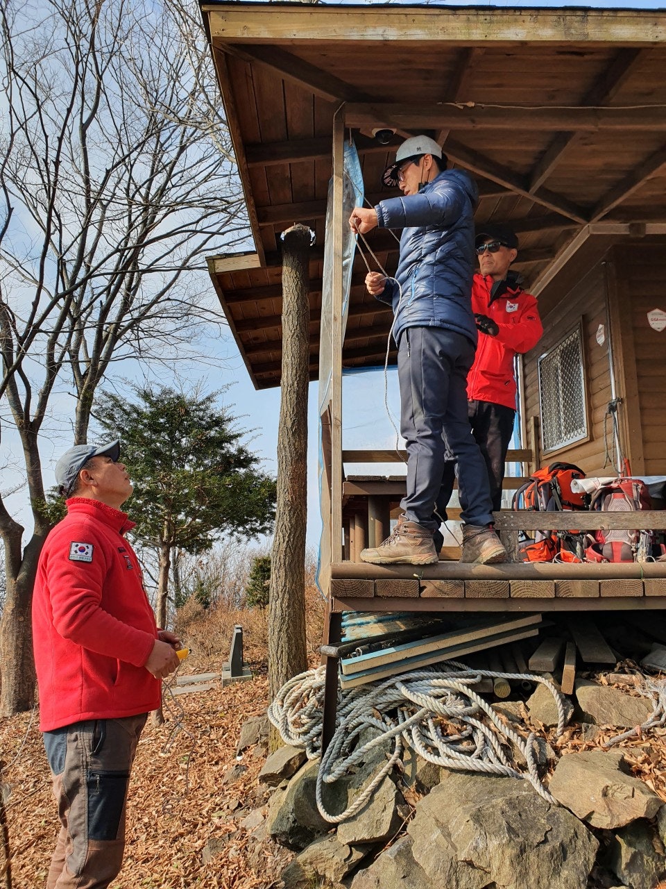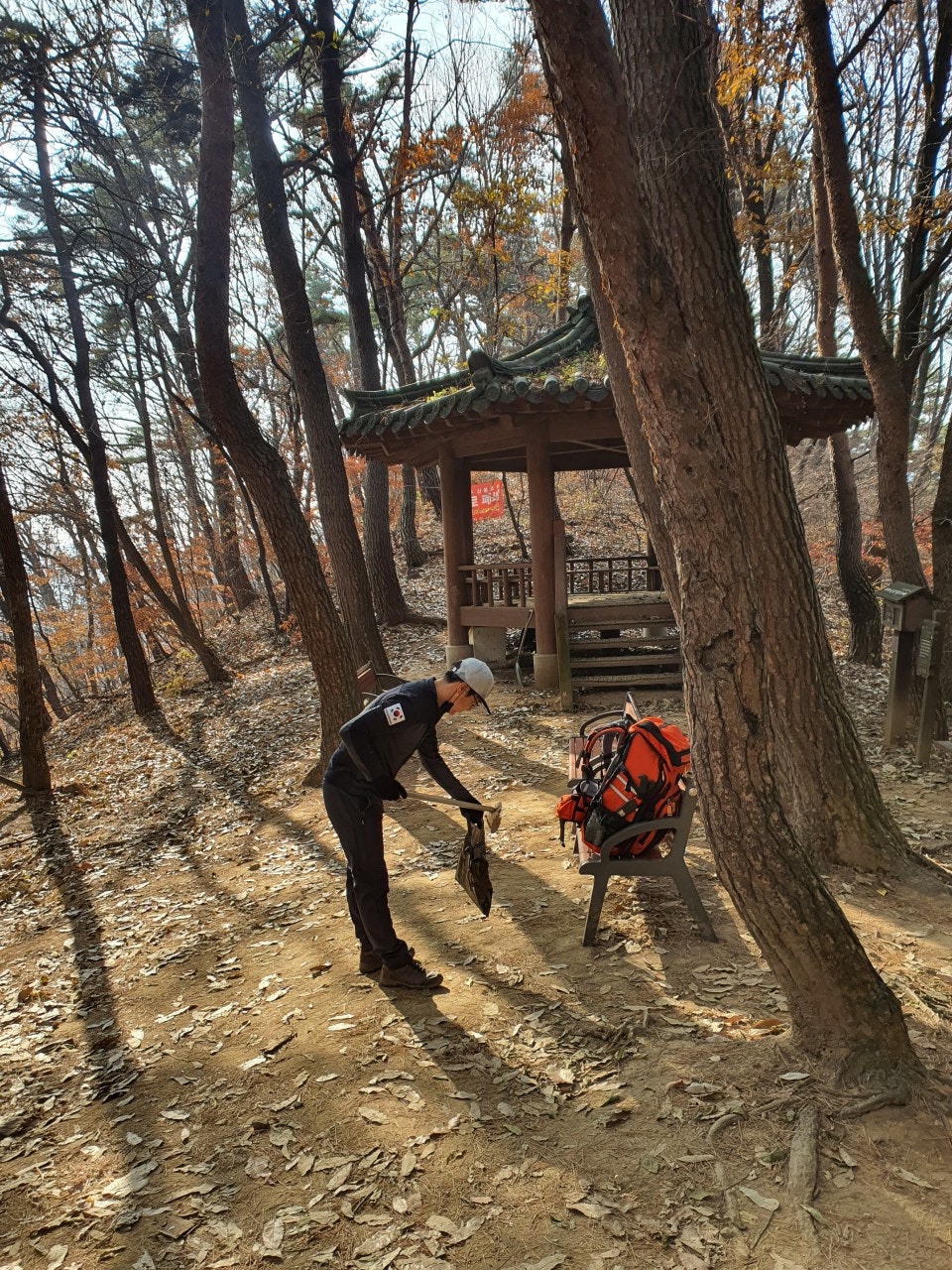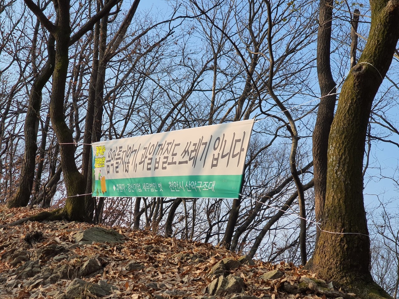 연합회행사에 어느정도 동참 후 정화활동 및 등산로 정비를 하며 정상에 올랐으며, 오늘은 초소에 비닐막 작업과 홍보용 프랭카드를 4곳에 부착했다. 늦가을 이지만 청명한 날씨에 등산객도 적당히 많았으며, 오늘도 큰 사고없이 근무를 마무리 했다.