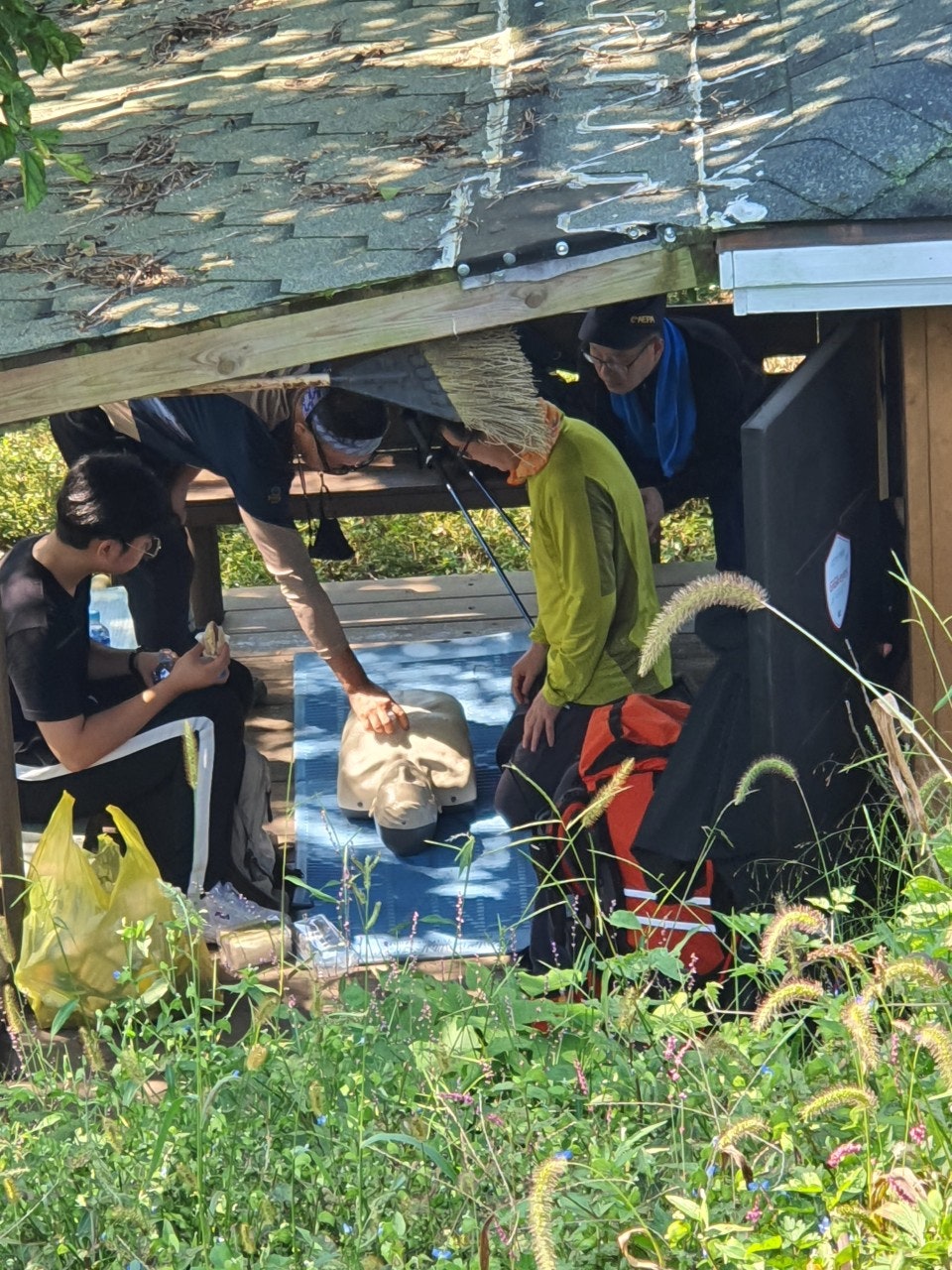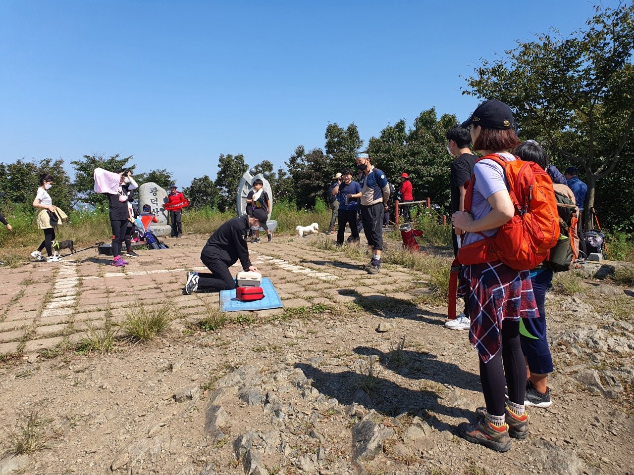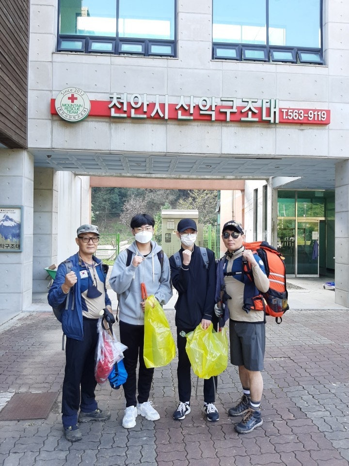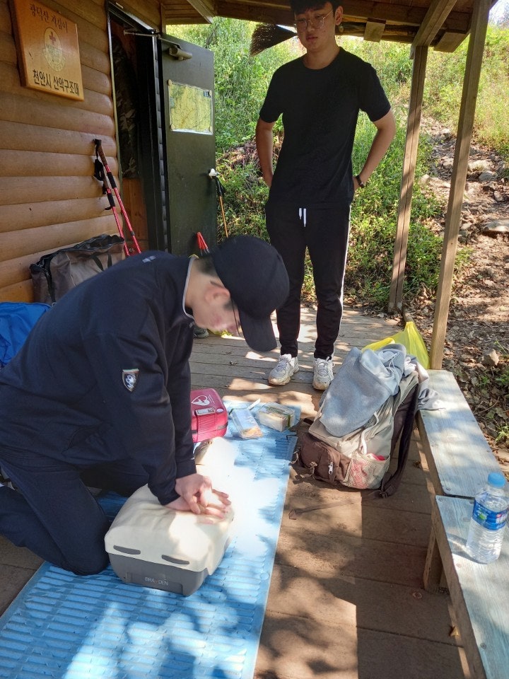 활동상황 제목2020. 09. 20.(일) 근무일지-도경용2021-10-25 15:12작성자kskang2020. 09. 20.(일) 근무일지◾️집결 및 출발: 09시 119 상황실 근무보고 후 출발◾️근무자 : (존칭생략) 이석종,박성우,황주성,도경용봉사자 학생2◾️활동상황 : 구조대 사무실에 도착하여,119 상황실에 근무보고 후 2팀으로 편성하고 정화활동 및 등산로 정비를 하며 오르기로 했다. 지난주 근무일지에서 언급한 장군바위쪽 고목은 제거했으며, 쓰레기도 열심히 주우며 정상에 올라갔다.장마로 훼손된 등산로는 보수가 되어있었다.초소에 도착후 심폐소생술과 구조훈련을 병행하여 실습도 하고 등산객을 상대로 교육도 실시했다. 날씨가 좋아서 그런듯 등산객도 많았고, 푸르른 하늘에 광덕산은 더 멋진 산이었으며, 오늘도 큰 사고없이 근무를 마무리 했다.장군바위팀 출발전 인증샷~헬기장팀 출발전 인증샷~장군바위팀 정화활동헬기장팀 정화활동심폐소생술 교육등산객을 상대로 심폐소생술 교육광덕산 정상 등산객~하산전 인증샷~얼마전까지 무더웠는데 어느덧 정상엔 코스모스가 만발하고 벌써 가을이 왔다...천안시 산악구조대 여러분~오늘도 수고 하셨습니다.!!! 목록 댓글 [0] 더보기이전날짜...2020년 9월13일-오미순kskang2021-10-25다음■■천안서북소방서 민관합동 계곡구조 훈련■■-김도연kskang2021-10-25 Powered by MangBoard