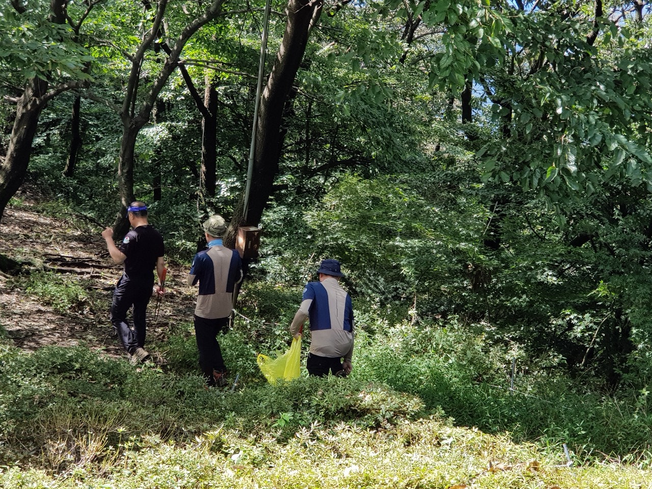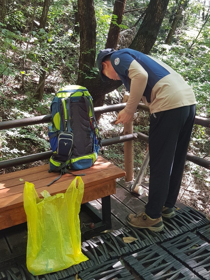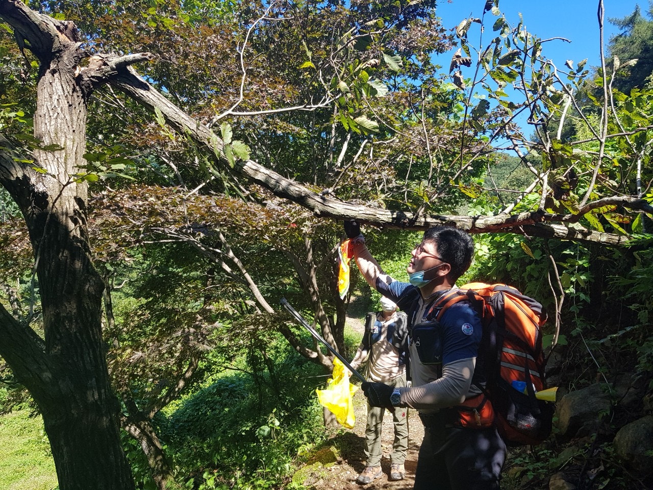 셋 셋으로 나뉘어 팔각정팀과 장군바위로 나뉘어 오르면서 잔가지와 쓰러진 고목들을 치우고 정화작업을 하였습니다...