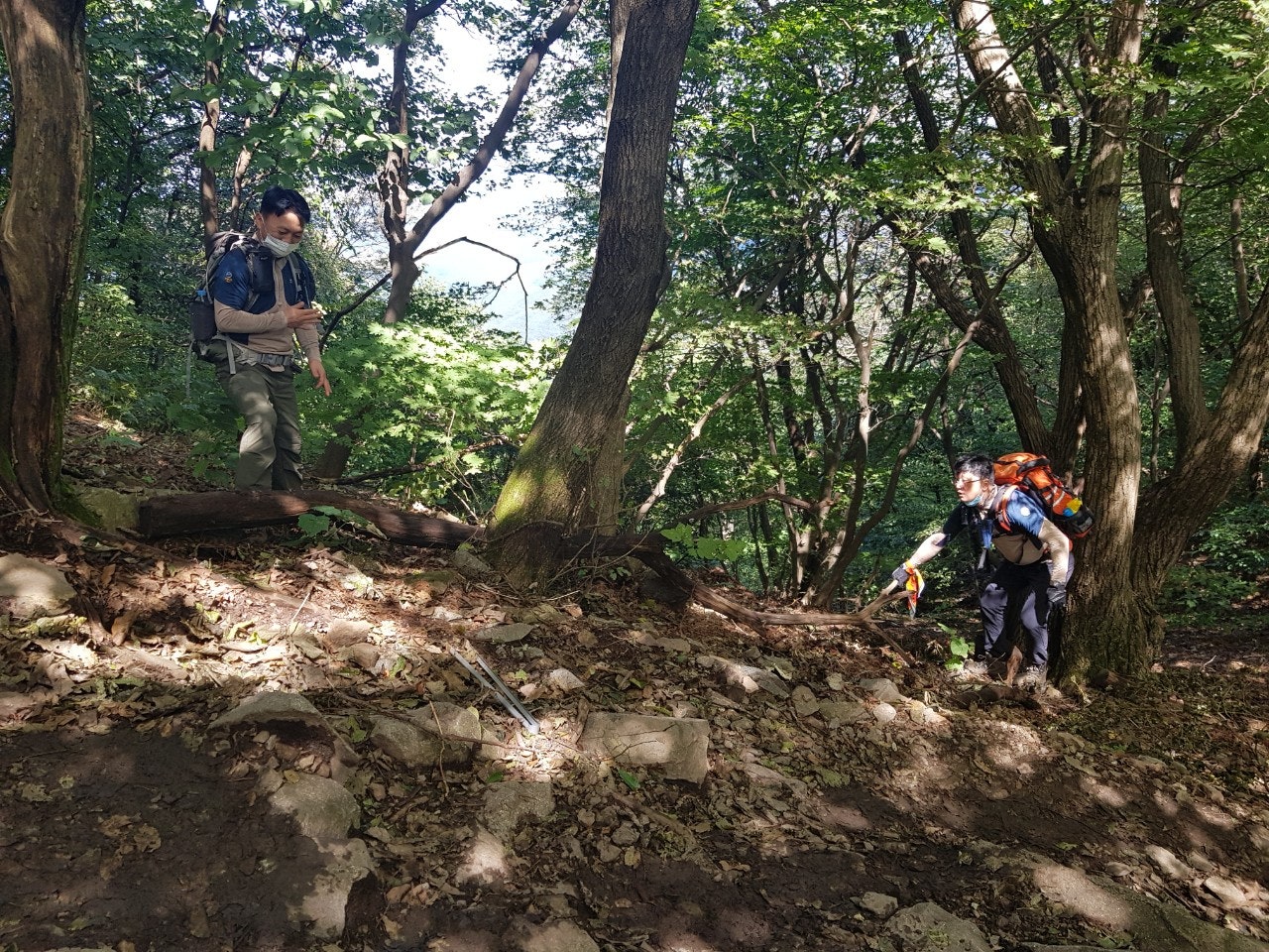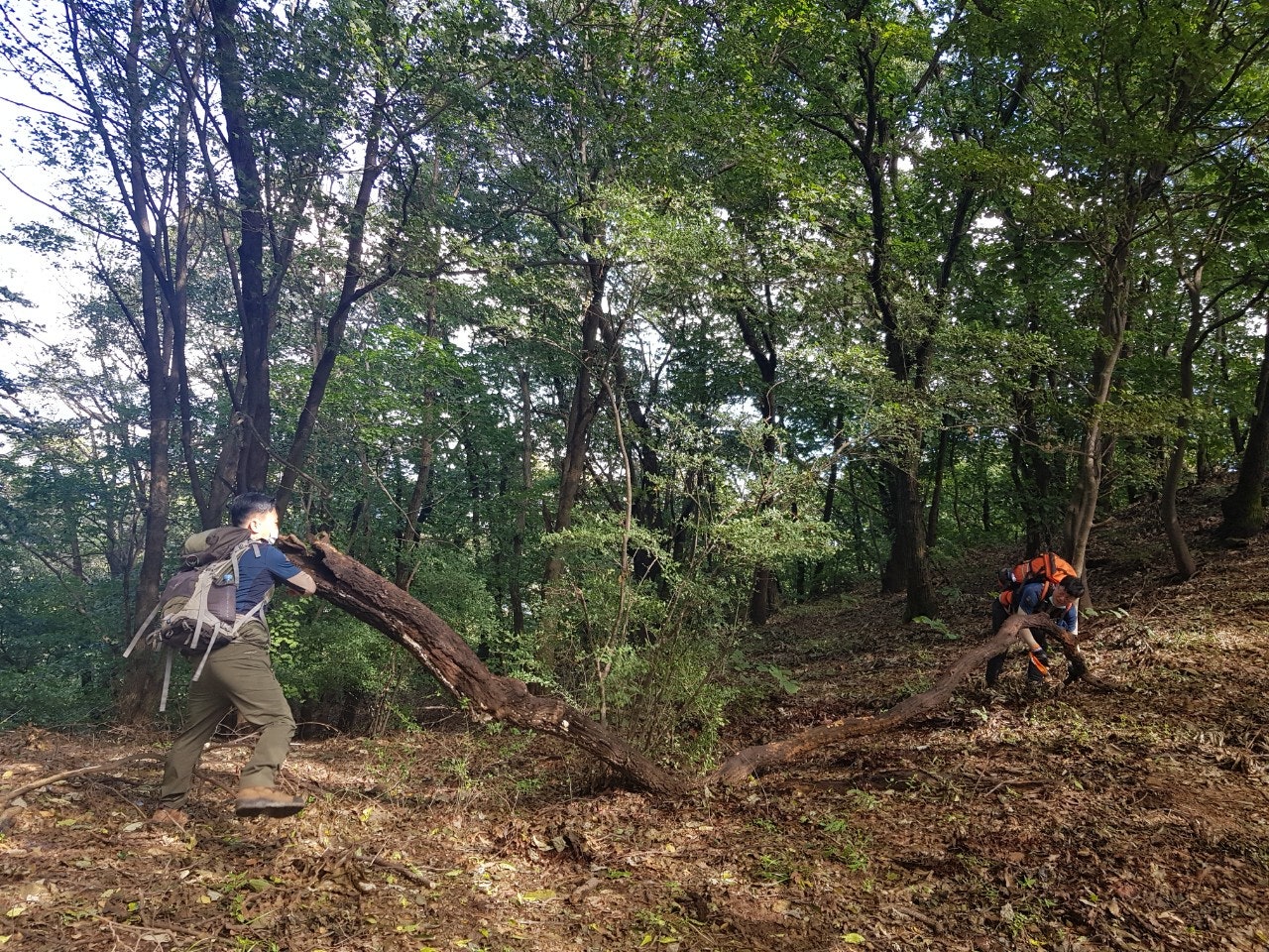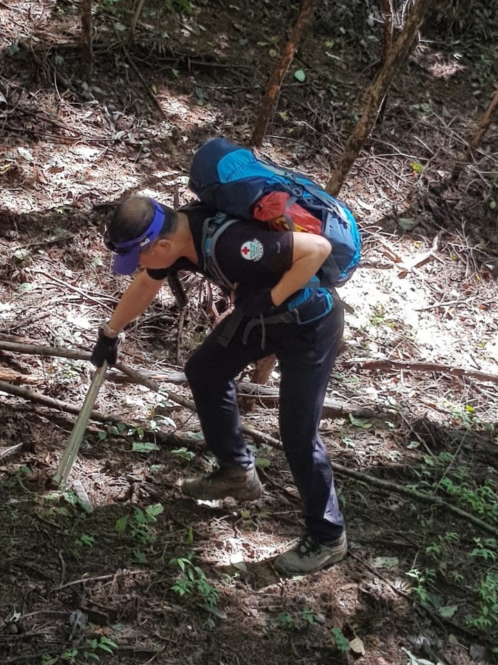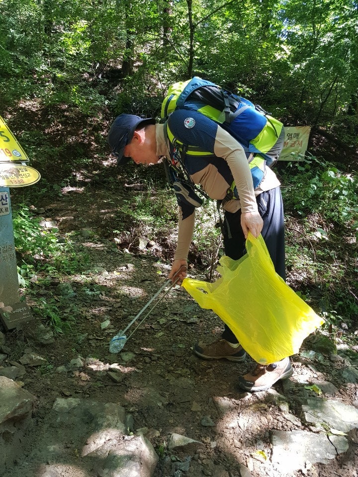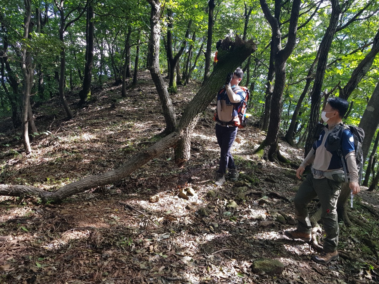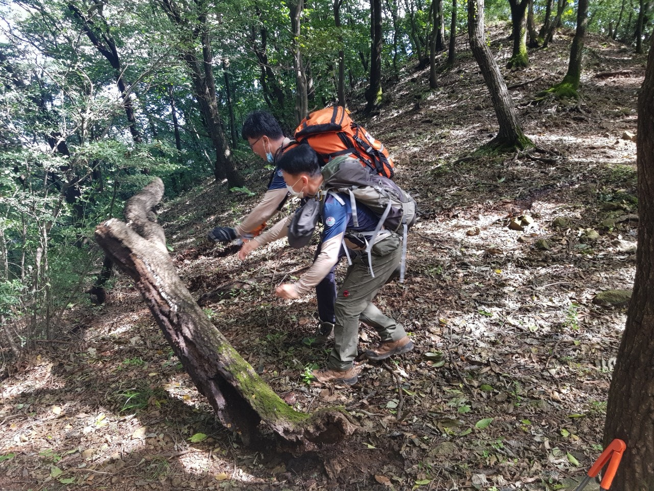 장군바위쪽으로 오르는데 굵은 칡넝클과 고목이 등산로을 가로질러 쓰러져 있었는데 톱이 없어 제거를 못하였으니 담주 근무하시는 대원님들께 부탁드려봅니다...