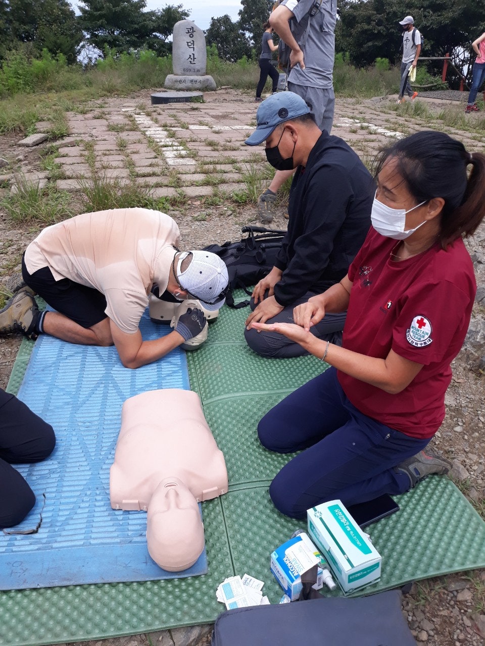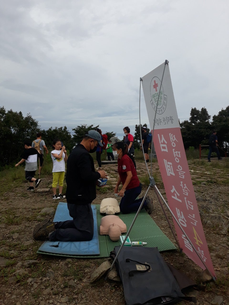 잠시 짐을 내려놓고 대장님의 고집.??;;으로 심폐소생술 교육자리를 펴본다.(교육할때 밑에 깔아놓는 매트가 조금 얇은듯.극히 제생각임). 난 극구 요즘같은 시대에 무슨교육이냐고 핀잔을 주지만 대장님이 하시니 궁시렁 되면서도 또 따라 올라가 본다. 의외로 관심 있어하시는 분들이 계셔서 대장님 교육을 실시해주고 주린 뱃속을 채우러 대장님과 둘이 구조대 사무실?에 가서 주린배를 달랜후 대기를 해본다..