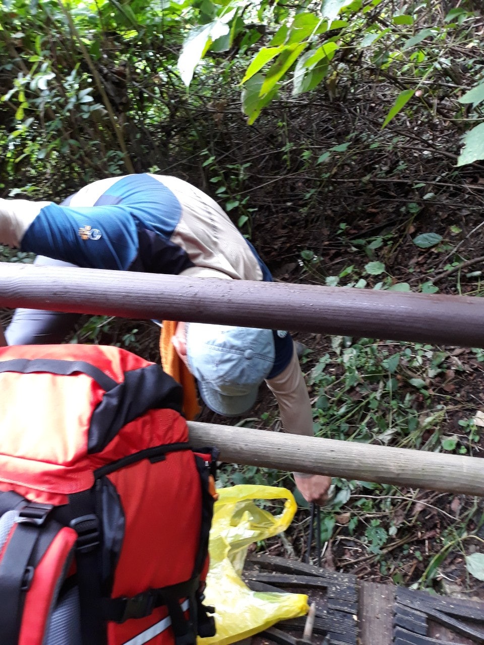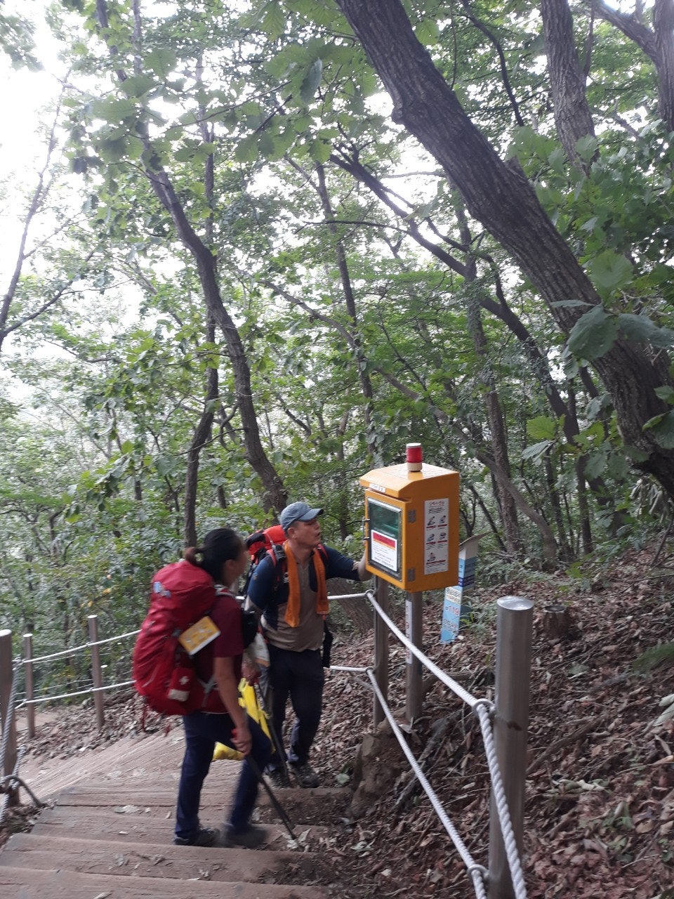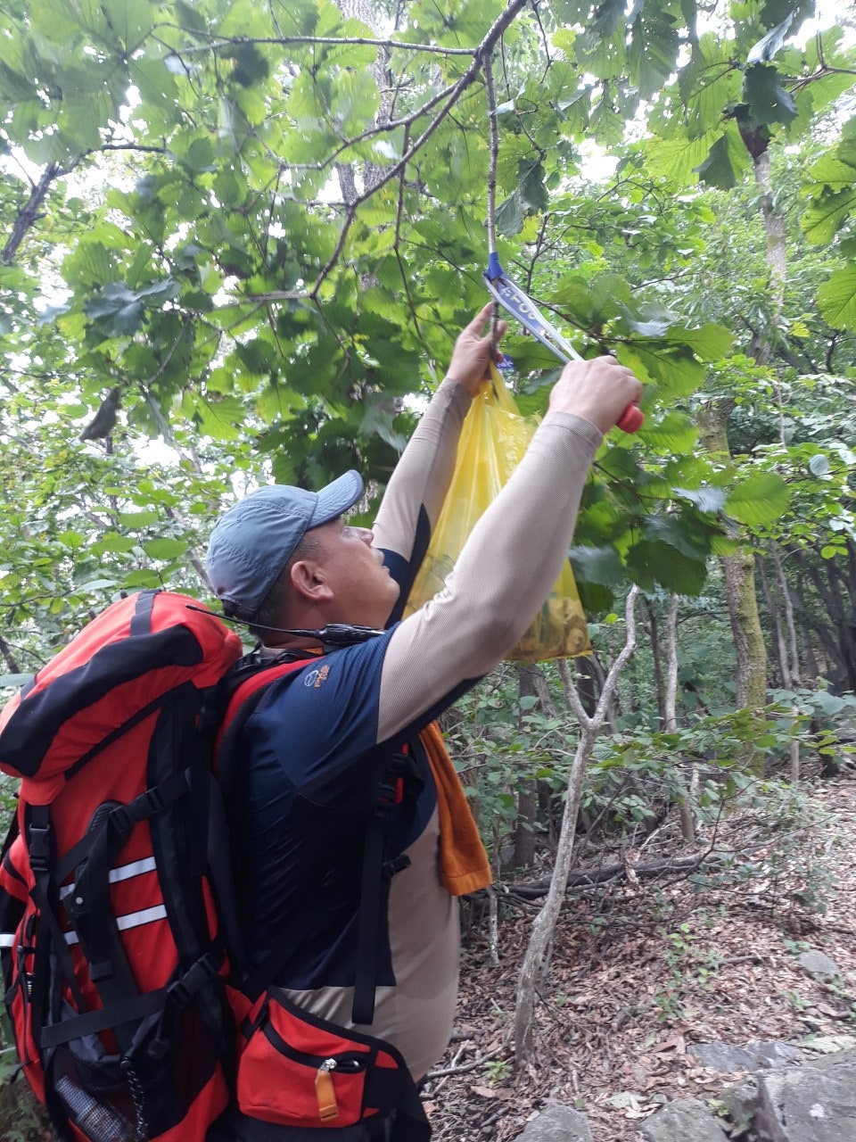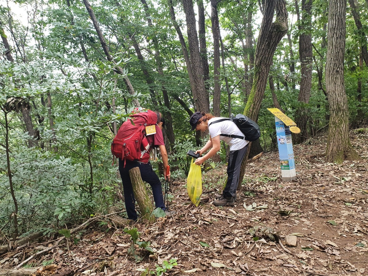 오르며 눈에 보이는 여러종류의 쓰레기도 하나씩 주워 봉투에 담으며(쓰레기부자는 되기시른데..)정상을 향해 한걸음씩 옮겨본다. 생수통,깨진 유리조각, 잡다한 간편식 봉투,기타등등..